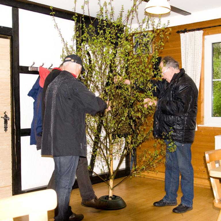 In diesen Jahr gestaltete sich das traditionelle Maibaumaufstellen durch den Dauerregen auf eine ganz besondere Art. Der Dauerregen zwang die Teilnehmer, den Baum innerhalb der Hütte aufzustellen. Es machte aber trotzden Spass. Zum Essen wurde eine Schlachtplatte bereitet die regen Anklang bei den Teilnehmern fand. Jung und Alt vergnügten sich bis in die Nacht.