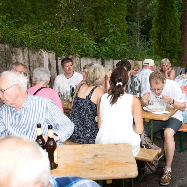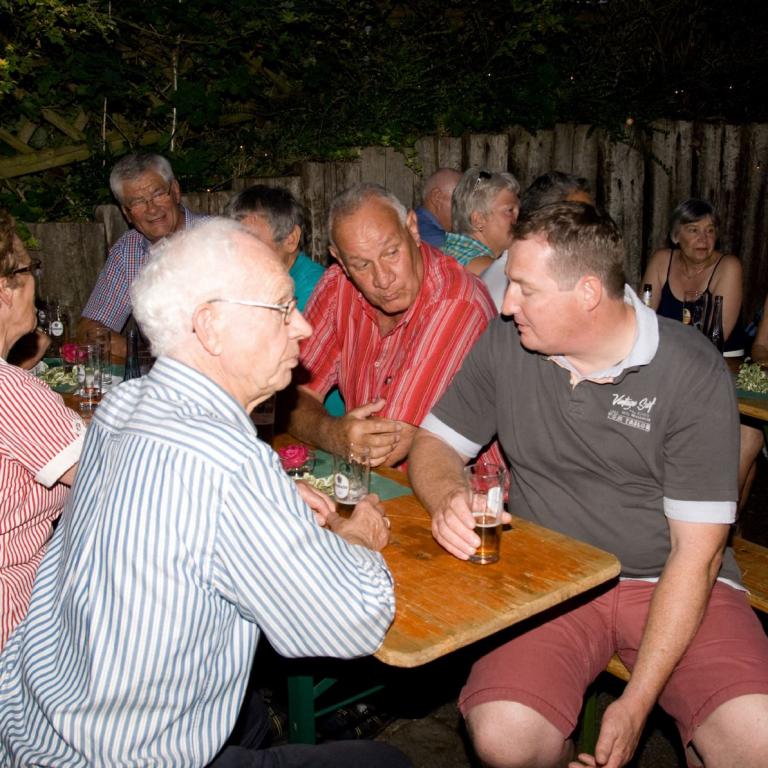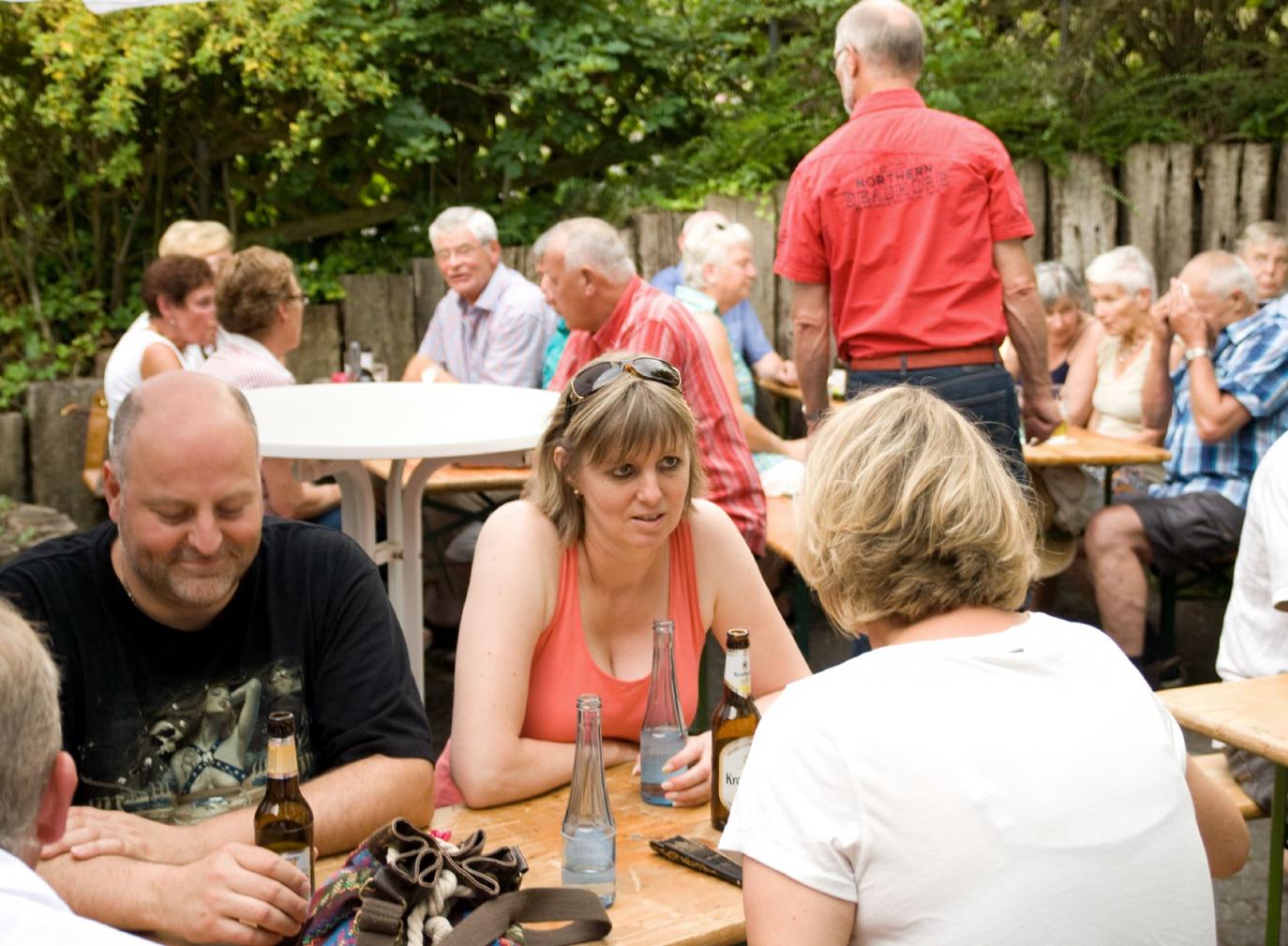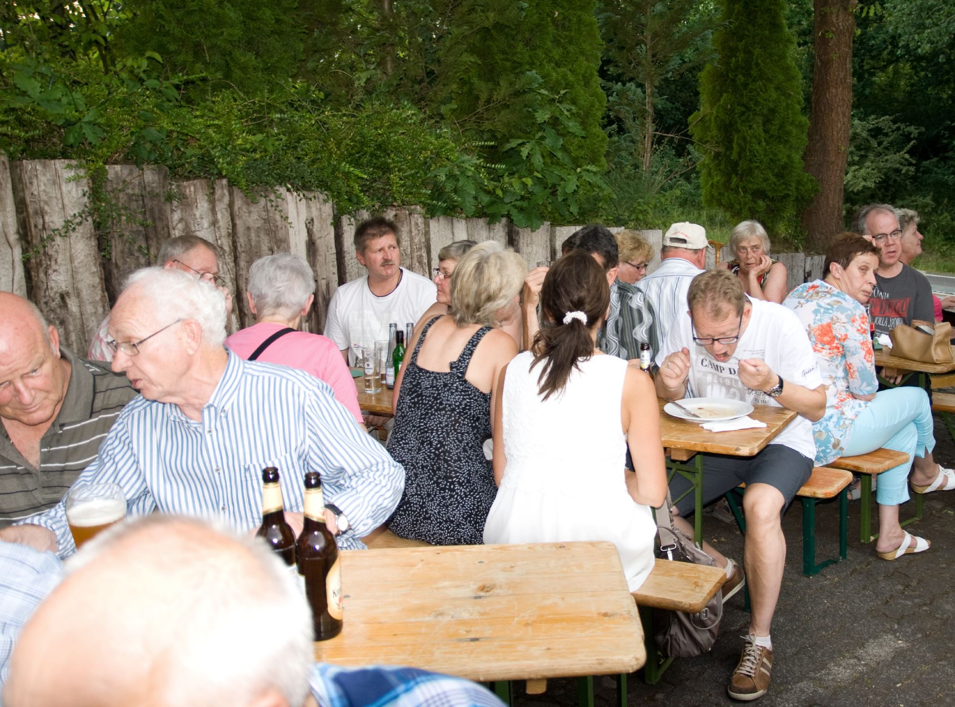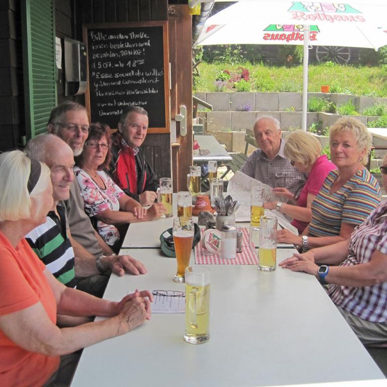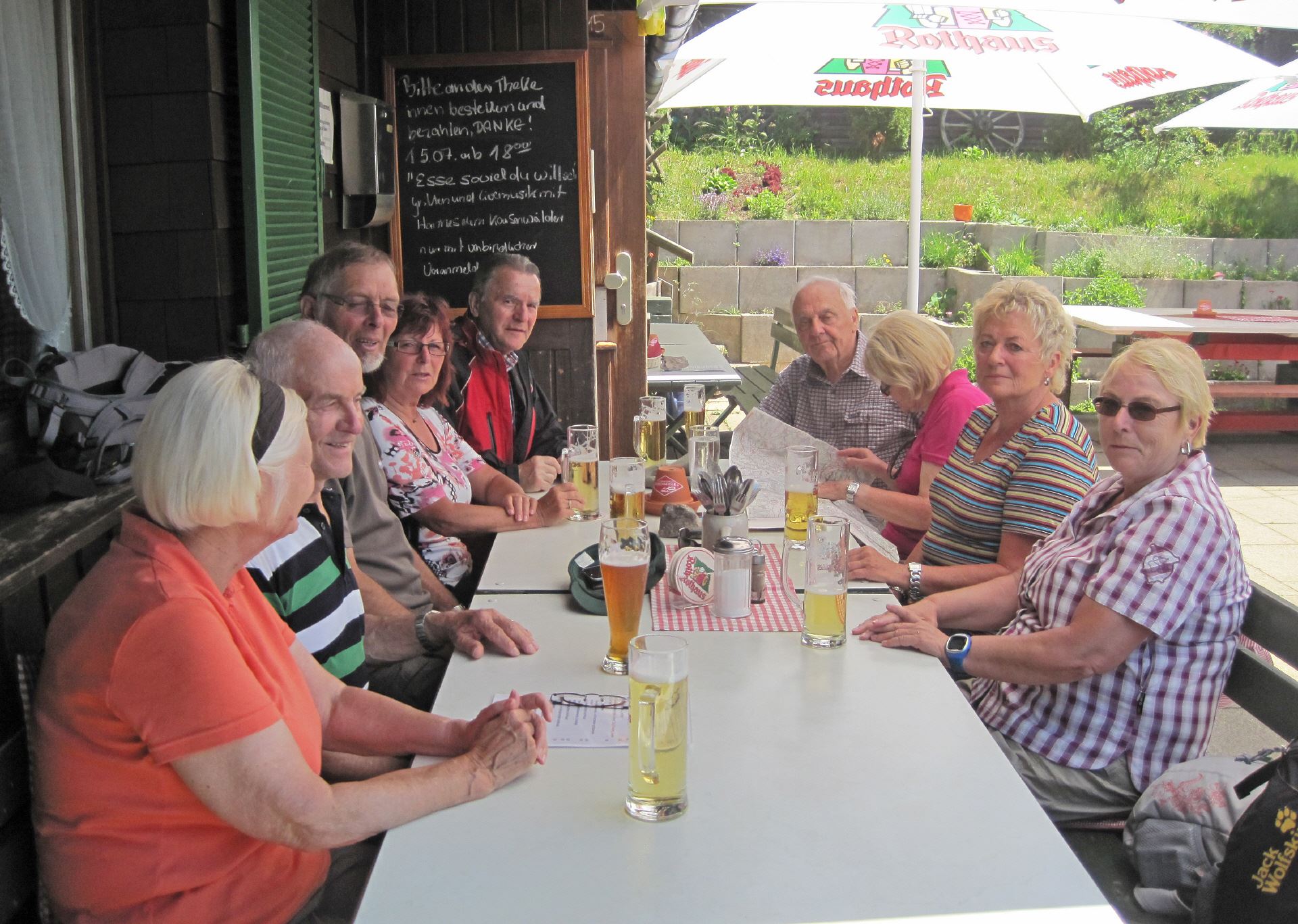 Bei bestem Sommerwetter führte unsere diesjährige Mittwochswanderung zum Brauhaus Irle in Kaan-Marienborn. Wegen einer Wegesperrung in Niederdielfen kamen wir bereits nach 1,5 Stunden im Brauhaus Irle an. Im Biergarten war für uns eine lange Tafel reserviert. Einige Nichtwanderer (jedoch SGVer) erwarteten uns bereits. Als Hunger und Durst gestillt waren machte man si h gegen 21 Uhr wieder auf die Socken. Fazit der Teilnehmer: "ES WAR MAL WIEDER SCHÖN"