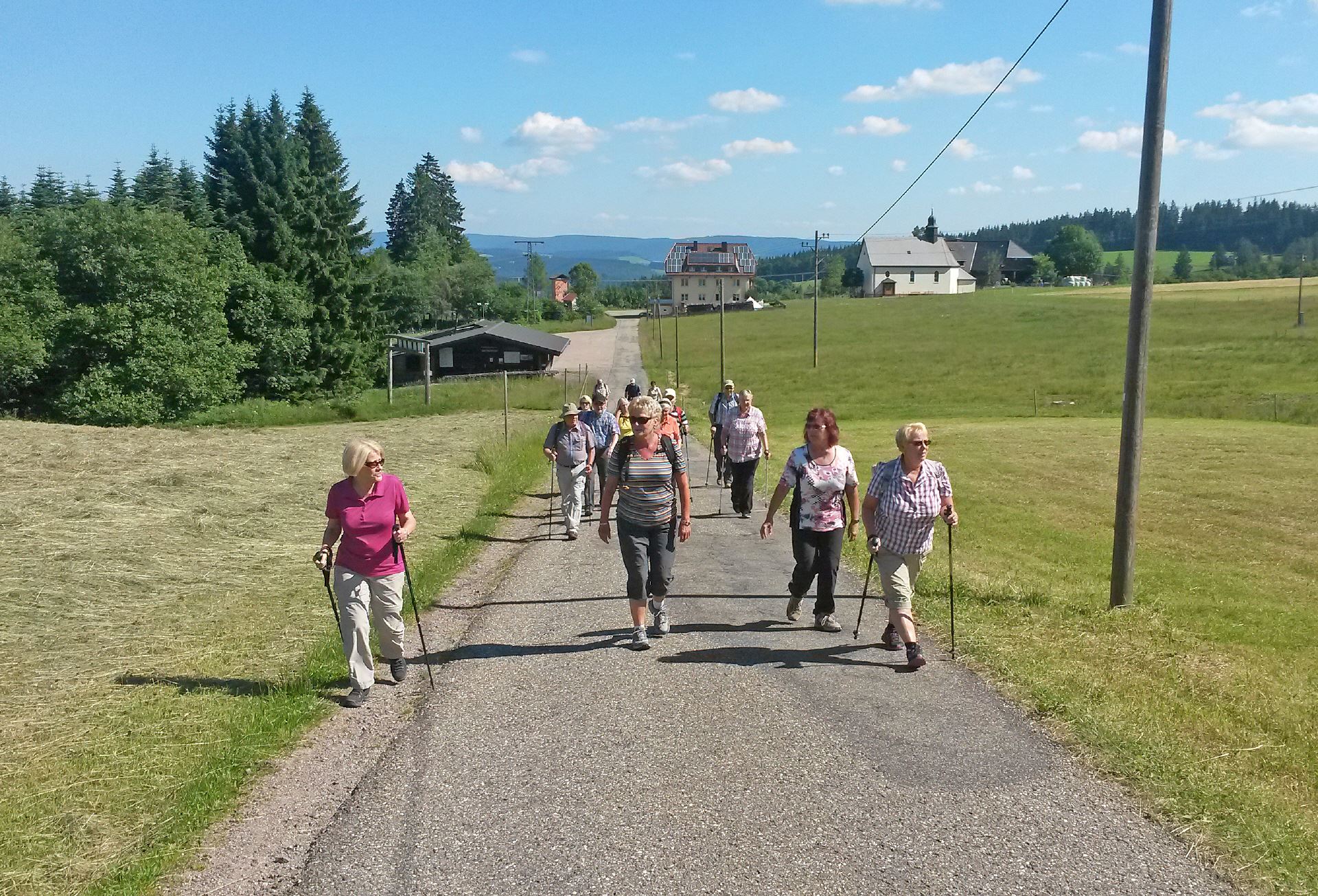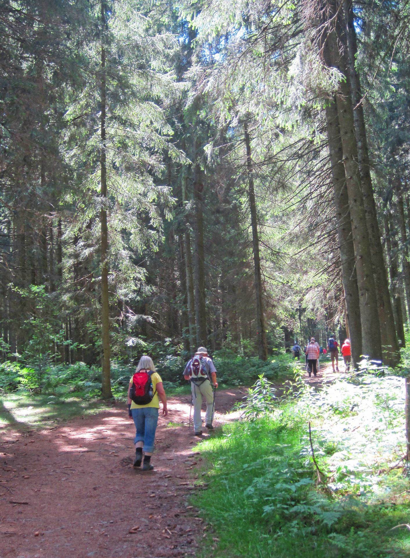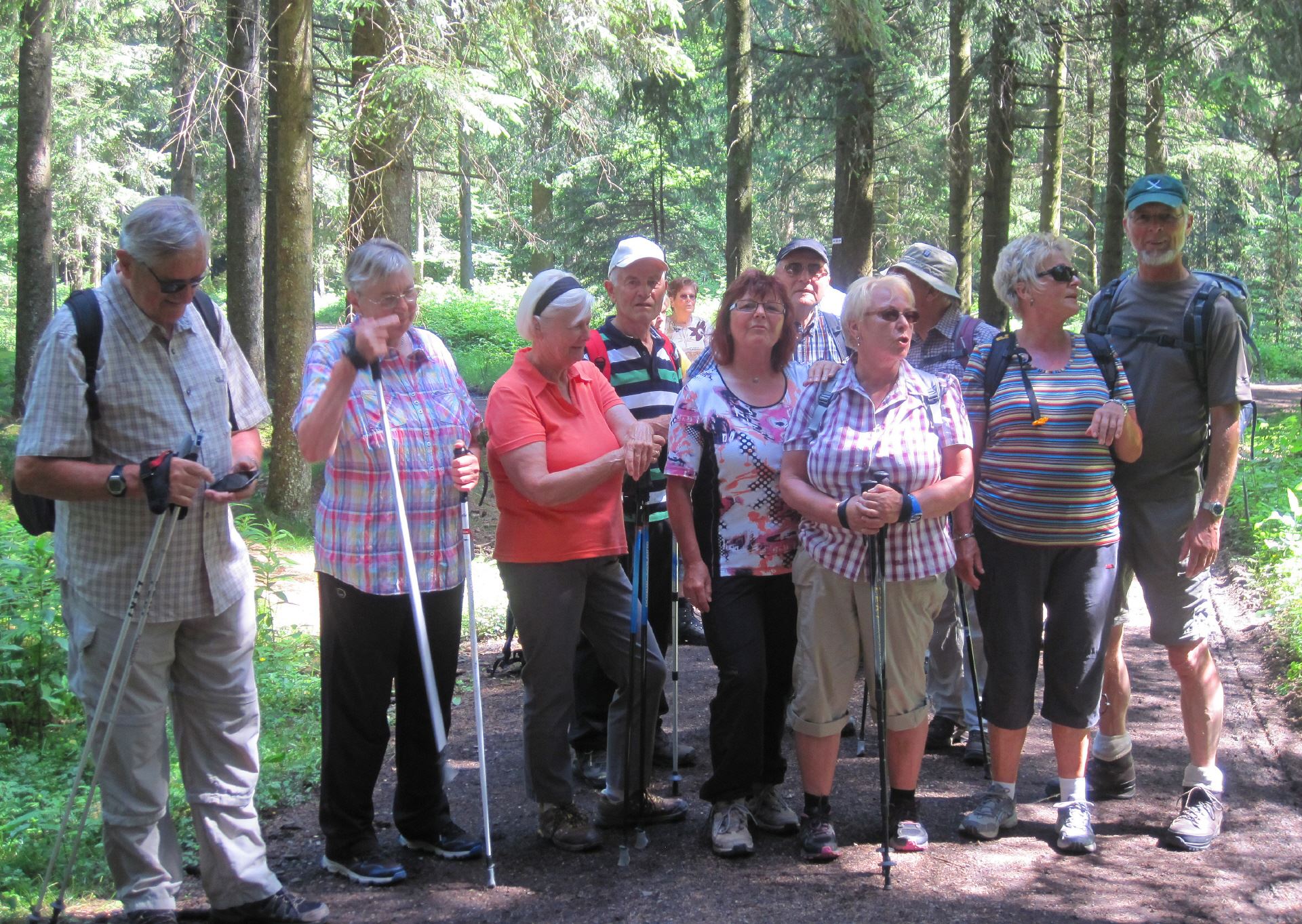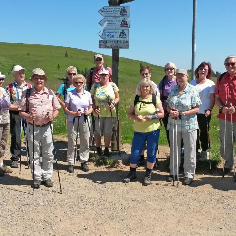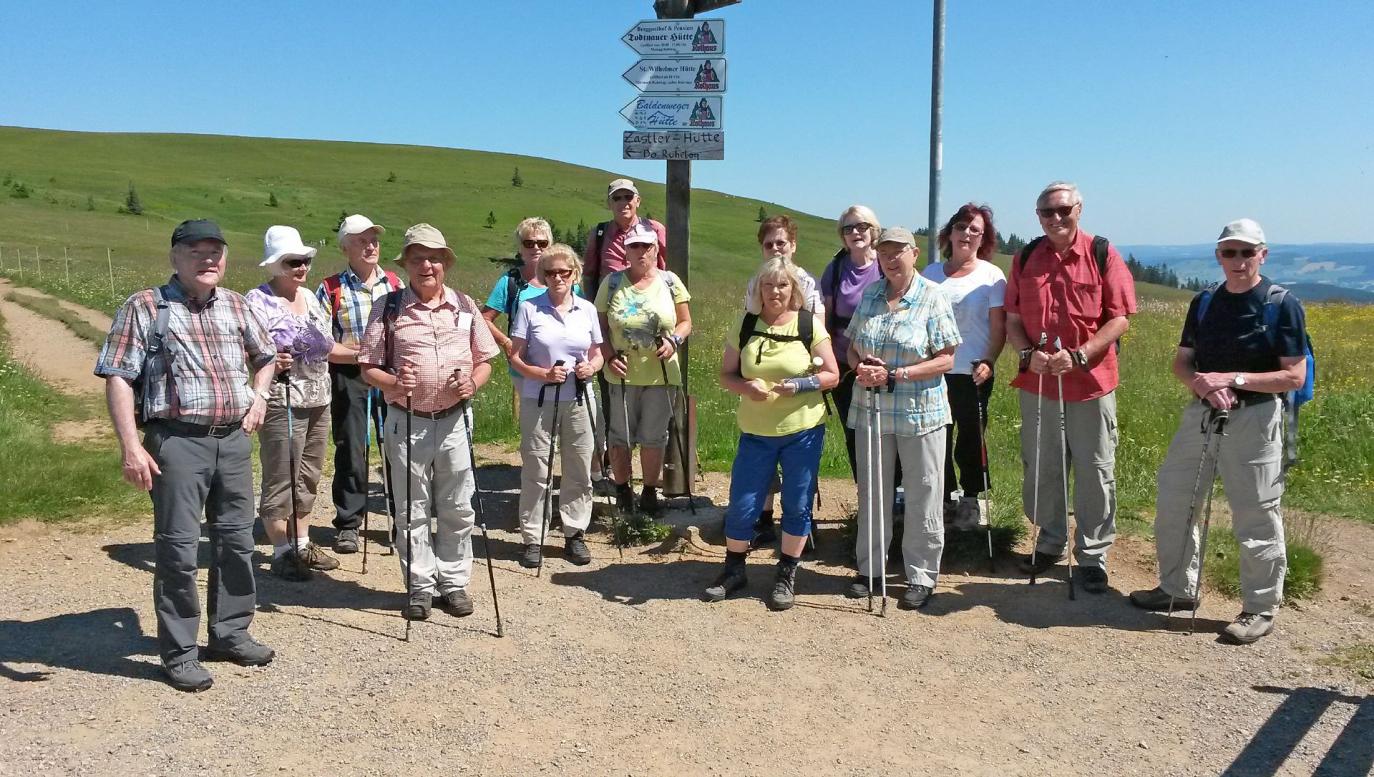 Als Standort diente ein typisch Schwarzwälder Gasthaus in Waldau. Zum Einlaufen wurde am ersten Tag ein Rundweg um Waldau erwandert. Am zweiten Tag stand ein Teilabschnitt des Westweges, vom Parkplatz Thurner nach Hinterzarten, auf dem Programm. Durch schattige Wälder, über die Weißtannhöhe führte der Weg zum Wanderheim des Schwarzwaldvereins "Berghäusle". Nach diesem gemütlichen Rasthaus waren es noch einige Kilometer bis Hinterzarten, von wo uns der Bus, mit Gästekarte, kostenlos zum Thurner zurückbrachte. Am dritten Tag morgens wurde der Feldbergsteig, eine anspruchsvolle Wegstrecke erwandert, über den Feldberggipfel mit der wunderbaren Fernsicht bis zu den Vogesen und den Alpen, vorbei an der Zastlerhütte, Baldingerhütte zum Raimatihof, wo nach einem heißen Tag Rast gemacht wurde. Den Durst gestillt, erfolgte am Feldbergsee vorbei der steile Anstieg zum Ausgangspunkt der Wanderung. Am vierten und letzten Tag, nach einer etwas längeren Anreise vorbei am Titisee und Schluchsee, wurde Sankt Blasien besucht. Wanderfreund Herbert, von der Sektion Sankt Blasien des Schwarzwaldvereins, führte uns über die Luisenruhe zum Lehnkopfturm mit herrlichem Rundblick über die Gipfel des Südschwarzwaldes. Die Erläuterung der Geschichte und die Kirchenbesichtigung mit der größten Kirchenkuppel nördlich der Alpen übernahm ein anderer Freund des Schwarzwaldvereins. Trotz der großen Hitze waren alle Wanderfreunde der SGV-Abteilung von den Wandertagen, den gemütlichen Abenden mit Akkordeon-Begleitung von Karl-Heinz und der schönen Natur im Südschwarzwald begeistert.