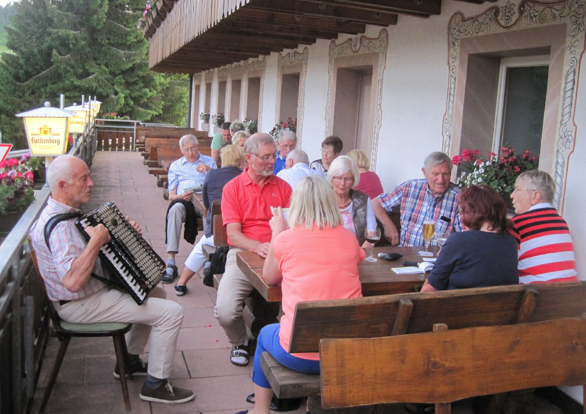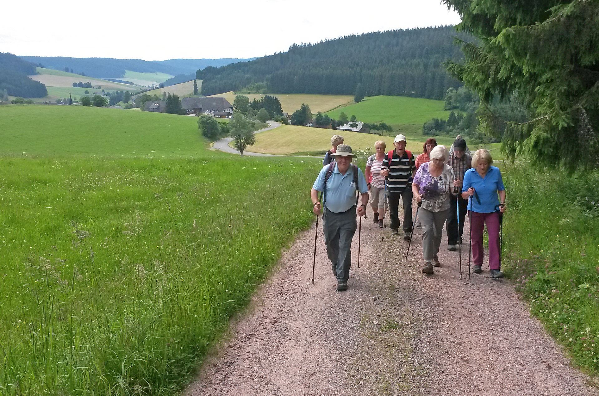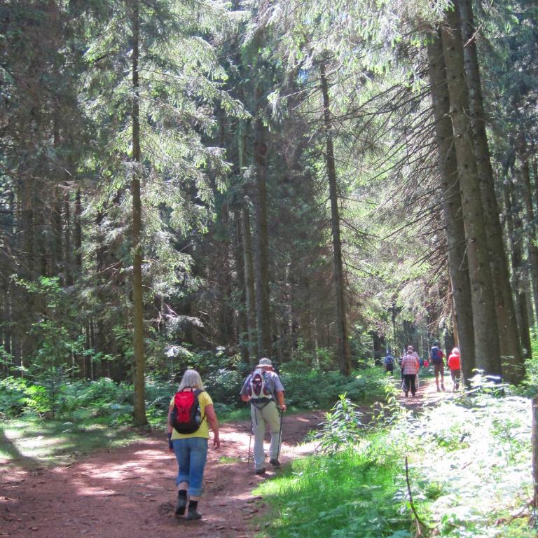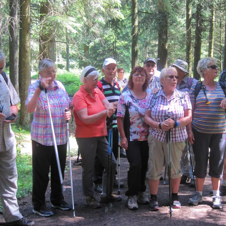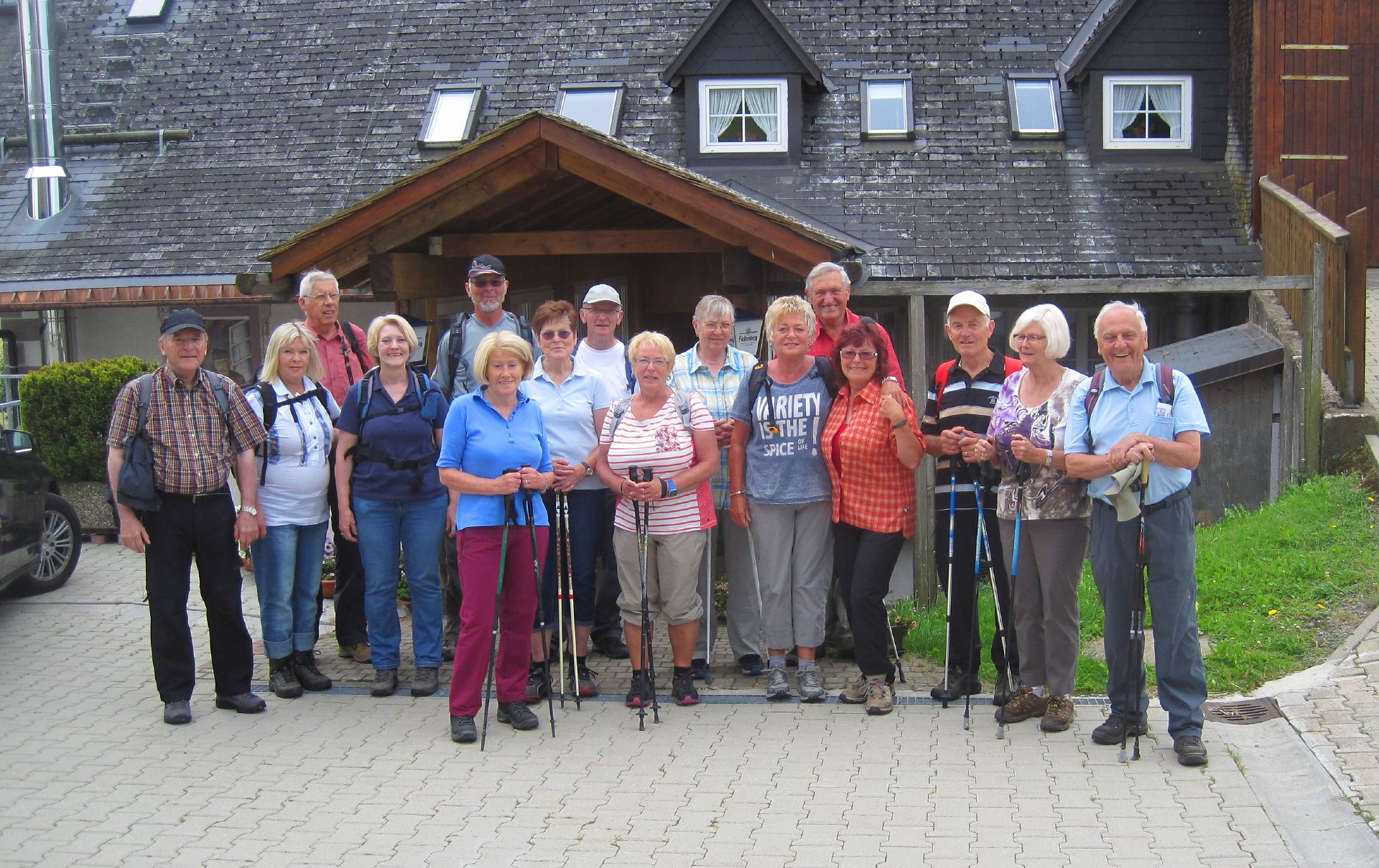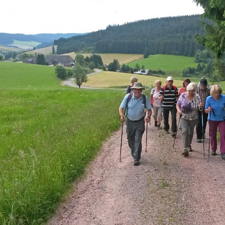 Als Standort diente ein typisch Schwarzwälder Gasthaus in Waldau. Zum Einlaufen wurde am ersten Tag ein Rundweg um Waldau erwandert. Am zweiten Tag stand ein Teilabschnitt des Westweges, vom Parkplatz Thurner nach Hinterzarten, auf dem Programm. Durch schattige Wälder, über die Weißtannhöhe führte der Weg zum Wanderheim des Schwarzwaldvereins "Berghäusle". Nach diesem gemütlichen Rasthaus waren es noch einige Kilometer bis Hinterzarten, von wo uns der Bus, mit Gästekarte, kostenlos zum Thurner zurückbrachte. Am dritten Tag morgens wurde der Feldbergsteig, eine anspruchsvolle Wegstrecke erwandert, über den Feldberggipfel mit der wunderbaren Fernsicht bis zu den Vogesen und den Alpen, vorbei an der Zastlerhütte, Baldingerhütte zum Raimatihof, wo nach einem heißen Tag Rast gemacht wurde. Den Durst gestillt, erfolgte am Feldbergsee vorbei der steile Anstieg zum Ausgangspunkt der Wanderung. Am vierten und letzten Tag, nach einer etwas längeren Anreise vorbei am Titisee und Schluchsee, wurde Sankt Blasien besucht. Wanderfreund Herbert, von der Sektion Sankt Blasien des Schwarzwaldvereins, führte uns über die Luisenruhe zum Lehnkopfturm mit herrlichem Rundblick über die Gipfel des Südschwarzwaldes. Die Erläuterung der Geschichte und die Kirchenbesichtigung mit der größten Kirchenkuppel nördlich der Alpen übernahm ein anderer Freund des Schwarzwaldvereins. Trotz der großen Hitze waren alle Wanderfreunde der SGV-Abteilung von den Wandertagen, den gemütlichen Abenden mit Akkordeon-Begleitung von Karl-Heinz und der schönen Natur im Südschwarzwald begeistert.
