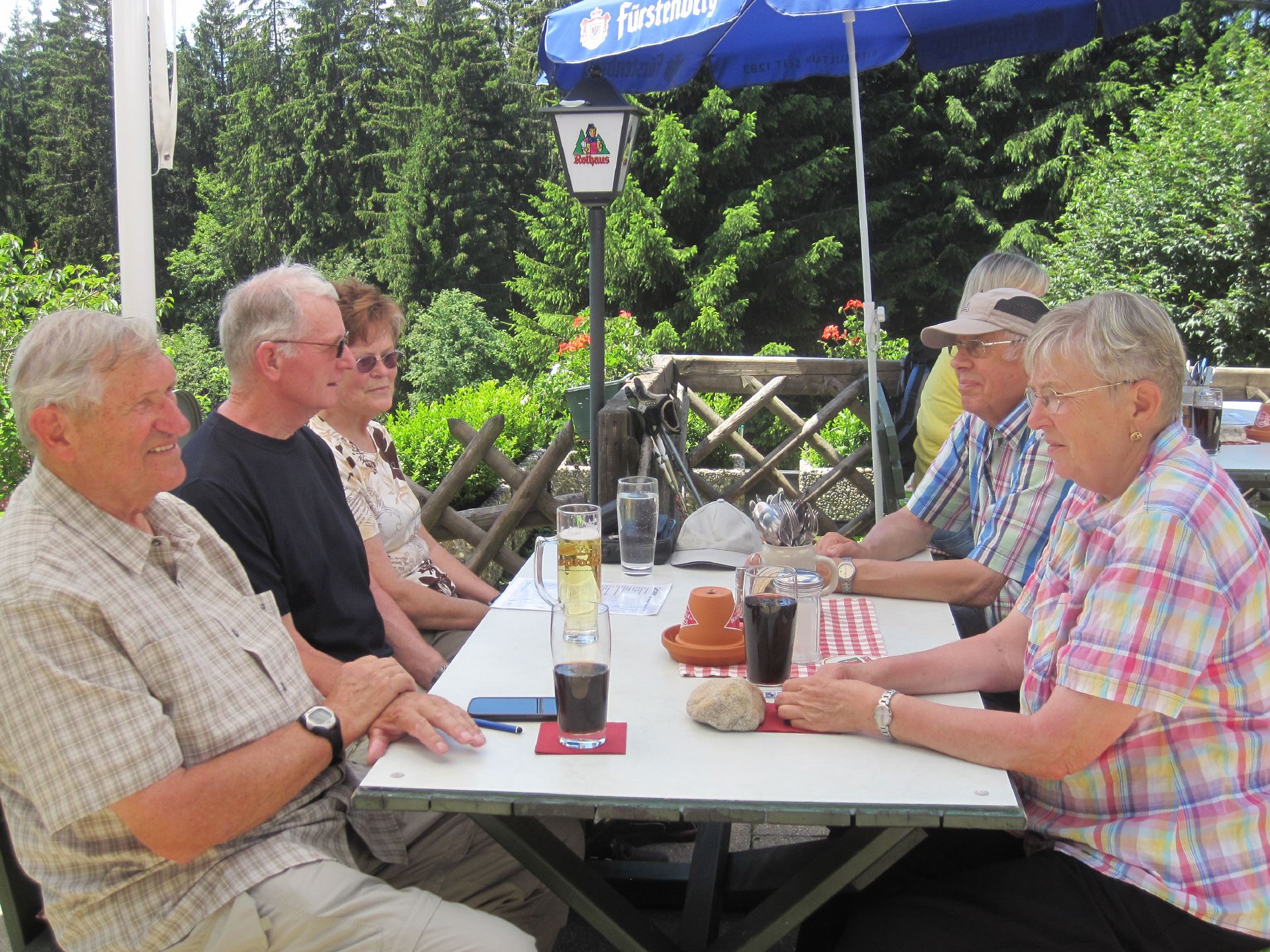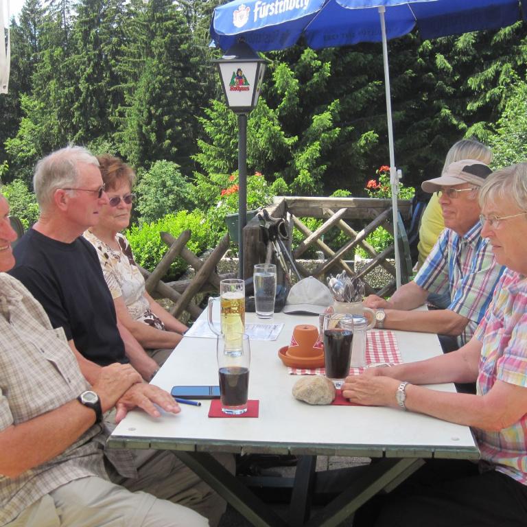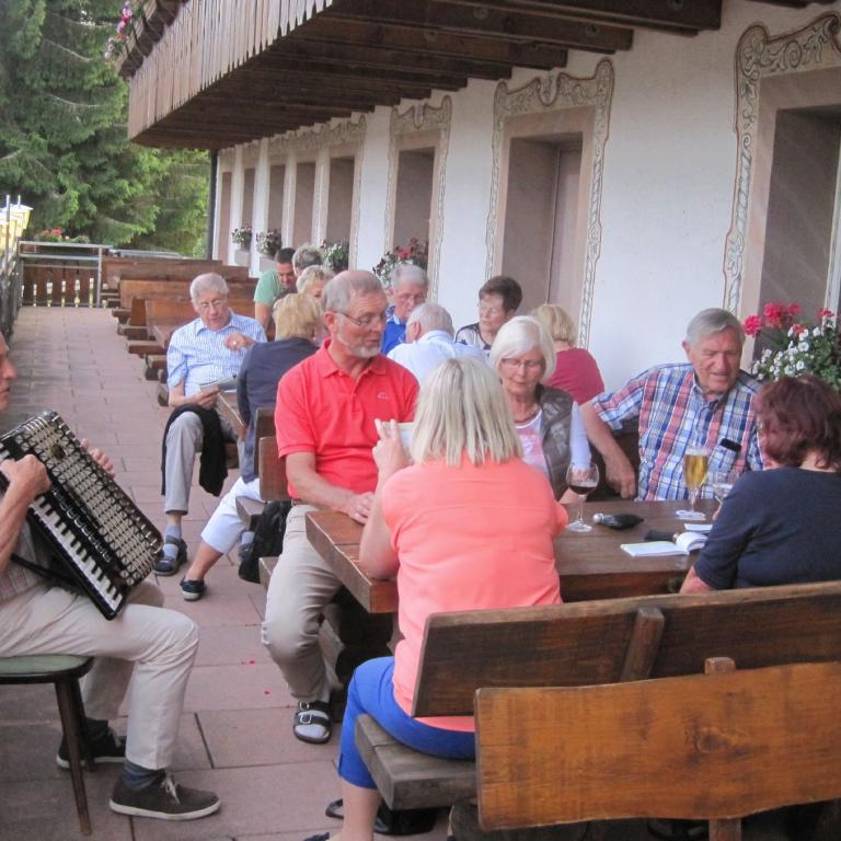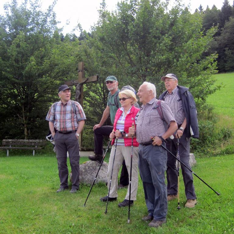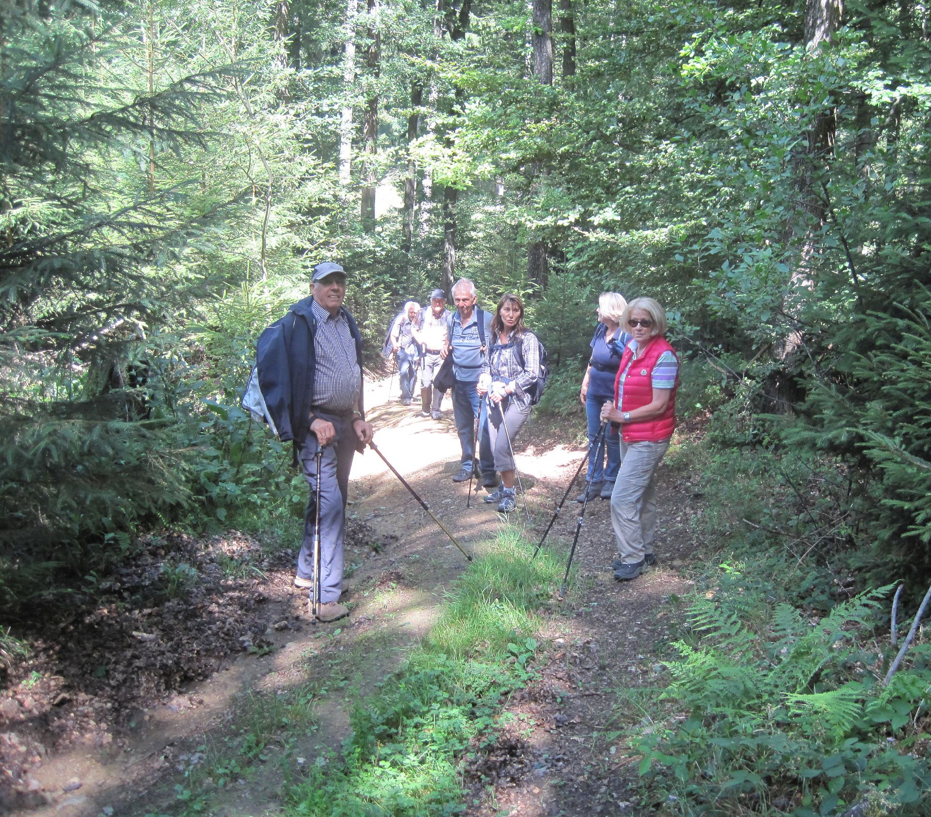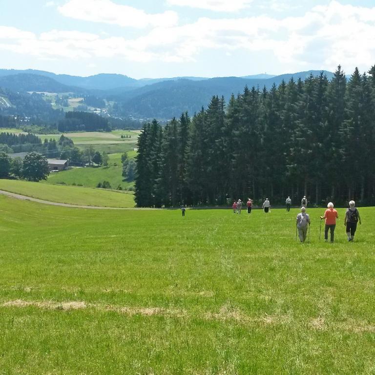 Als Standort diente ein typisch Schwarzwälder Gasthaus in Waldau. Zum Einlaufen wurde am ersten Tag ein Rundweg um Waldau erwandert. Am zweiten Tag stand ein Teilabschnitt des Westweges, vom Parkplatz Thurner nach Hinterzarten, auf dem Programm. Durch schattige Wälder, über die Weißtannhöhe führte der Weg zum Wanderheim des Schwarzwaldvereins "Berghäusle". Nach diesem gemütlichen Rasthaus waren es noch einige Kilometer bis Hinterzarten, von wo uns der Bus, mit Gästekarte, kostenlos zum Thurner zurückbrachte. Am dritten Tag morgens wurde der Feldbergsteig, eine anspruchsvolle Wegstrecke erwandert, über den Feldberggipfel mit der wunderbaren Fernsicht bis zu den Vogesen und den Alpen, vorbei an der Zastlerhütte, Baldingerhütte zum Raimatihof, wo nach einem heißen Tag Rast gemacht wurde. Den Durst gestillt, erfolgte am Feldbergsee vorbei der steile Anstieg zum Ausgangspunkt der Wanderung. Am vierten und letzten Tag, nach einer etwas längeren Anreise vorbei am Titisee und Schluchsee, wurde Sankt Blasien besucht. Wanderfreund Herbert, von der Sektion Sankt Blasien des Schwarzwaldvereins, führte uns über die Luisenruhe zum Lehnkopfturm mit herrlichem Rundblick über die Gipfel des Südschwarzwaldes. Die Erläuterung der Geschichte und die Kirchenbesichtigung mit der größten Kirchenkuppel nördlich der Alpen übernahm ein anderer Freund des Schwarzwaldvereins. Trotz der großen Hitze waren alle Wanderfreunde der SGV-Abteilung von den Wandertagen, den gemütlichen Abenden mit Akkordeon-Begleitung von Karl-Heinz und der schönen Natur im Südschwarzwald begeistert.