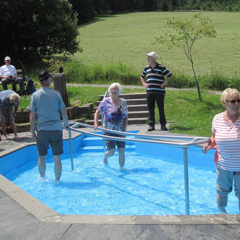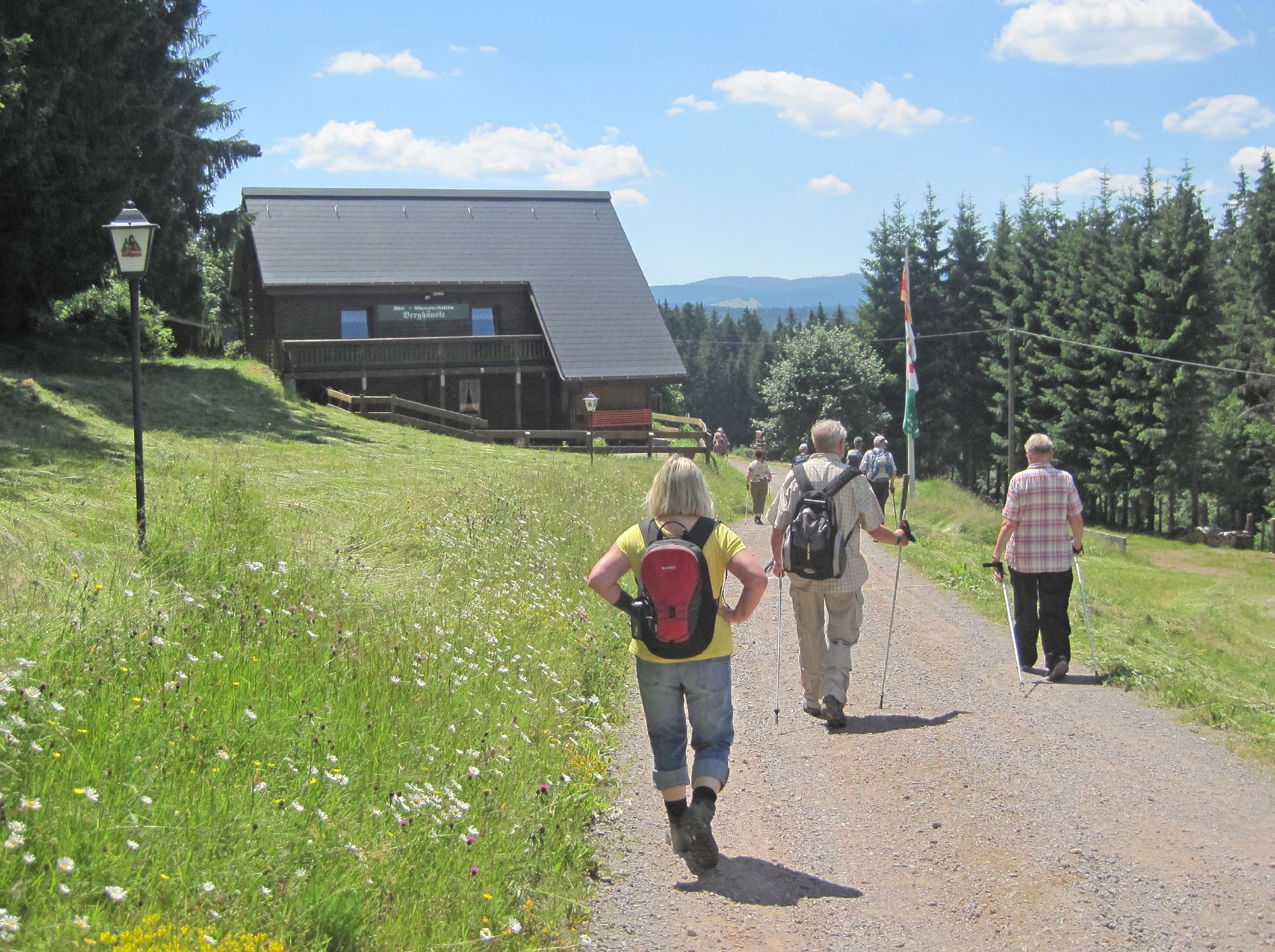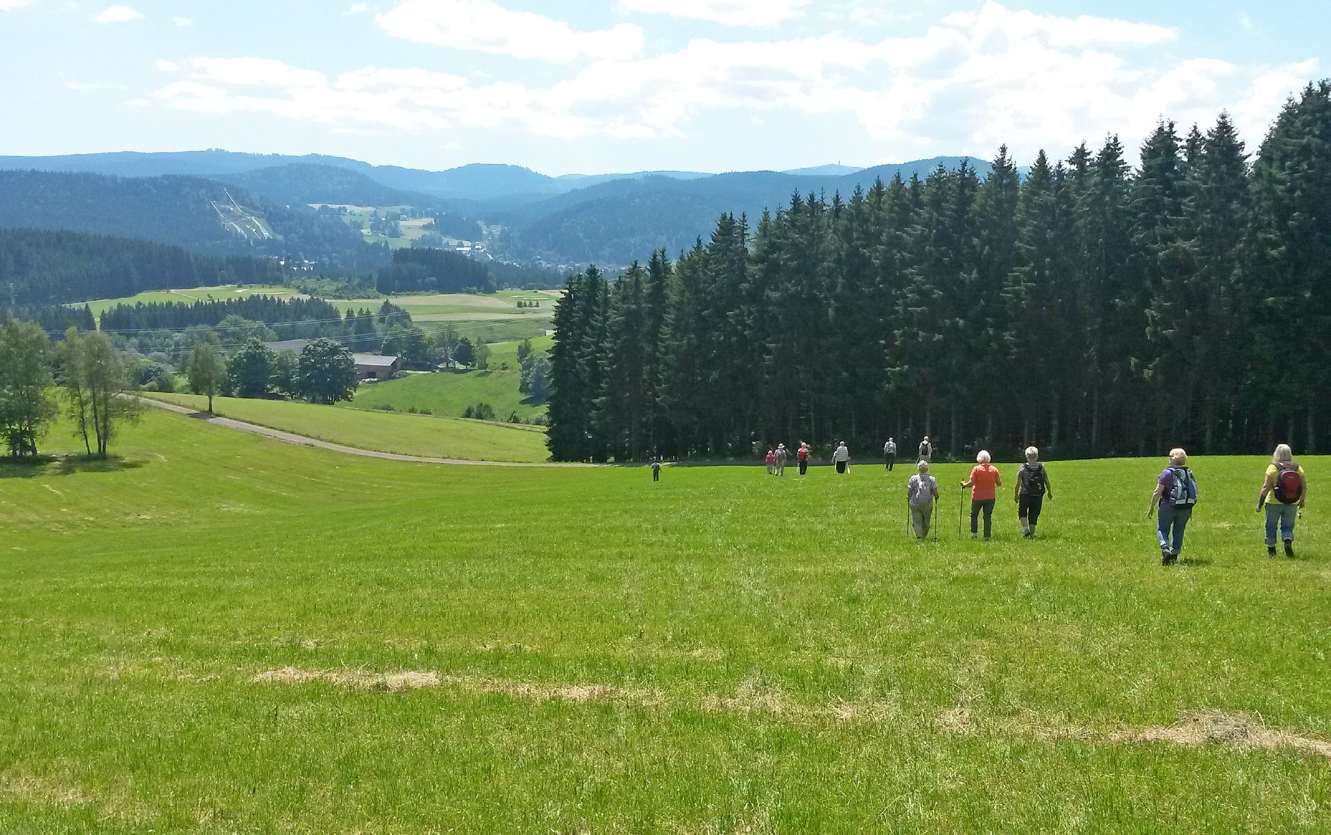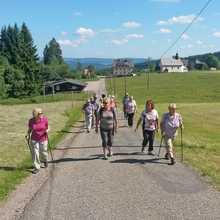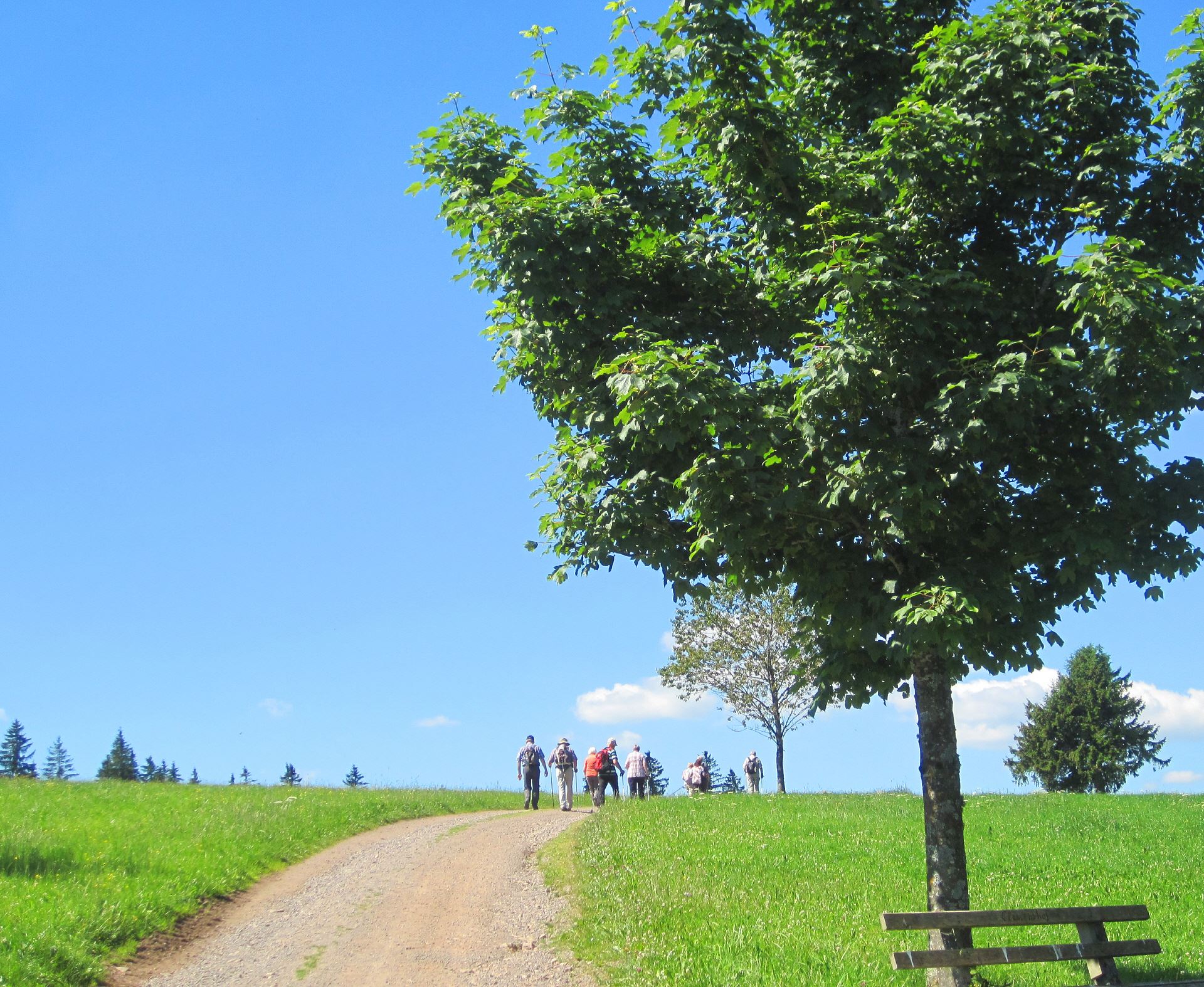 Als Standort diente ein typisch Schwarzwälder Gasthaus in Waldau. Zum Einlaufen wurde am ersten Tag ein Rundweg um Waldau erwandert. Am zweiten Tag stand ein Teilabschnitt des Westweges, vom Parkplatz Thurner nach Hinterzarten, auf dem Programm. Durch schattige Wälder, über die Weißtannhöhe führte der Weg zum Wanderheim des Schwarzwaldvereins "Berghäusle". Nach diesem gemütlichen Rasthaus waren es noch einige Kilometer bis Hinterzarten, von wo uns der Bus, mit Gästekarte, kostenlos zum Thurner zurückbrachte. Am dritten Tag morgens wurde der Feldbergsteig, eine anspruchsvolle Wegstrecke erwandert, über den Feldberggipfel mit der wunderbaren Fernsicht bis zu den Vogesen und den Alpen, vorbei an der Zastlerhütte, Baldingerhütte zum Raimatihof, wo nach einem heißen Tag Rast gemacht wurde. Den Durst gestillt, erfolgte am Feldbergsee vorbei der steile Anstieg zum Ausgangspunkt der Wanderung. Am vierten und letzten Tag, nach einer etwas längeren Anreise vorbei am Titisee und Schluchsee, wurde Sankt Blasien besucht. Wanderfreund Herbert, von der Sektion Sankt Blasien des Schwarzwaldvereins, führte uns über die Luisenruhe zum Lehnkopfturm mit herrlichem Rundblick über die Gipfel des Südschwarzwaldes. Die Erläuterung der Geschichte und die Kirchenbesichtigung mit der größten Kirchenkuppel nördlich der Alpen übernahm ein anderer Freund des Schwarzwaldvereins. Trotz der großen Hitze waren alle Wanderfreunde der SGV-Abteilung von den Wandertagen, den gemütlichen Abenden mit Akkordeon-Begleitung von Karl-Heinz und der schönen Natur im Südschwarzwald begeistert.