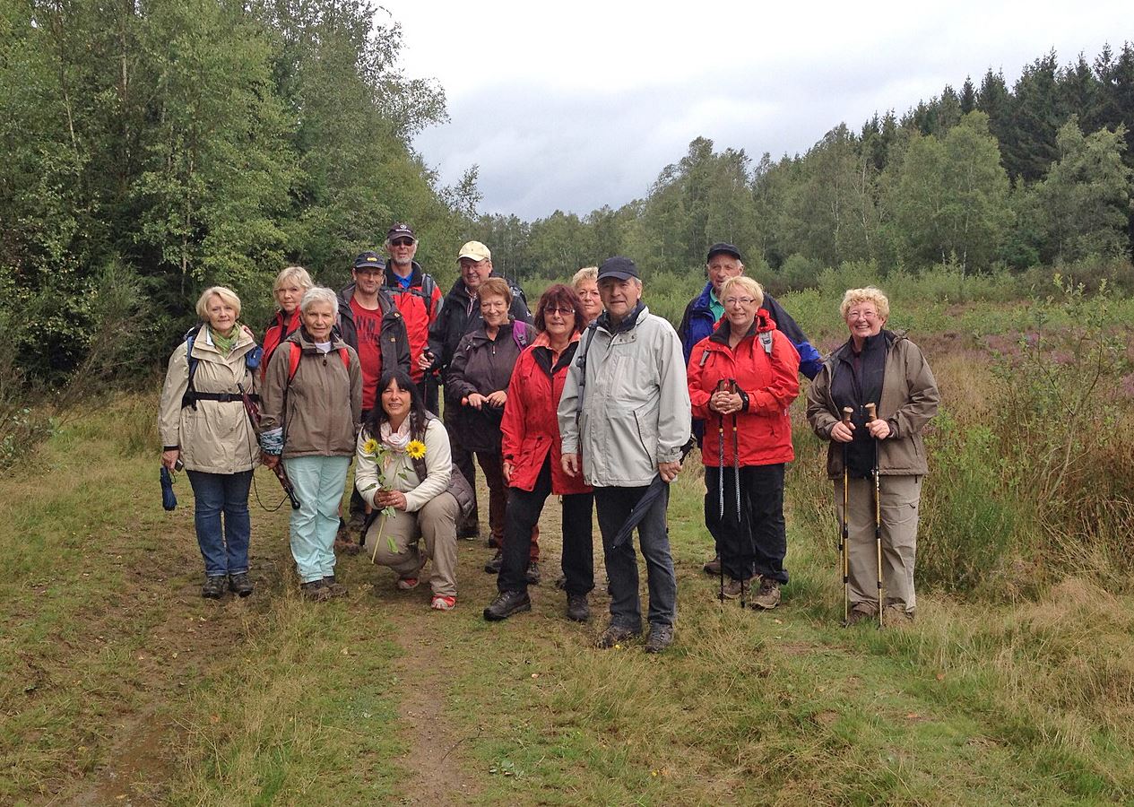 Am Sonntagmorgen trafen sich 14 Wanderfreunde des SGV-Flammersbach, unter der Leitung von Wanderführerin Regina Müller, um das ehemalige Truppenübungsgebiet der belgischen Streitkräfte und jetziges Naturschutzgebiet "Trupbacher Heide" zu erwandern. Nach einer kurzen Anfahrt mit eigenen Pkw s bis oberhalb der evangelischen Kirche "P3" in Trupbach ging es los. Wo einst Militärübungen stattfanden, bietet heute ein sehenswertes und artenreiches Naturschutzgebiet Erholung für den Naturliebhaber. Das Siegener Naturschutzgebiet, das Einzige im Siegerland, mit Heiden und Magerrasen bei Trupbach, bildet zusammen mit dem Freudenberger Gebiet ligendem Naturschutzgebiet "Kirchberg" die Trupbacher Heide. Auf der Grenze zwischen Siegen und Freudenberg konnten wir die 200 Jahre alten Grenzeichen bestaunen. Die Wanderung führte uns vorbei an noch blühenden Zwergstrauchheiden und Magerrasen. Um diese Landschaft zu erhalten, muss sie ganz besonders gepflegt werden. Dies geschieht durch ein spätes Mähen und Beweiden von Schafen und Ziegen. Nach ca. 3 Std. Wanderzeit, bei fast trockenem Wetter, sind wir wieder an unserem Ausgangspunkt angekommen.