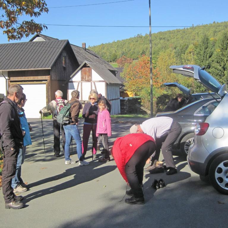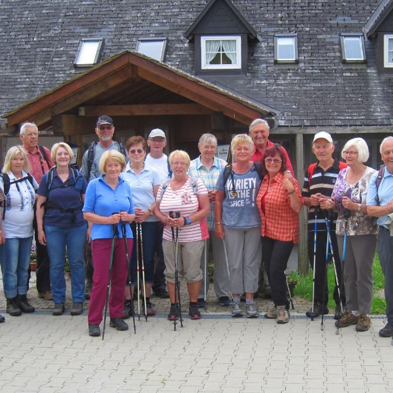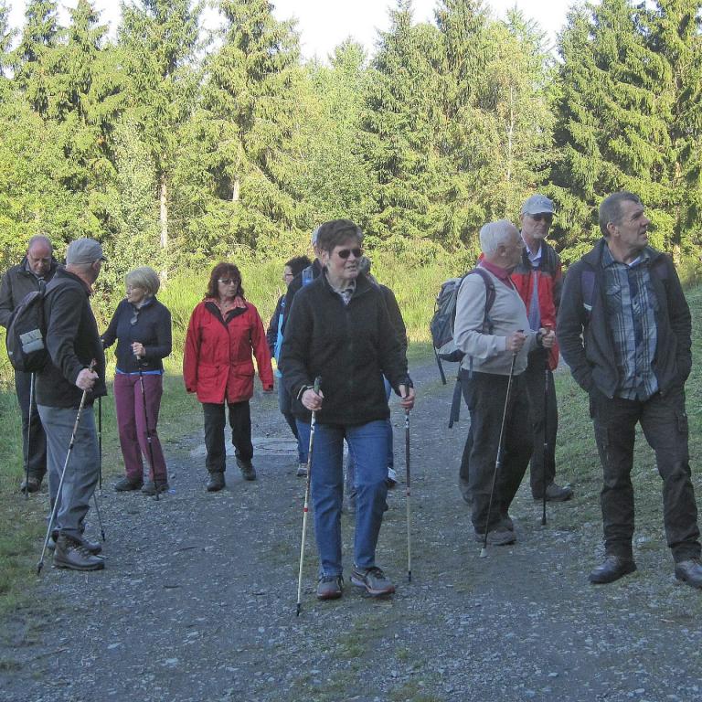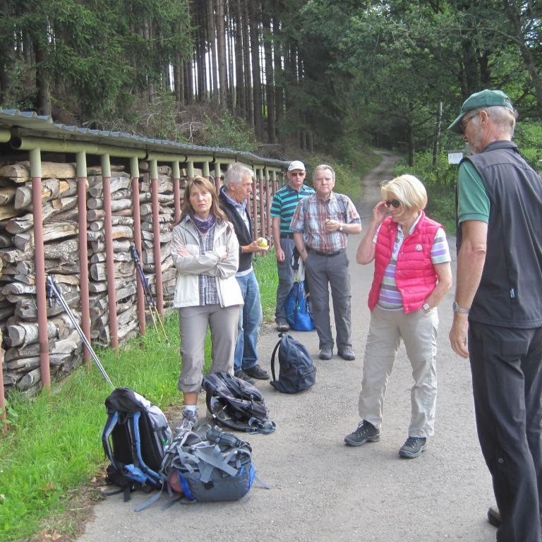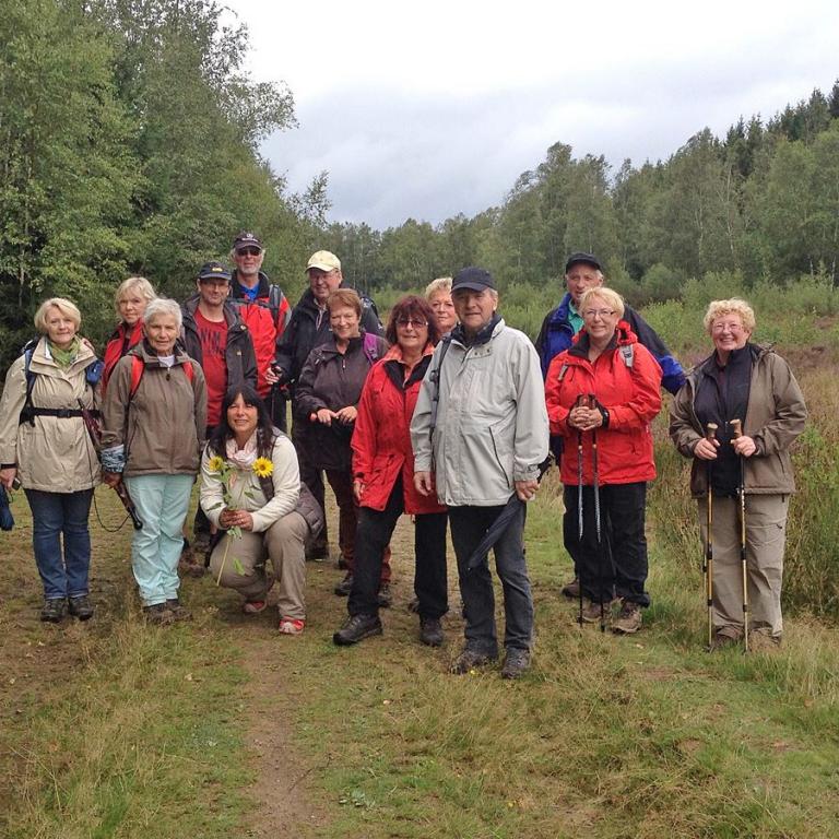 Mit Pkw`s fuhren wir nach Deuz. Oberhalb des Friedewaldes ging es auf dem Richard-Müller Weg weiter. Die Obernautalsperre erblickten wir von weitem, bis uns der Weg wieder zurück zum Ausgangspunkt führte. Es war ein heißer Tag, als uns die Wanderung zum Gasthof Klein führte. Durch den schattigen Wald ging es an Feuersbach über die Höhe nach Deuz. Im Gasthof klein wurden wir verwöhnt mit Eiskaffee, Pflaumenkuchen mit Sahne und einem kühlen Bier oder Wasser. Die Wachholderheide war Ausgangspunkt. Nach einem schönen Fußmarsch hatten wir Glück, das Kaffee am Birkenhof hatte geöffnet und es gab etwas Warmes zu trinken. Die Herbstsonne war herrlich. Wieder starteten wir von Deuz, Karl-Heinz fuhr uns - Dankeschön Der Wald war wunderschön anzusehen. Mit viel Spaß und Freude erreichten wir schon bald unser Ziel, die Grillhütte in Nenkersdorf. Als wenn man auf uns gewartet hätte, gab es frische Waffeln, Kuchen und Kaffee. Mit Pkw ging es zurück nach Flammersbach.