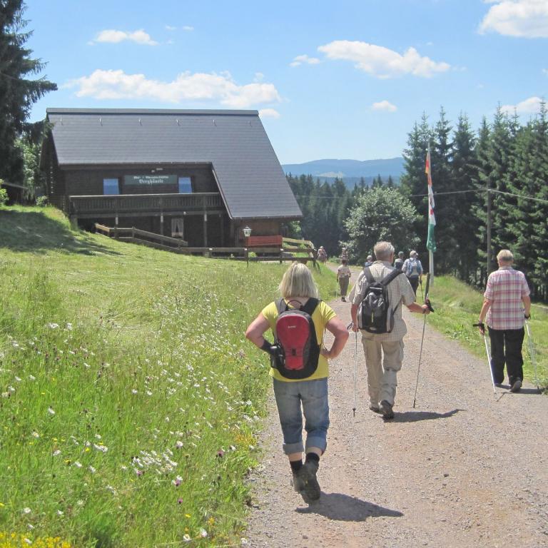 Nach dem Aufenthalt wanderten wir weiter zur Mühlenkopfschanze. Dort angekommen stärkten wir uns im Lokal Aufwind, bei gutem Essen und Getränken.