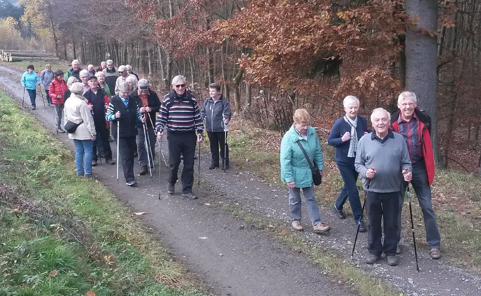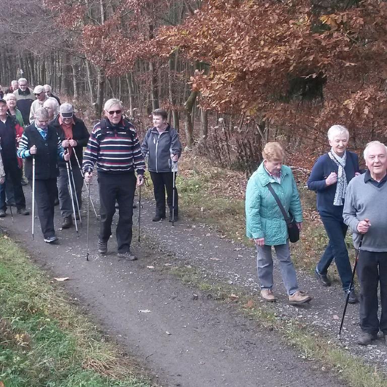 Gemeinschaftswanderung mit Netphen am 8. 11. 2015. Mit 15 Gästen aus Netphen und 13 Wanderern vom FlammersbacherSGV begann die Tour in der Flammersbacher und Feuersbacher Gemarkung. An der ersten Abkürzung gingen einige Teilnehmer zurück in die Hütte ca. 4 km. Nach etwas mehr als 1 km war die nächste Abkürzung erreicht. Hier trennte sich der Großteil der Wanderfreunde, um zum Wanderheim zurückzukehren ca. 6 km. Der harte Kern nahm, obwohl Kaffee , Kuchen und Schnittchen lockten, ein längere Strecke in Angriff und lief ca. 10 km. Da einige nur an dem Zusammensein in der Hütte teilnehmen konnten, erhöhte sich die Anzahl der Gäste aus Netphen auf 19 Personen. Von Flammersbach waren 20 Personen anwesend. Alle stärkten sich bei Kuchen, Schnittchen , Kaffee und gezapftem Bier . Karl Heinz spielte bekannte Lieder auf seinem Schifferklavier und regte so die Gesellschaft zum Singen an. Die Teilnehmer bedauerten, die gemütliche Atmosphäre im Wanderheim verlassen zu müssen.