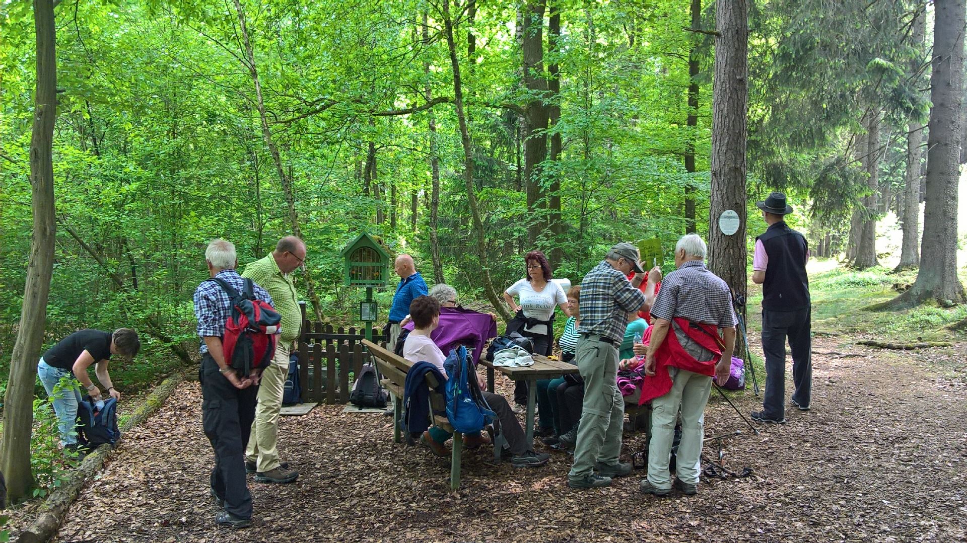 Nach kurzer Absprache am Wanderparkplatz auf der Stembach, fuhren wir nach Bad Marienberg. Am Parkplatz gegenüber vom Marienbad ist dann die 24 köpfige Wandergruppe gestartet. Durch den Basaltpark ging es bergauf zum Wildpark. Am Kletterwald vorbei durch den Fichtenwald zum Großen Wolfstein. Bei einer kleinen Rast wurde das Naturdenkmal bestiegen und betrachtet.