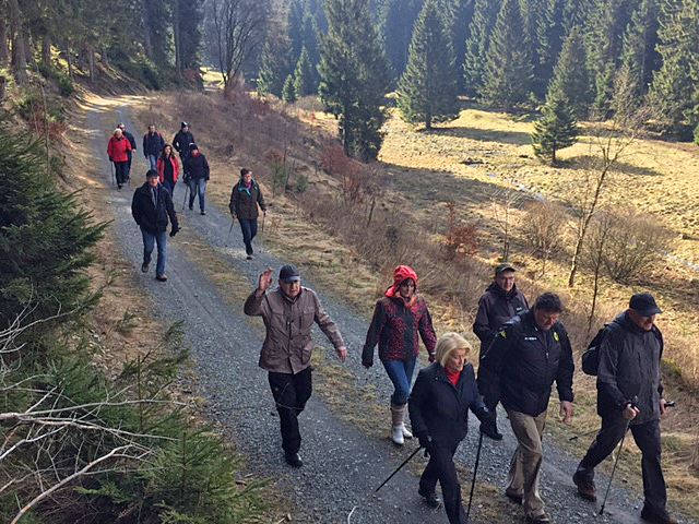 Bei der Vorbesichtigung am Sonntag den, 19. 2 . verhinderten noch viele Eisplatten und Schneeflächen ein gefährliches Wandern auf dem Rundweg. Eine Woche später waren alle Wege frei und wir konnten die circa 9 km ohne Probleme auf gut begehbaren Wegen erwandern. Für 17 Wanderfreunde war es bei frühlingshaftem Wetter ein großer Wandergenuss. Nach der Wanderung kehrten wir ins Forsthaus Hohenroth zum Mittagessen ein. Dort erwartete uns ein vorzügliches Mittagessen, das bei allen Teilnehmern gut ankam. Nachdem wir uns gestärkt hatten, traten wir den Heimweg an.