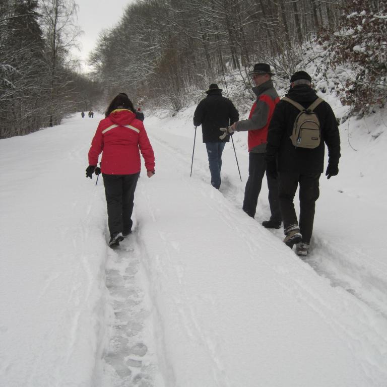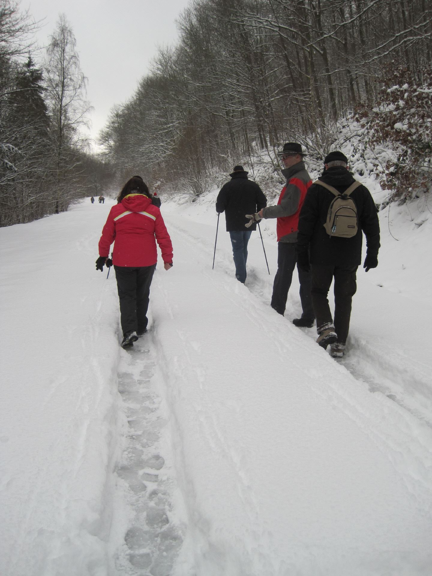 Im Januar bot Ilse Starke eine Wanderung um die Obernau-Talsperre mit anschließender Einkehr. Mit 19 Personen, bei Kälte und Schneefall und nur spärlich oder auch gar nicht geräumten Wegen, wurde die Obernau umwandert. Nach 2,5 Stunden Wanderzeit erreichten wir die angrenzende Gaststätte, wo Kaffee und Kuchen schon auf uns warteten.