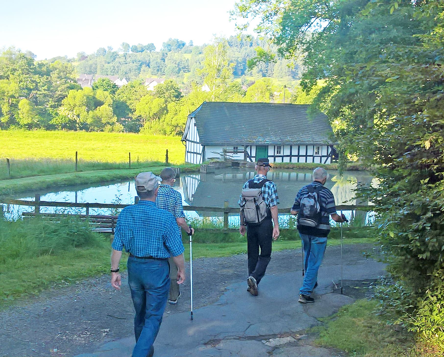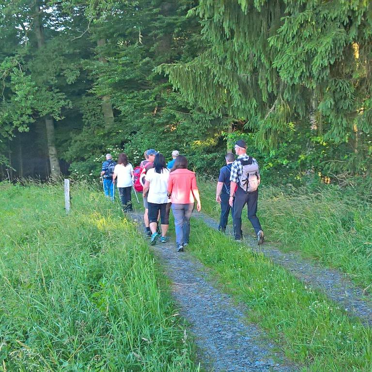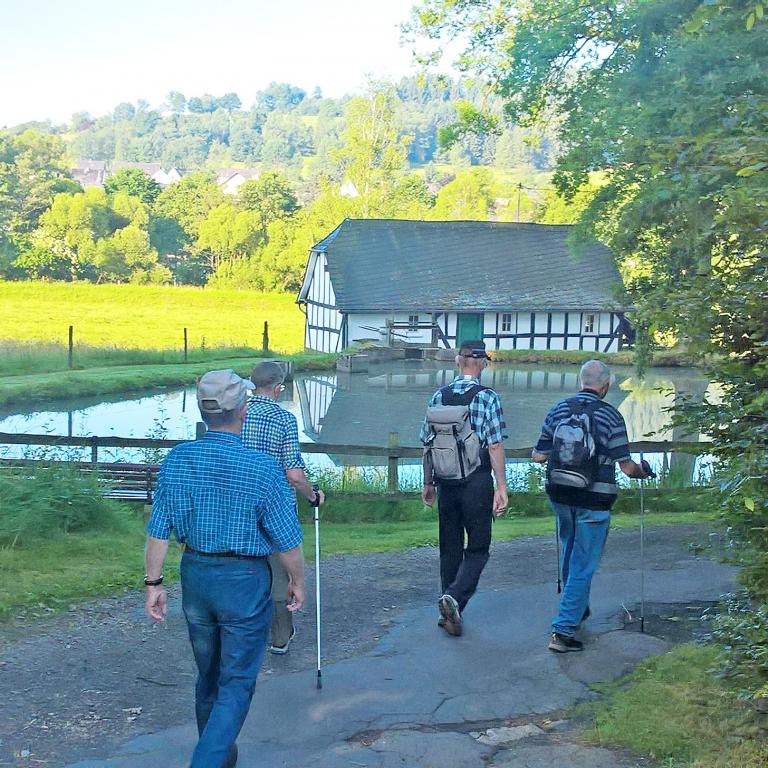 Am Sonntag, den 28. Juni um 7:00 Uhr wanderten wir mit 11 Personen zum Hotel "Pfeffermühle". Unsere Wanderführerin Regina führte uns ca. 90 Minuten vom Parkplatz - Flammersbach zur Dielfer - Mühle, weiter an der ehemaligem Abdeckerei vorbei, bis oberhalb dem Röhrenwerk Fuchs in Kaan-Marienborn, immer entlang an der Trasse der Gasleitung . Ein kurzer, aber heftiger Anstieg zur Pfeffermühle und das Ziel ist erreicht. Am Ziel angelangt, wurden wir von Ute mit einem Glas Sekt empfangen. Nach kurzer Erholung und Begrüßung der sieben dort schon angekommenen Wanderer aus Richtung Eremitage gab es ein reichhaltiges Frühstück, was keine Wünsche offen ließ.Nach ca. zwei Stunden traten wir den Rückweg über Niederdielfen zur kurzen Einkehr im Gasthof "Zur alten Linde" mit Life-Musik vor dem Eingang. Bei schönem Wetter, wieder in Flammersbach angekommen, war dies ein gelungener Einstieg in den Sonntag.
