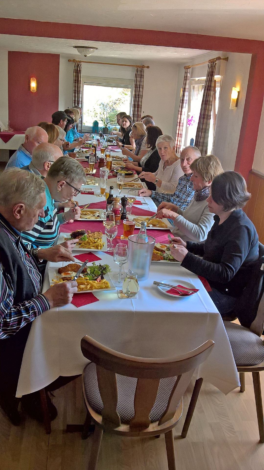 Wanderführerin P.Kölsch lud bei gutem Wetter zu einer Wanderung zum Gasthof nach Gernsdorf ein. 22 Wanderer und Wanderinnen machten sich auf den 8 Kilometer langen Weg über die Flammersbacher Höhen Richtung Gernsdorf. Vorbei an dem Salchendorfer Fußballplatz bis zum kleinen Fluggelände der Modellflieger. Dort wartete auf uns eine kleine, starke Stärkung in verschiedenen Variationen. Nach einer Pause von ca. 15 Minuten wanderten wir talabwärts, vorbei am Gernsorfer Friedhof bis zum Gasthof. Dort erwarteten uns schon die SGV-ler, die nicht mit gewandert waren. Mit 30 Personen machten wir uns über das von der Karte bestellte Gericht her. Nach dieser Stärkung wanderte ein Teil über Niederdielfen zurück nach Flammersbach.