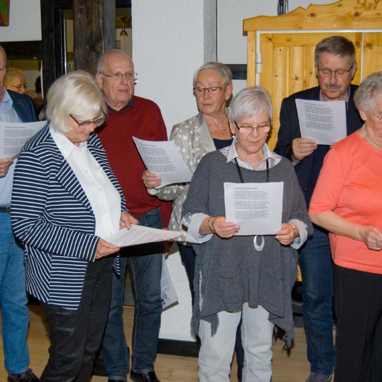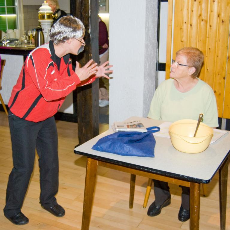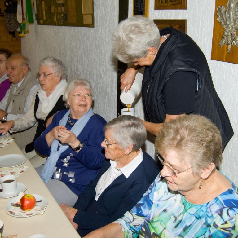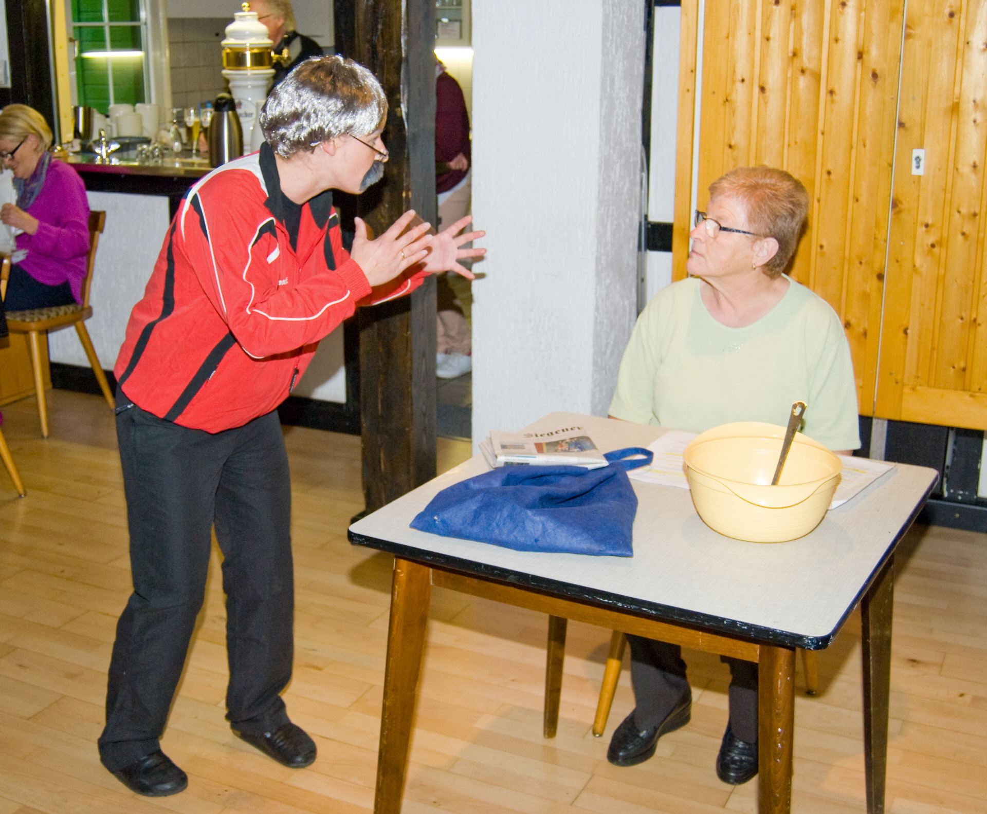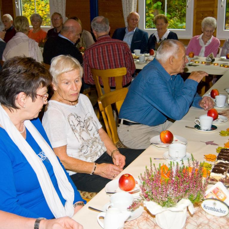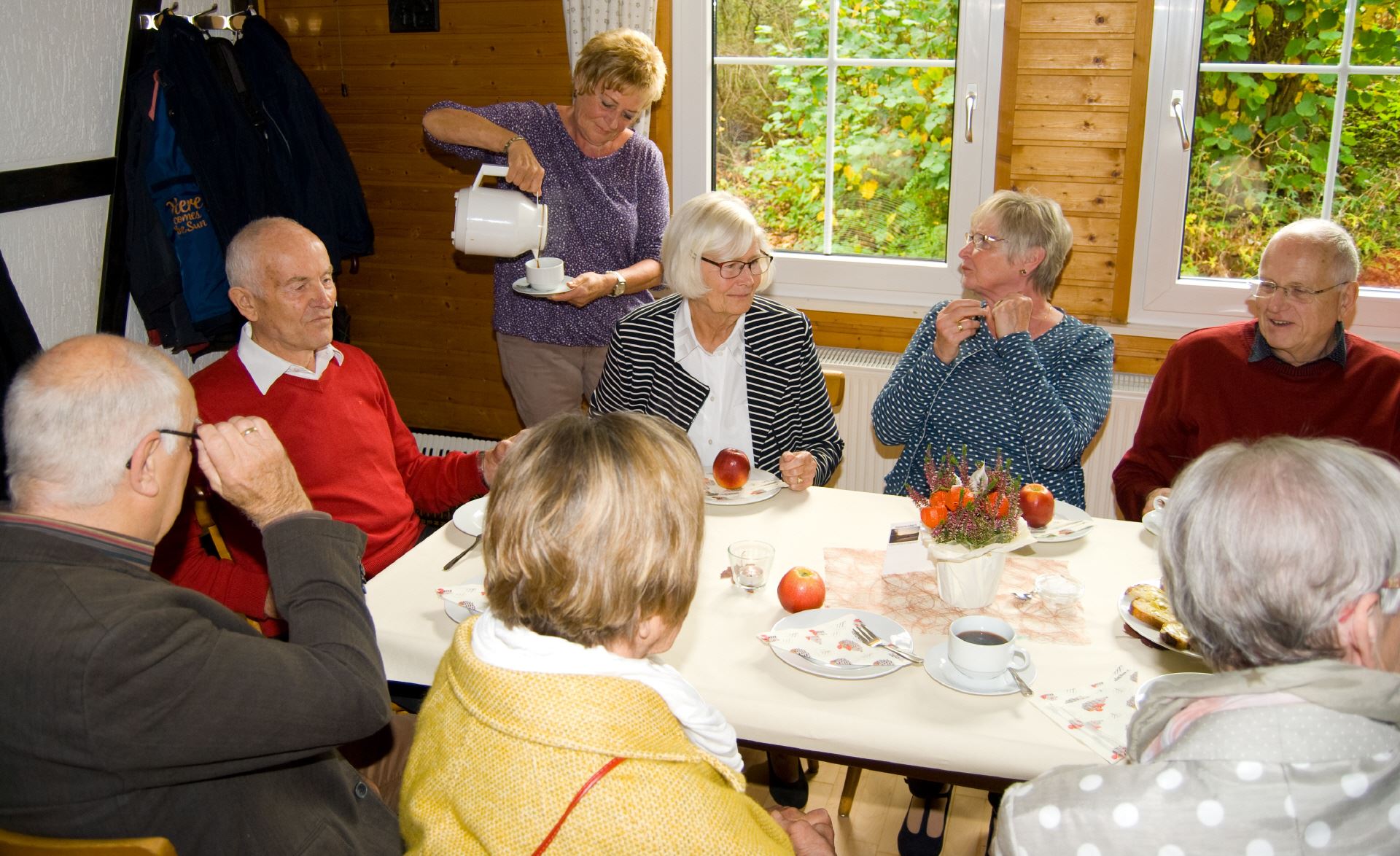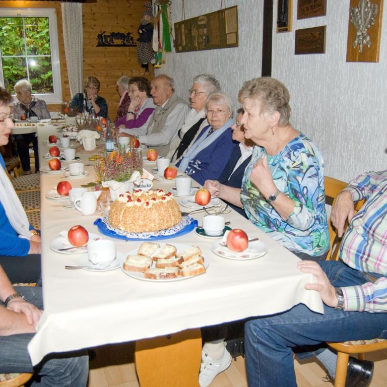63 Senioren nahmen an der 42. Seniorenfeier teil, zu der die 1. Vorsitzende Ilse Starke eingeladen hatte. Nach einer kurzen Begrüßung durch die Vors. und den ehemaligen Ortsvorsteher Helmut Berg der Neuigkeiten vom Dorfleben berichtete, wurde ein gemeinsames Lied gesungen. Danach hatte alle großen Hunger und die Damen, die in der Küche tätig waren, schenkten Kaffee ein und verteilten den Kuchen. Nach dem sich alle ausgiebig gestärkt hatten, gab unser SGV-Singkreis eine Probe seines Könnens zum besten. Anschießend führte der Heimatverein Anzhausen, vertreten durch Gertrud Schneider und Andrea Neef einen Sketch über das 3. Brötchen vor. Diese Vorführung erfreute sich allgemeiner Beliebtheit. Es wurde viel gelacht und applaudiert. Es wurde noch eine gewisse Zeit zusammen verbracht, bei der man die Möglichkeit hatte sich zu unterhalten, ehe man zufrieden über einen schönen Nachmittag den Nachhauseweg antrat. Die 1.Vorsitzende möchte sich nochmals bei allen Mitwirkenden bedanken, vor allen Dingen bei den Damen in der Küche, die Kuchen gebacken und gespendet haben. Dank auch an Dieter Schmidt, der den Thekendienst übernommen hatte.