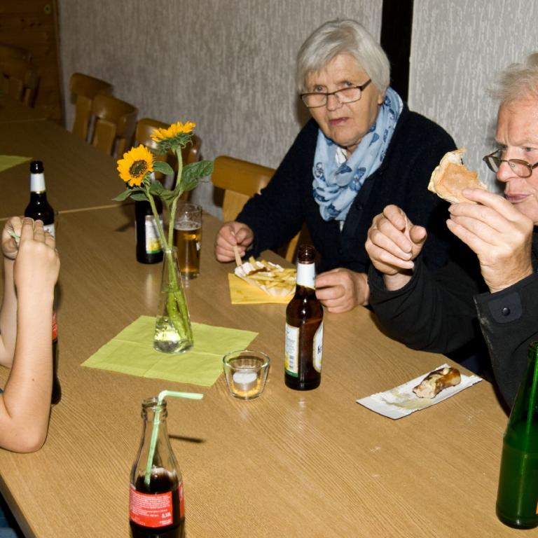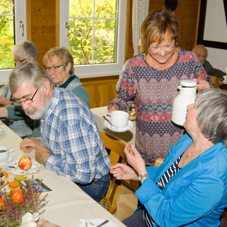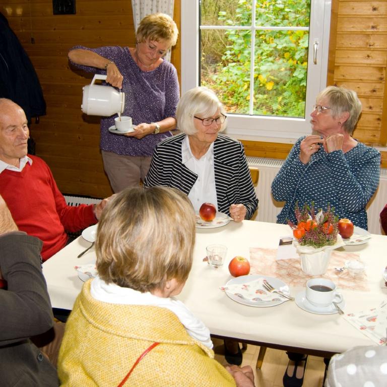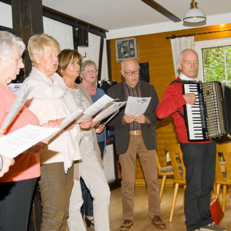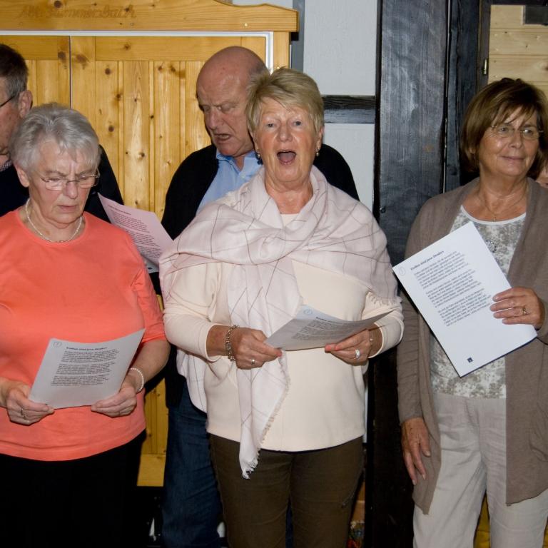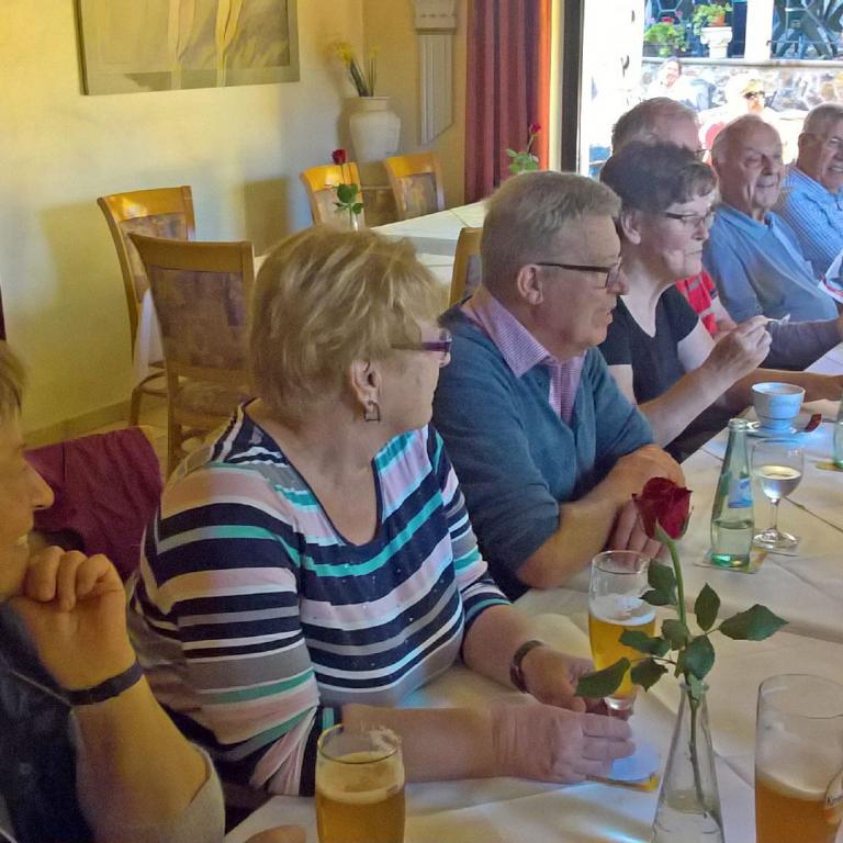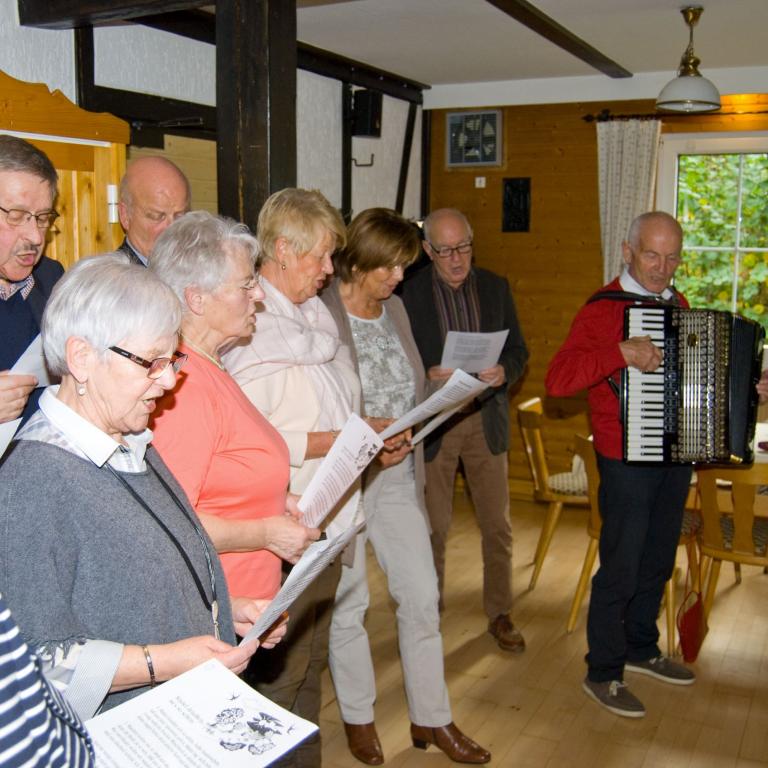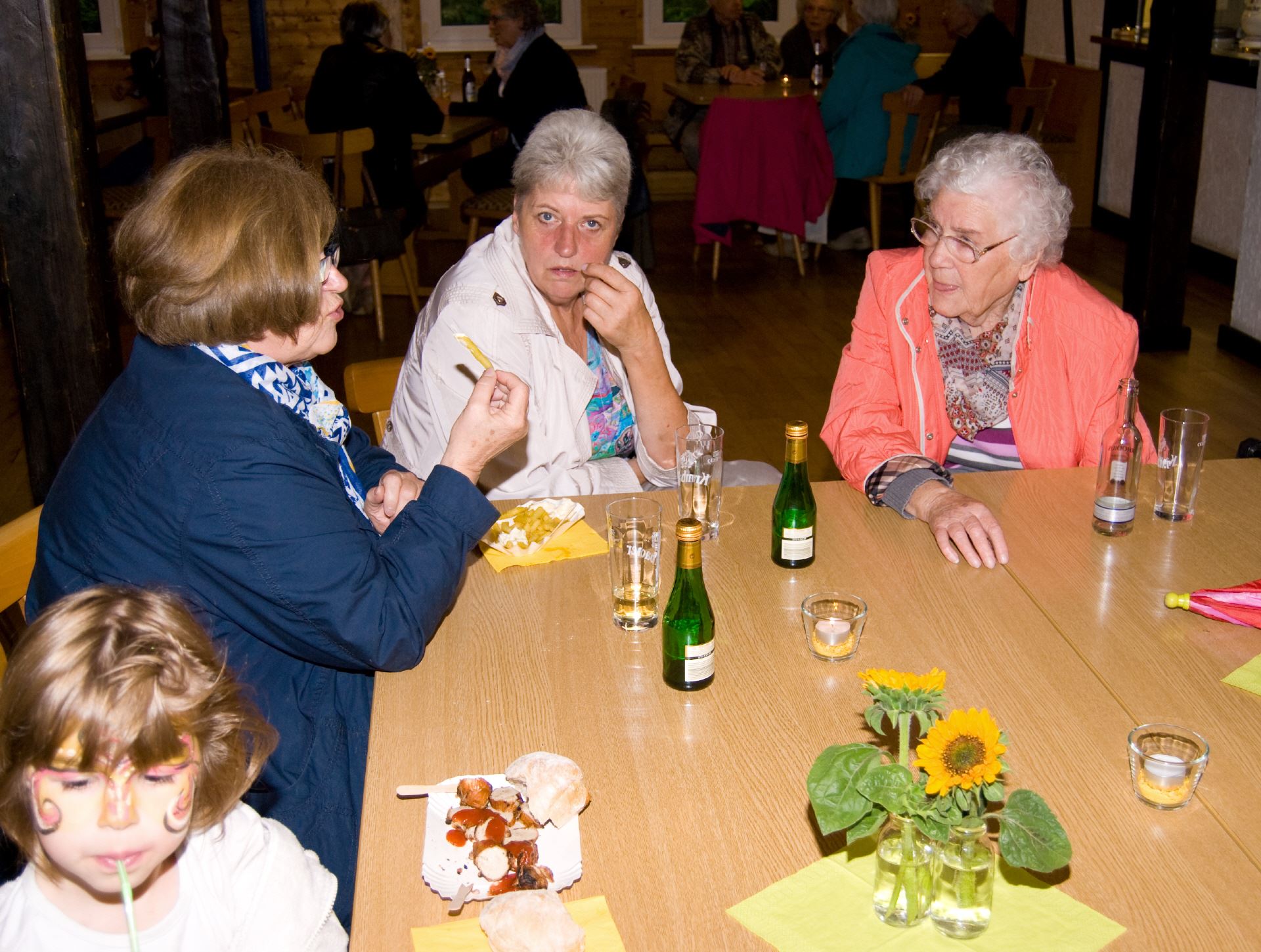 63 Senioren nahmen an der 42. Seniorenfeier teil, zu der die 1. Vorsitzende Ilse Starke eingeladen hatte. Nach einer kurzen Begrüßung durch die Vors. und den ehemaligen Ortsvorsteher Helmut Berg der Neuigkeiten vom Dorfleben berichtete, wurde ein gemeinsames Lied gesungen. Danach hatte alle großen Hunger und die Damen, die in der Küche tätig waren, schenkten Kaffee ein und verteilten den Kuchen. Nach dem sich alle ausgiebig gestärkt hatten, gab unser SGV-Singkreis eine Probe seines Könnens zum besten. Anschießend führte der Heimatverein Anzhausen, vertreten durch Gertrud Schneider und Andrea Neef einen Sketch über das 3. Brötchen vor. Diese Vorführung erfreute sich allgemeiner Beliebtheit. Es wurde viel gelacht und applaudiert. Es wurde noch eine gewisse Zeit zusammen verbracht, bei der man die Möglichkeit hatte sich zu unterhalten, ehe man zufrieden über einen schönen Nachmittag den Nachhauseweg antrat. Die 1.Vorsitzende möchte sich nochmals bei allen Mitwirkenden bedanken, vor allen Dingen bei den Damen in der Küche, die Kuchen gebacken und gespendet haben. Dank auch an Dieter Schmidt, der den Thekendienst übernommen hatte.