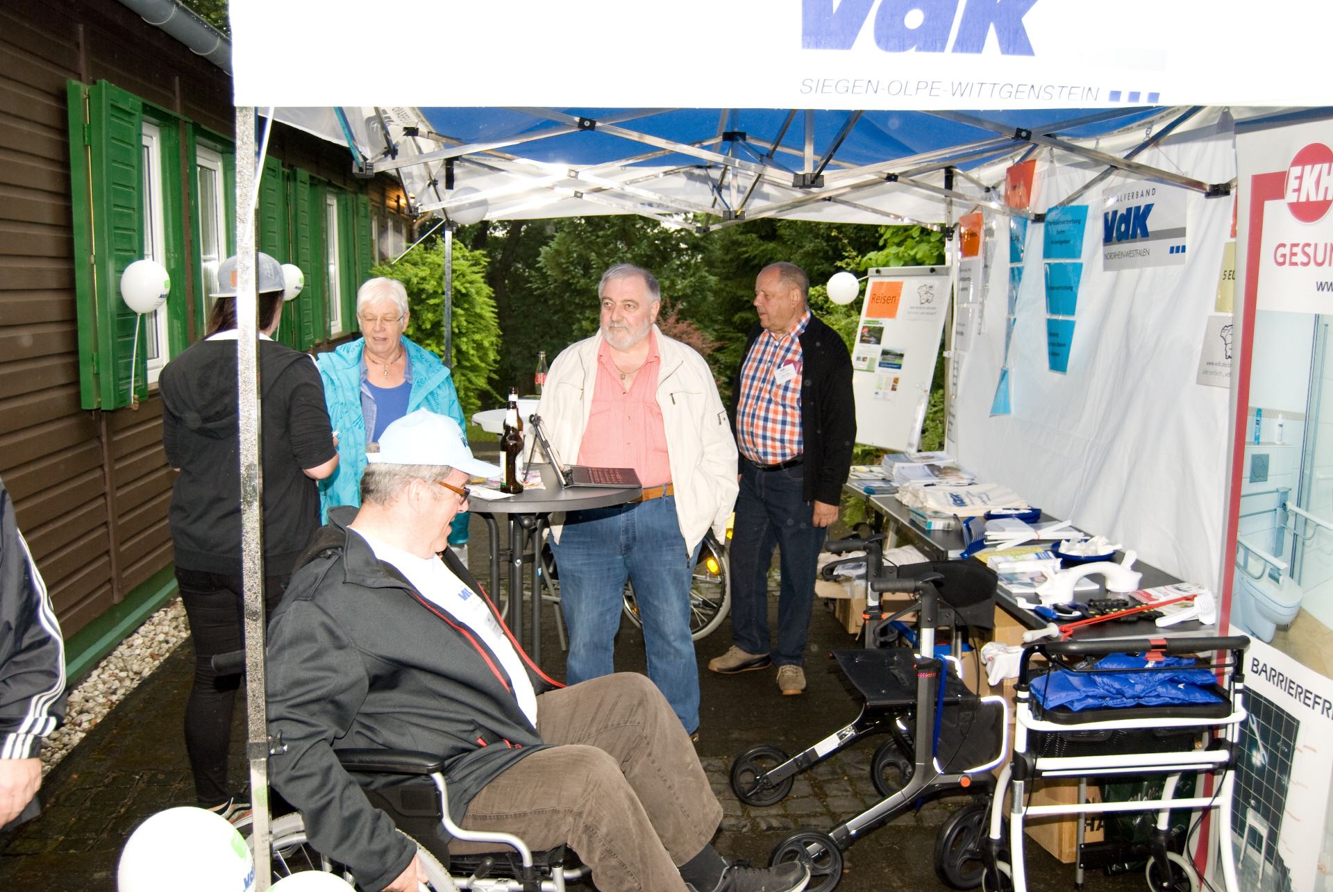 Aufgrund der vorhergesagten Wetterlage hatte sich das geplante Programm reduziert. So waren im Zuge des umfangreichen Kinder- und amilienprogrammes Begrüßung und Tanz durch die Kindergartenkinder, auf dem Sportplatz eine Hüpfburg und viele Spiele für Jung und Alt geplant gewesen. Dank dem SGV-Wanderheim und einigen Zelten des Bürgervereins, konnte man den vereinzelten Regenfällen trotzen.