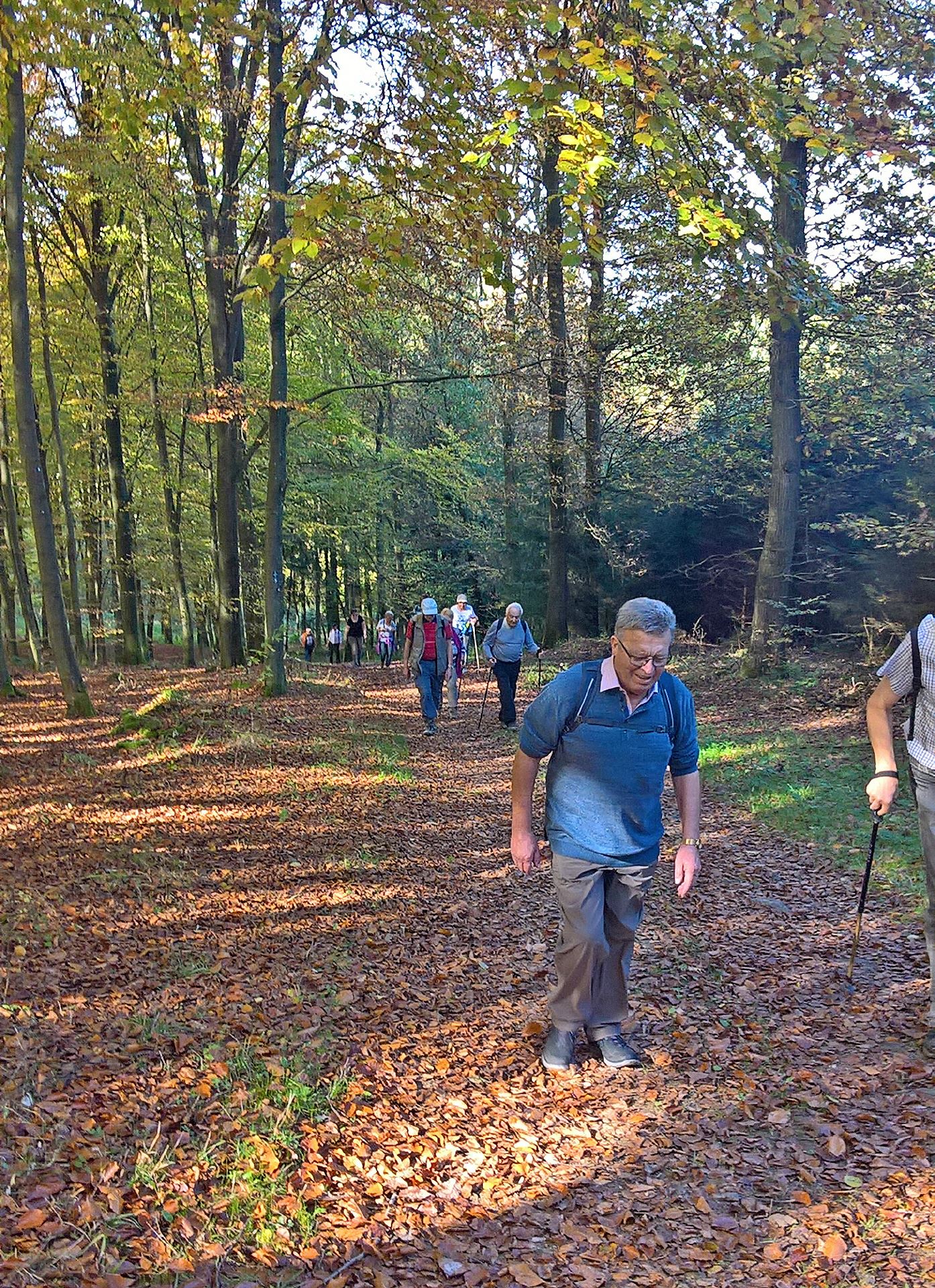 An einem "Sommertag" mitte Oktober wanderten die 17 Teilnehmer ab W.P. Dautenbach zum Windrad Hasenbahnhof. Nach einem Anstieg wurde eine erste Rast eingelegt. Blauer Himmel, bunte Laubwälder und beste Rundumsicht bis zur Siegtalbrücke begeisterten Alle. Der Weg führte weiter zum Rabenhainturm und zurück zur Dautenbach. Beendet wurde diese Tour nach 3 Stunden mit Einkehr im Cafe Dautenbach.