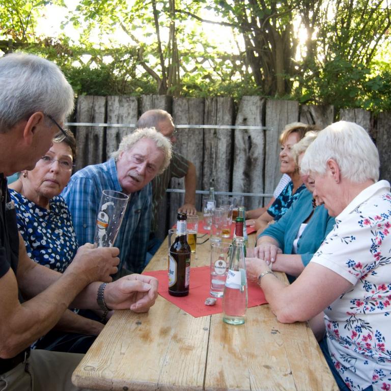 Bei der Wanderung zum "Grieschischen Gaumenschmaus" nach Weidenau sind wir mit 17 Personen hingelaufen, zum Essen kamen noch einige Gäste hinzu die nicht mitgewandert waren und so wuchs die Tafel auf 19 an. Sieben Wanderer liefen nach dem Essen nach Flammersbach zurück. Wir wurden von den Griechen verwöhnt und die Portionen fast nicht zu schaffen.