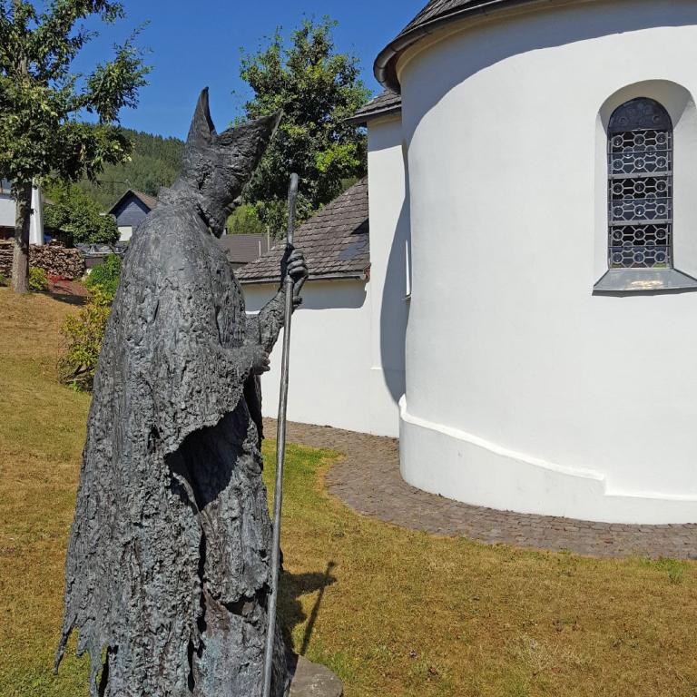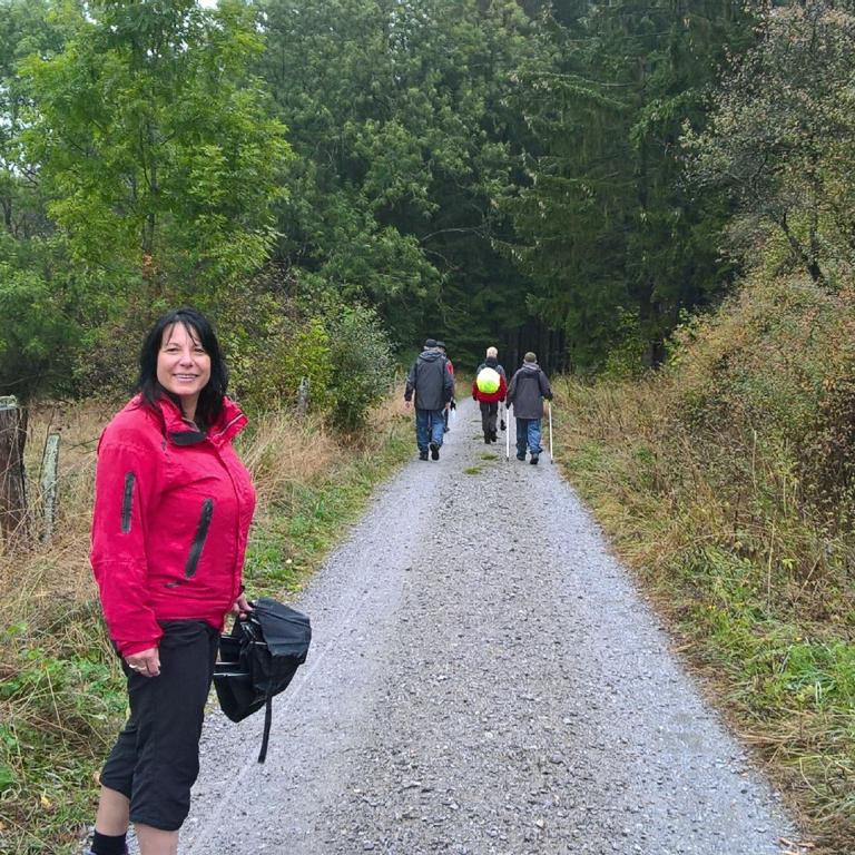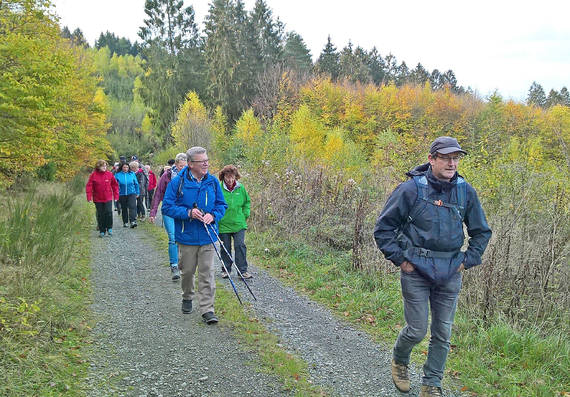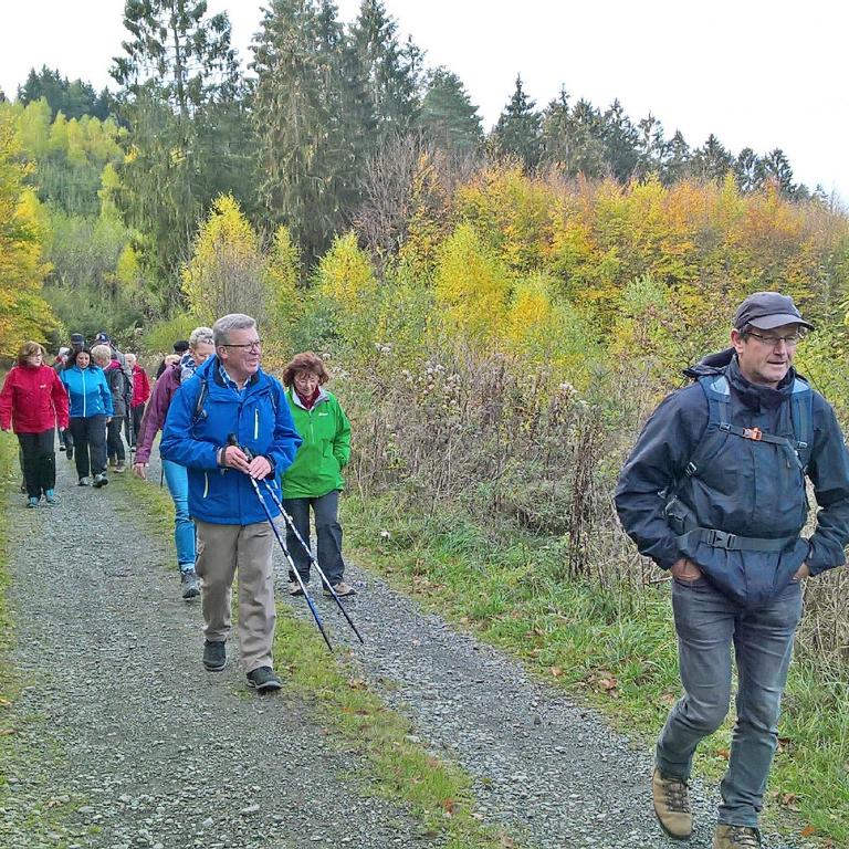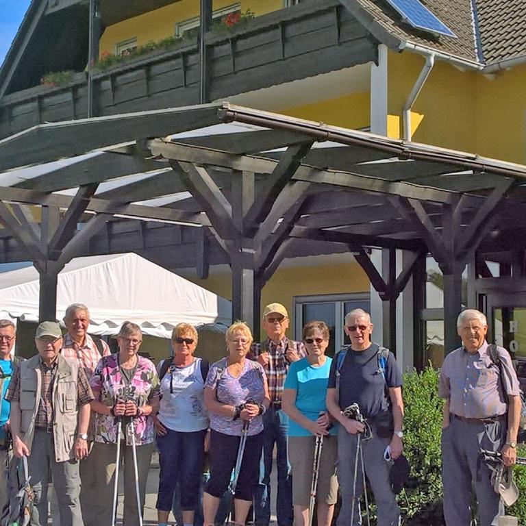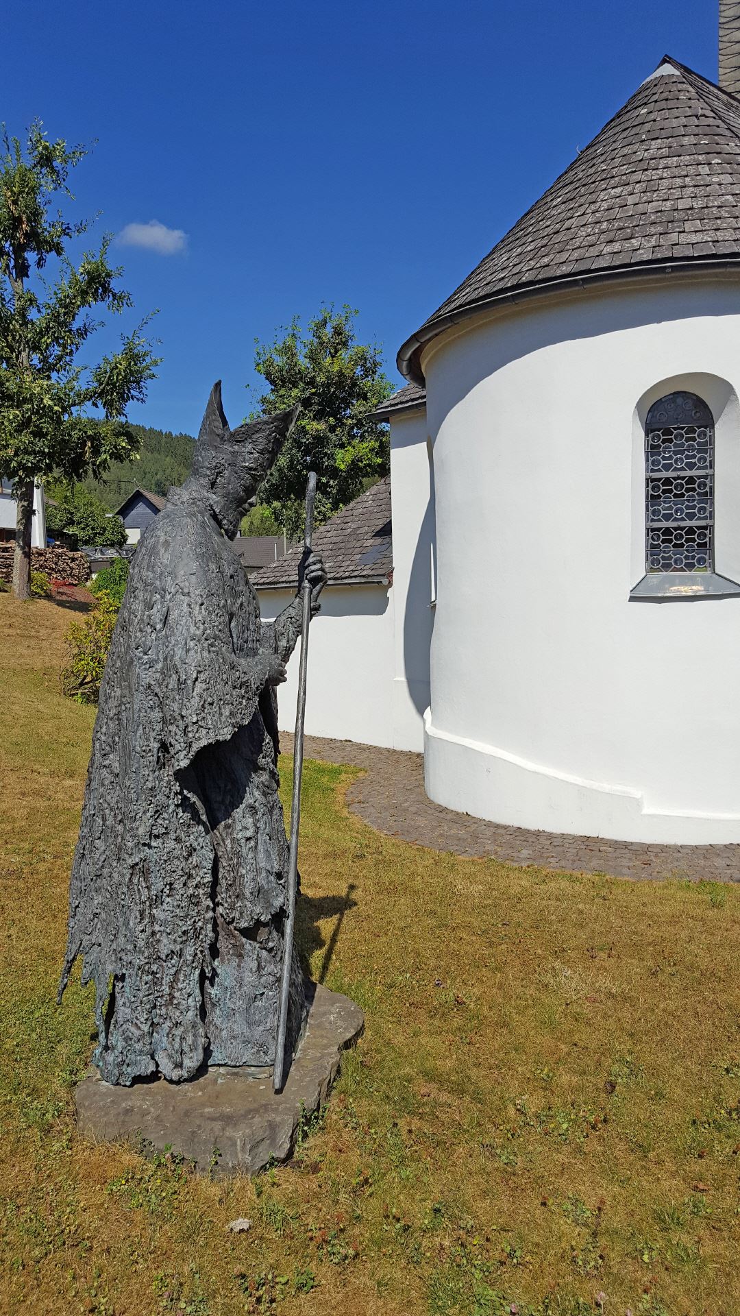 18 Wanderer fuhren ins Sauerland um dort zu wandern. Zunächst ging es bei der Rundstrecke steil bergauf. Nach einigen Anstrengungen waren wir auf der Höhe und hatten dann eine nicht mehr ansteigende Strecke, die gut zu laufen war. Es ging dem Kirchbach entlang ins Tal, ein sehr schöner Weg. Dann ging es Richtung Hofcafe und kamen an einer schönen, kleinen Kirche in Kickenbach vorbei, die wir besichtigten. Danach erreichten wir das Hofcafe und ließen bei Kaffee und gutem Kuchen die Wanderung ausklingen.