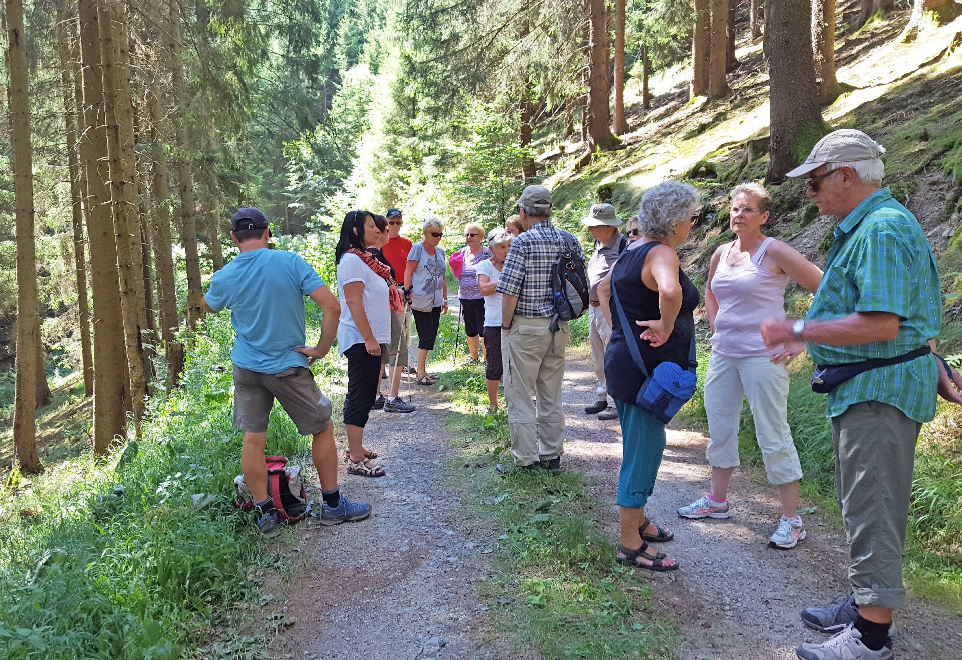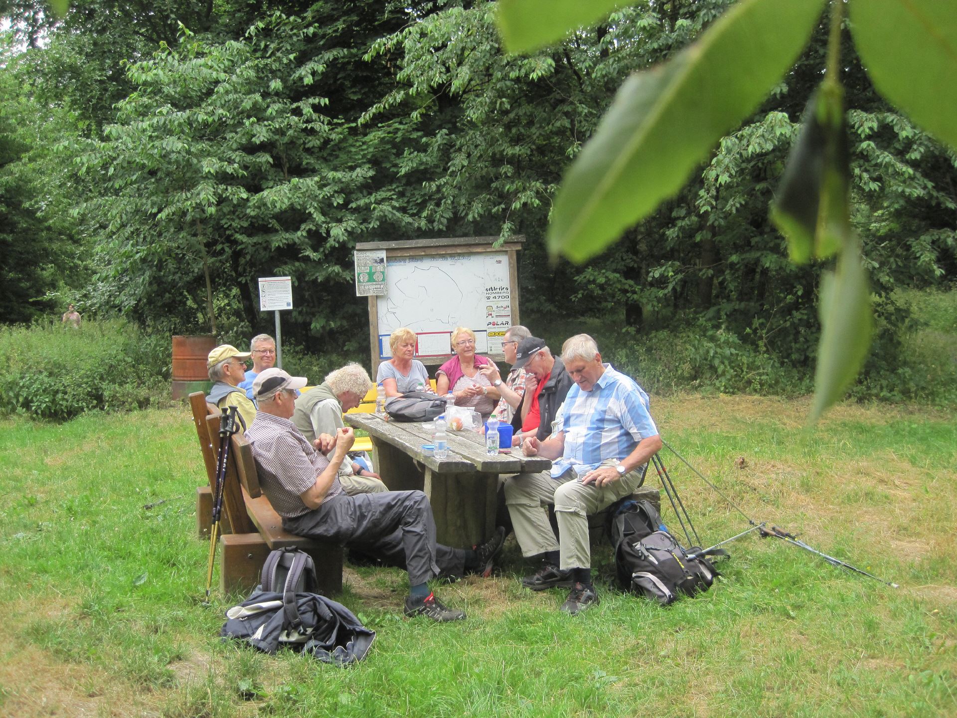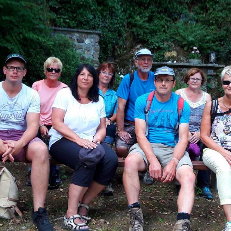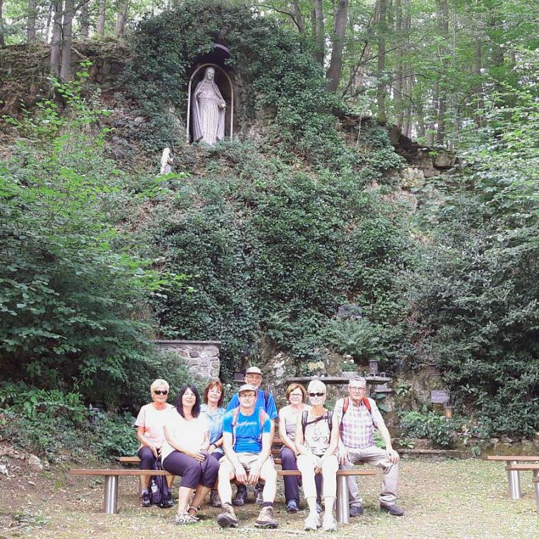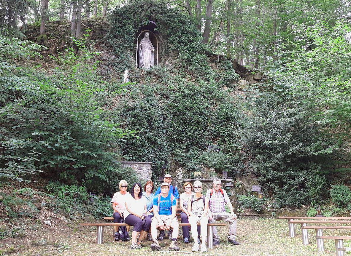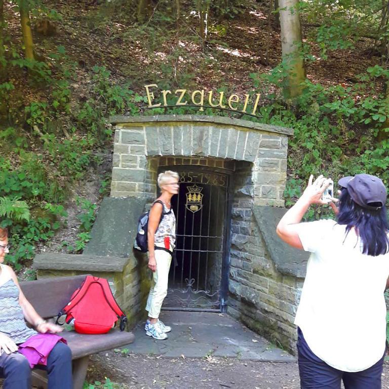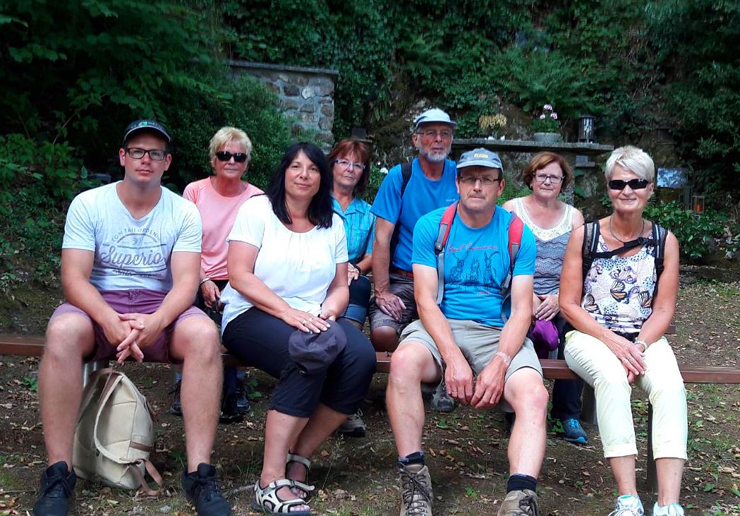 Am 19.Juli 2018 fuhr der SGV - Flammersbach mit dem Linienbus nach Niederschelden, um von dort bis zum Startpunkt-Wanderparkplatz an der Erzquellbrauerei zu gelangen. Los ging es mit einem steilen Anstieg durch den oberen Ortsteil Niederschelderhütte bis zum Waldrand. Nach kurzer Zeit erreichten wir den ehemaligen Rabenstollen, die erste Gelegenheit zur Verschnaufpause mit erfrischendem Quellwasser. Der Forstweg schlängelt sich durch Laubwald bis zu einer imposanten Felswand mit Gebetsraum im Grünen "der Mariengrotte". Weiter geht es durch Haubergs-Gebiet, immer höher in den Giebelwald, über alte Fuhrwerkswege, die früher von den Köhlern und Bergleuten benutzt wurden. Am Erzquellstollen angekommen, bietet sich auf dem Picknickplatz auf ca. halber Strecke eine Rast an. Aus dem Quellwasser wurde bereits 1885 Bier gebraut, was auch heute noch ausschließlich von der Brauerei zum Brauen genutzt wird. Über den Höhen des Giebelwaldes geben Infotafeln Auskünfte von den Spuren der Eisengewinnung. Durch das Schindelbachtal führte die Wandertour mit knapp 13km, 2,45 Std. und 330 Höhenmetern, zurück zum Ausgangspunkt. Dort Pünktlich zur geplanten Besichtigung der Erzquellbrauerei angekommen, erwarteten uns schon andere Gäste. Nach der Führung durch die Brauerei wurde das von uns langersehnte und verdiente Bier genossen. Am Abend kamen wir mit dem gecharterten Bus der VWS wieder gut in Flammersbach an. Ein anstrengender und gelungener Tag mit gutem Wetter war zu Ende.