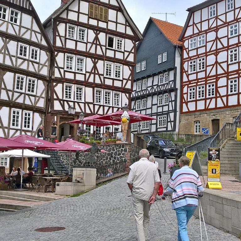 Am 1. Tag besuchten wir die Stadt Homberg-Efze und unternahmen eine Stadtbesichtigung der besonderen Art. Wir bestiegen den Kirchturm der alten Stadtkirche ( immerhin mehr als 220 Stufen) und hatten von oben einen herrlichen Blick auf die Stadt, eine der schönsten Fachwerkstädte Nordhessens, und das Umland.