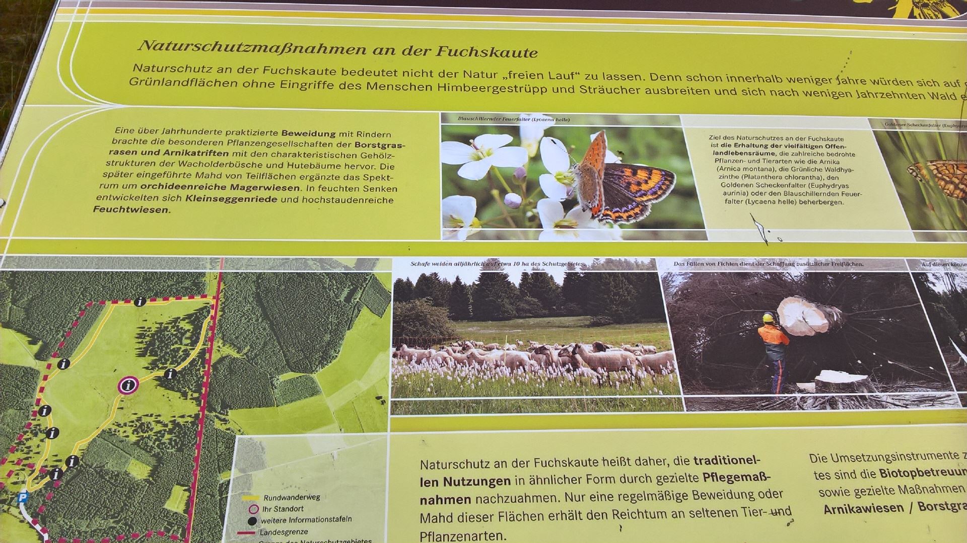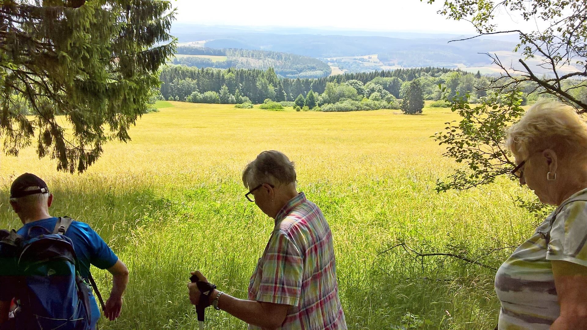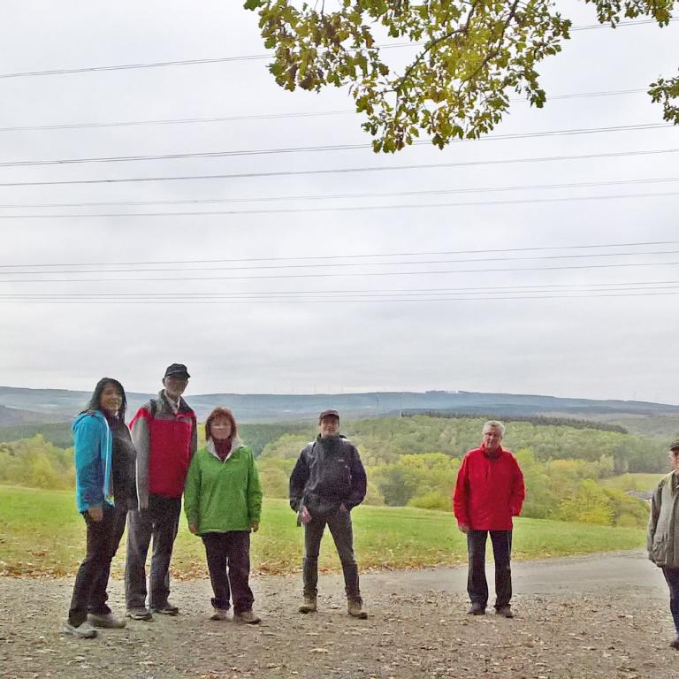 Am 5. Tag fuhren wir nach Raboltshausen und umrundeten den Eisenberg. Dieser Berg bietet wunder schöne Fernblicke in die gesamte Umgebung. Teile der Rhön und auch die näheren Berge, z.B. das Hessische Kegelspiel, eine Anordnung von vielen Berg-Kegeln waren zum Greifen nah. Dazu hatten wir einen Wanderführer aus der näheren Umgebung, der uns die Einzelheiten sehr gut erklärte und diesen Rundweg selbst mitgestaltet und markiert hatte.