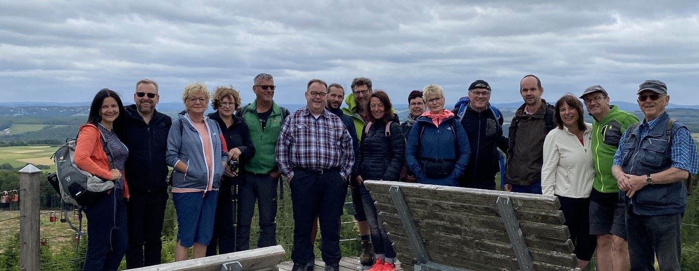 Mit 18 Personen sind wir gemeinsam mit der SGV-Abteilung Deuz den Richard-Müller weg – gesamt knapp 8 km – gewandert! Richard Müller hat viel für Deuz getan, war in allen Vereinen : Sport, Feuerwehr, SGV und hat die Skigilde gegründet! Ihm ist dieser Weg gewidmet!
