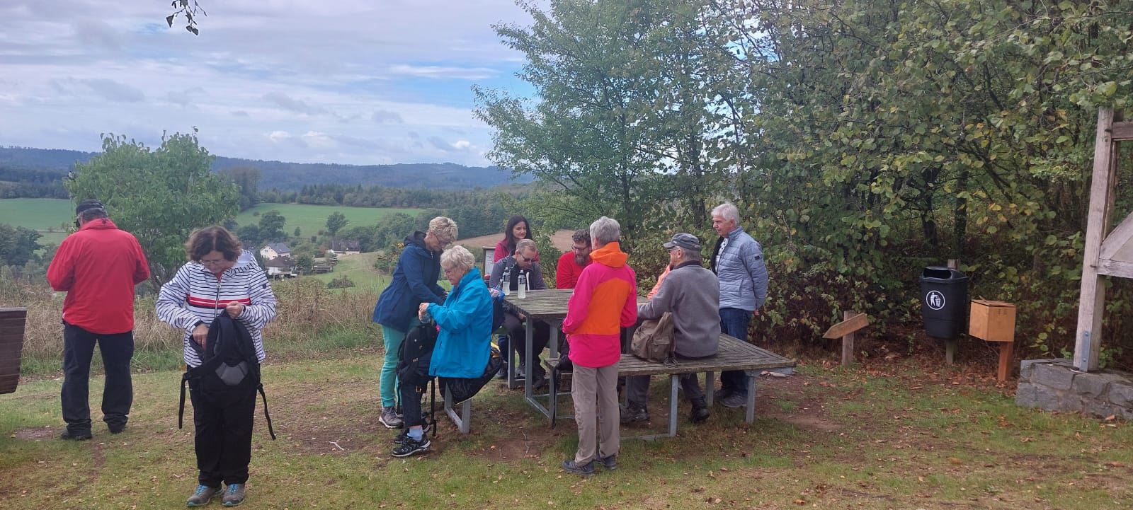Der Weg führt anfänglich über den Elisabethenweg Richtung Rudersdorf-Tannenhof und dann auf dem Zubringer zum Rothaarsteig Richtung Tiefenrother Höhe. Dort angekommen, stärkten sich alle mit einer Brotzeit aus dem Rucksack.