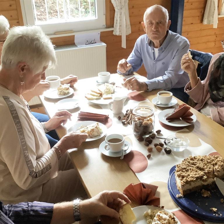 Im Wanderheim warteten leckere Waffeln und Kaffee auf uns.