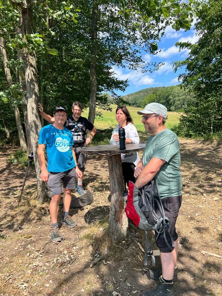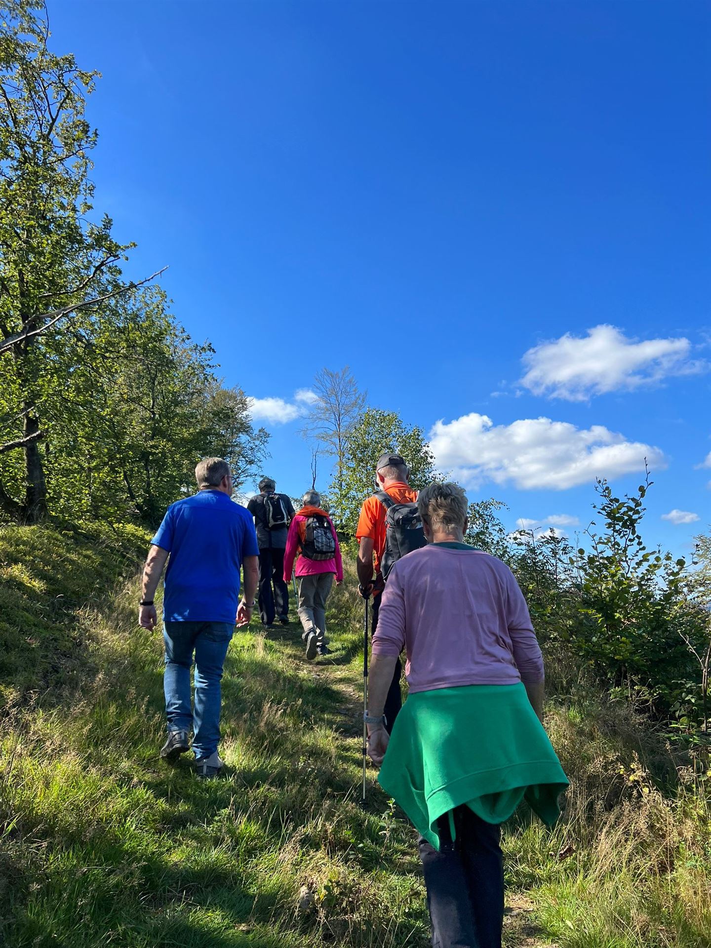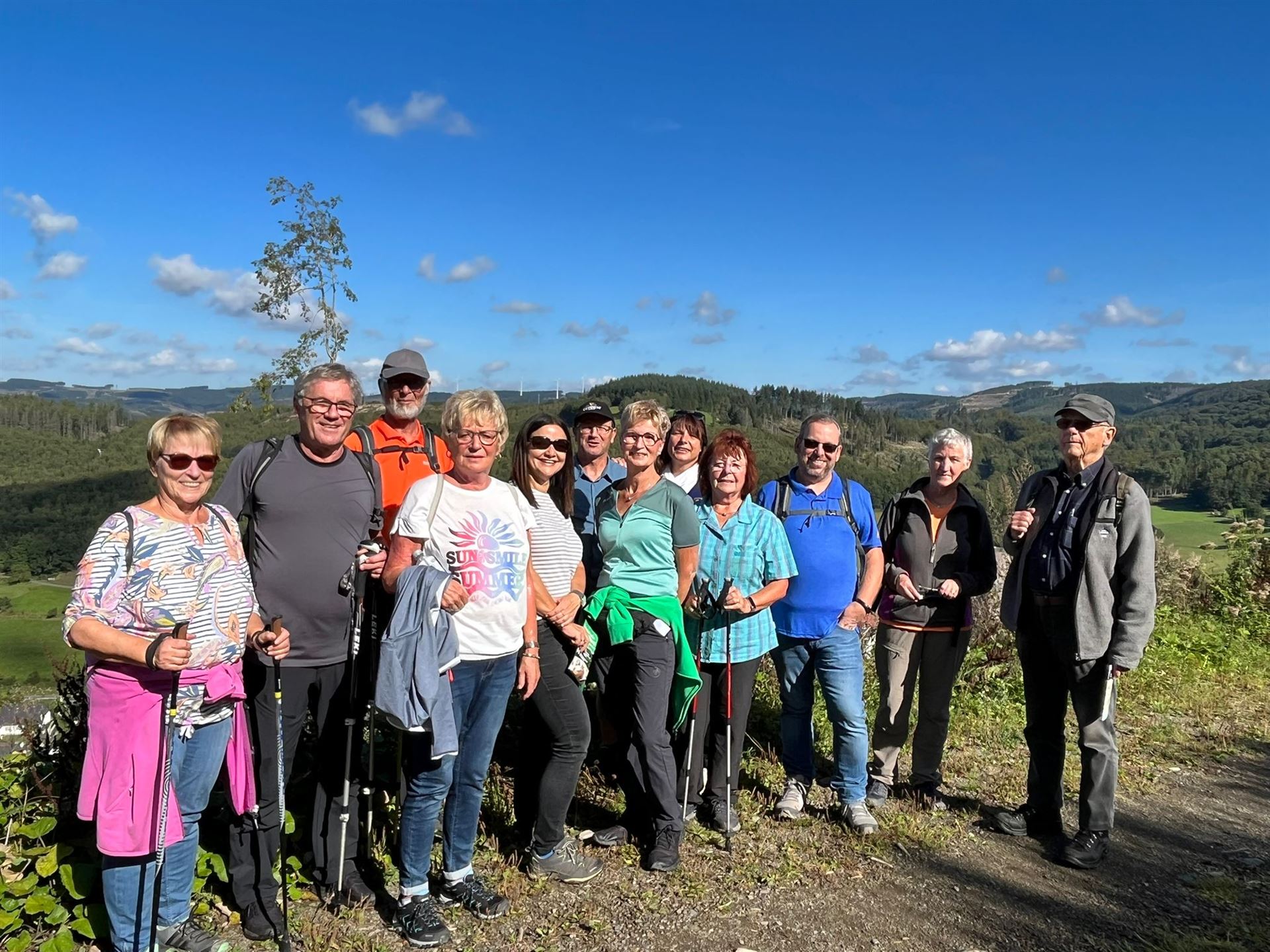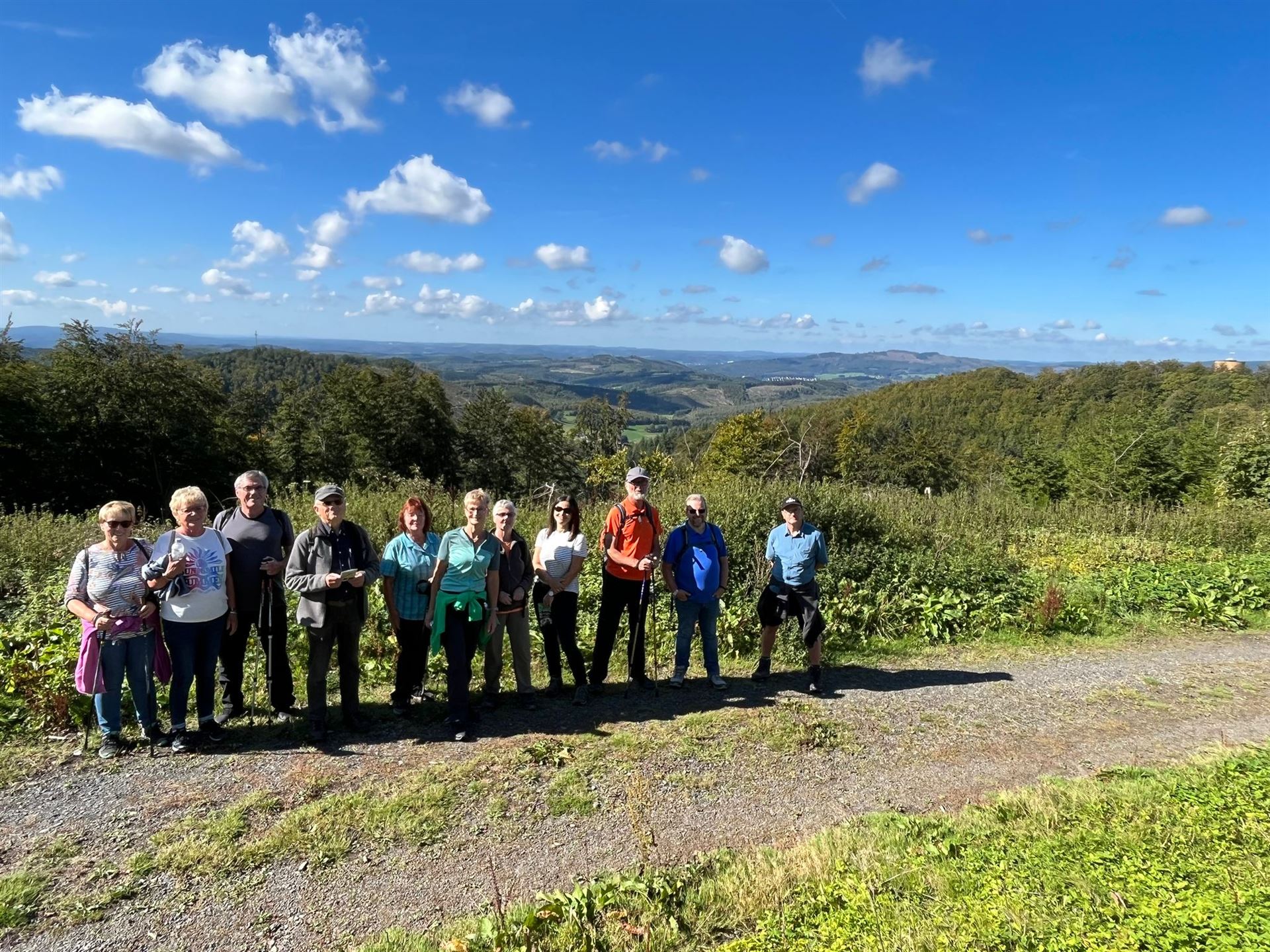 Am Sonntag, den 20. August 2023 trafen sich am Wanderheim bei recht sommerlichen Temperaturen 10 SGVer zur Wanderung nach Aue Wingeshausen. Die Wanderung begann am Parkplatz der Wisent Wildnis. In Anbetracht des warmen Wetters wurde nicht der komplette Wisent-Pfad erwandert, sondern die Wanderung erfolgte in Richtung Jagdhaus bis zur Millionenbank und wieder zurück zur Wisent Hütte von ca. 8 km. Dabei ging es überwiegend durch den angenehm schattigen Wald. Nach einer Pause und kleinen Stärkung an der Wisent Hütte wurde der Heimweg angetreten.