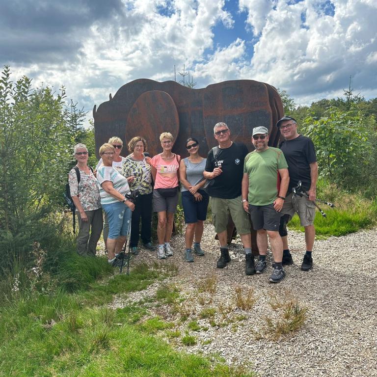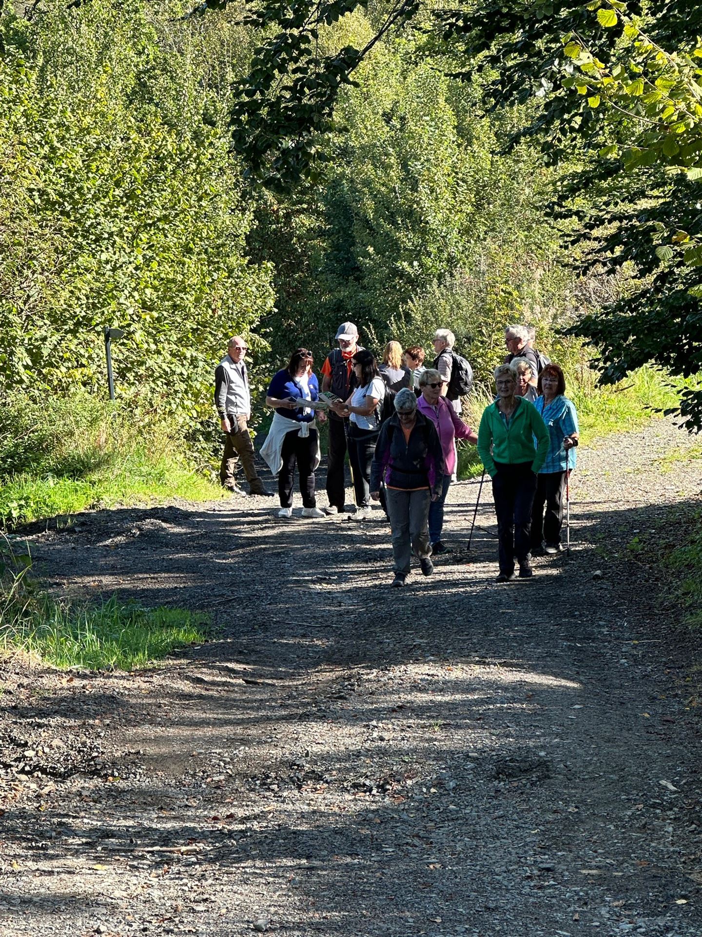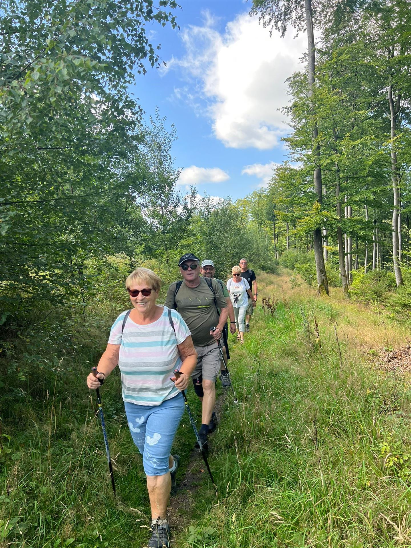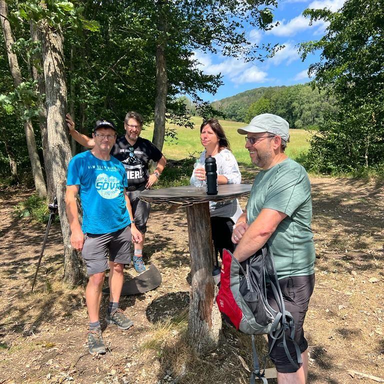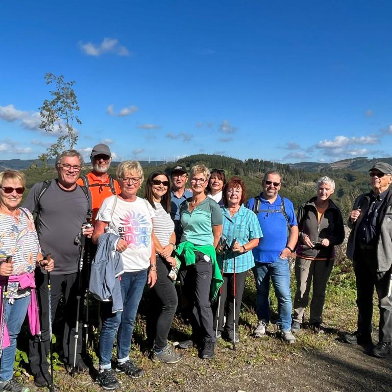 Am Sonntag, den 20. August 2023 trafen sich am Wanderheim bei recht sommerlichen Temperaturen 10 SGVer zur Wanderung nach Aue Wingeshausen. Die Wanderung begann am Parkplatz der Wisent Wildnis. In Anbetracht des warmen Wetters wurde nicht der komplette Wisent-Pfad erwandert, sondern die Wanderung erfolgte in Richtung Jagdhaus bis zur Millionenbank und wieder zurück zur Wisent Hütte von ca. 8 km. Dabei ging es überwiegend durch den angenehm schattigen Wald. Nach einer Pause und kleinen Stärkung an der Wisent Hütte wurde der Heimweg angetreten.