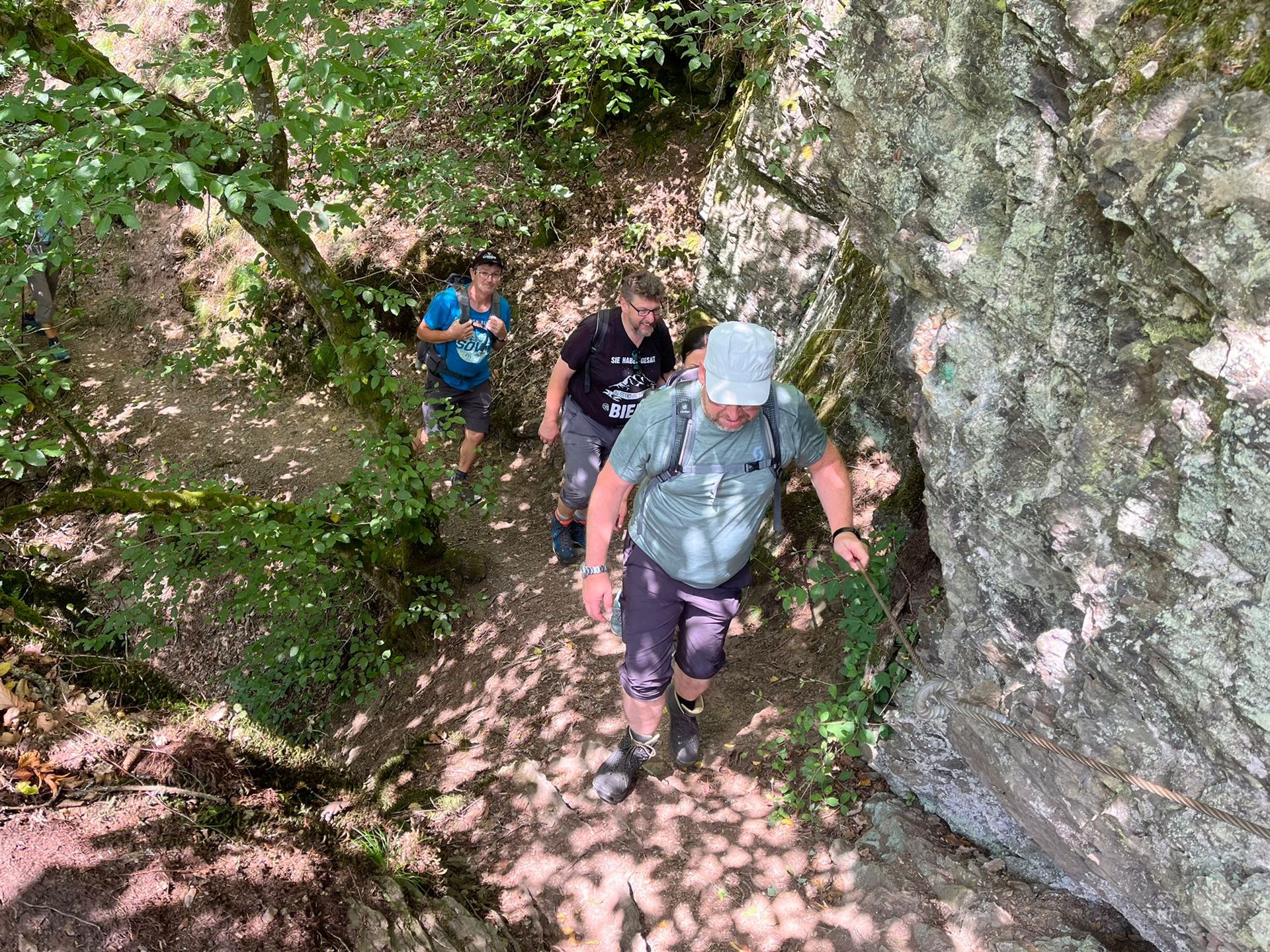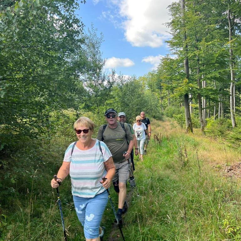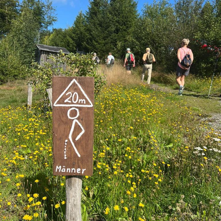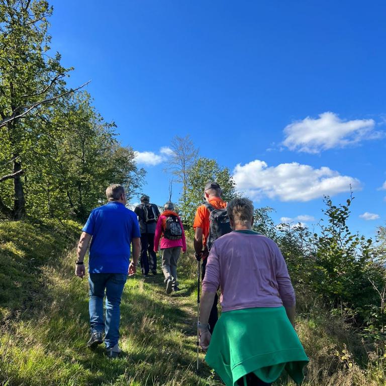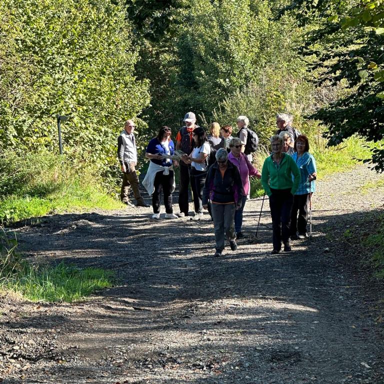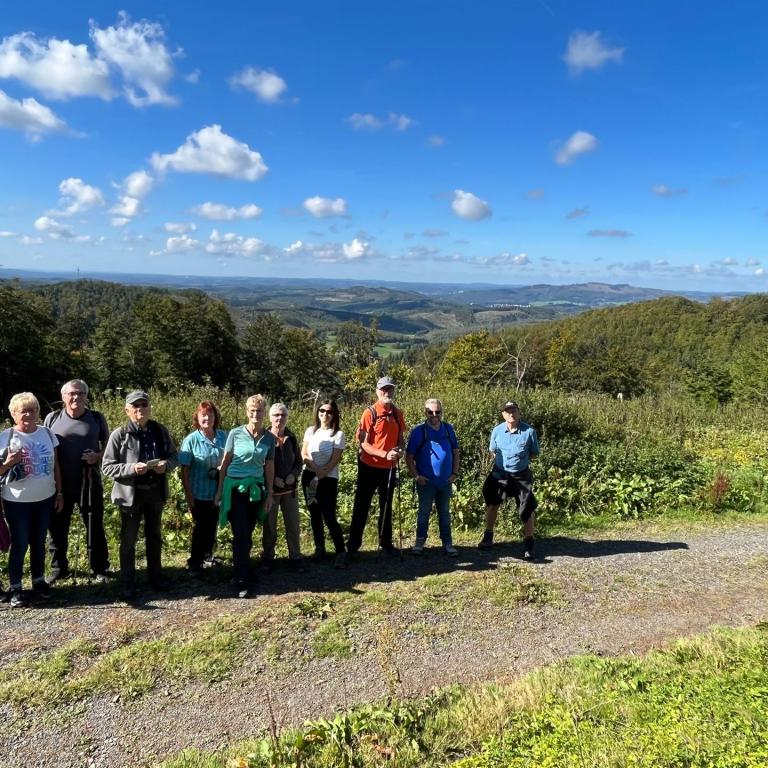 Am Sonntag, den 20. August 2023 trafen sich am Wanderheim bei recht sommerlichen Temperaturen 10 SGVer zur Wanderung nach Aue Wingeshausen. Die Wanderung begann am Parkplatz der Wisent Wildnis. In Anbetracht des warmen Wetters wurde nicht der komplette Wisent-Pfad erwandert, sondern die Wanderung erfolgte in Richtung Jagdhaus bis zur Millionenbank und wieder zurück zur Wisent Hütte von ca. 8 km. Dabei ging es überwiegend durch den angenehm schattigen Wald. Nach einer Pause und kleinen Stärkung an der Wisent Hütte wurde der Heimweg angetreten.