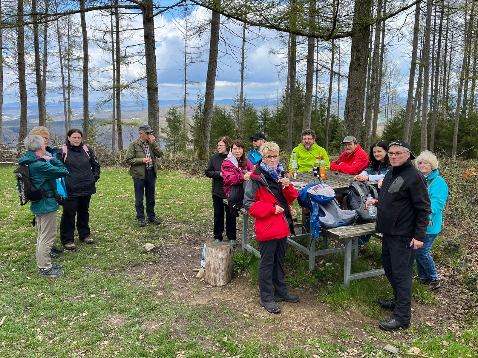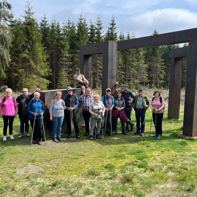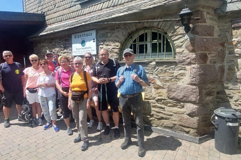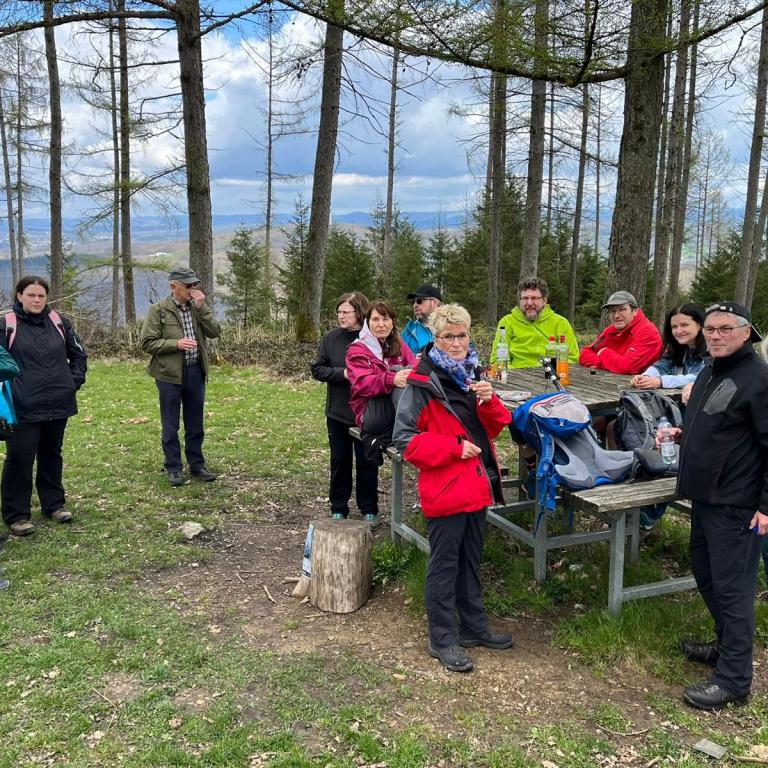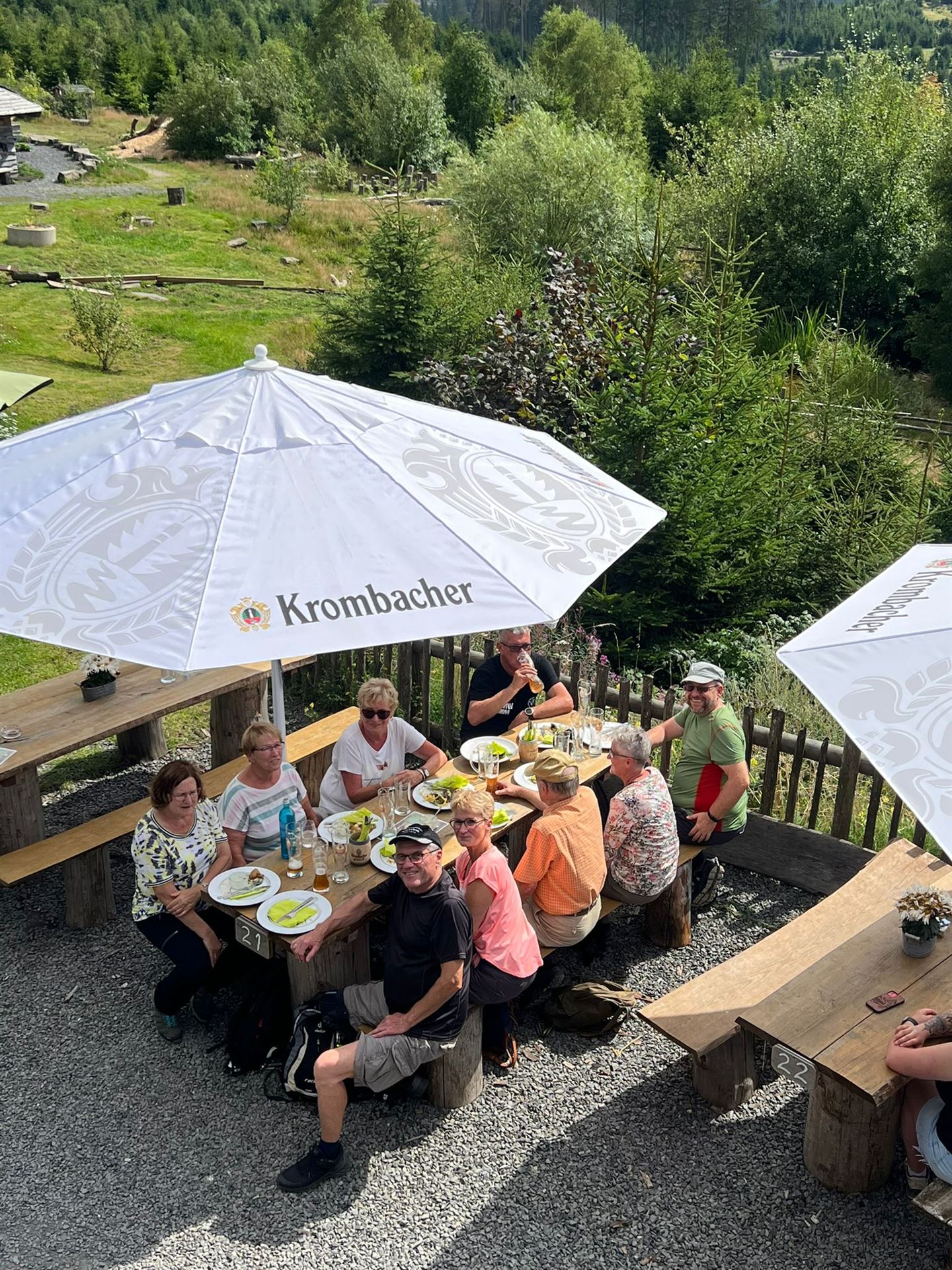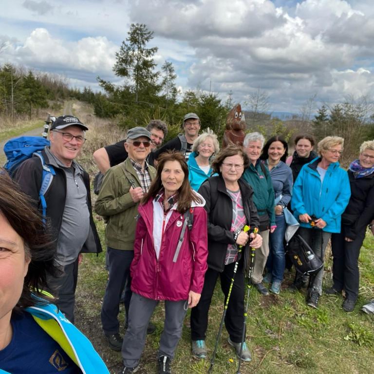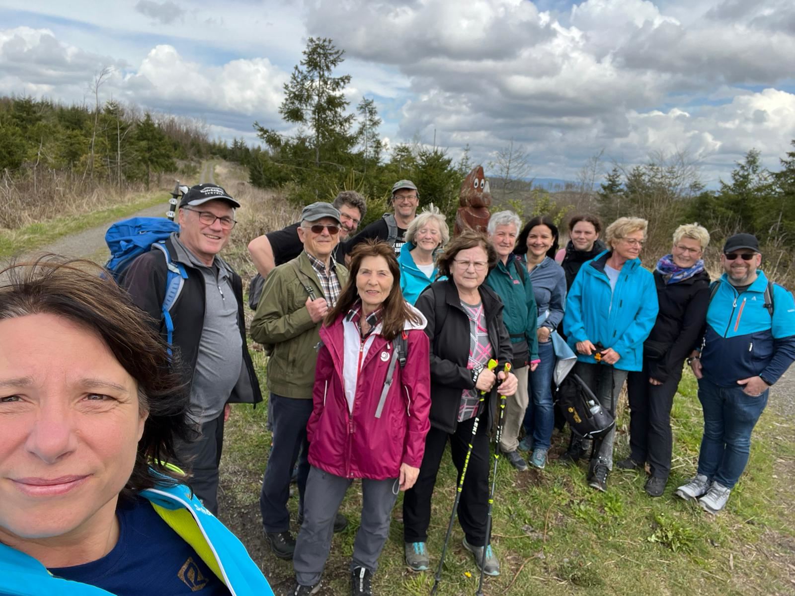Am Sonntag fuhren 15 Personen von Flammersbach zum Wanderparkplatz Kühhude bei Berleburg. Von dort führte ein schöner Wanderweg, ca. 3km und wenig Steigung, vorbei an einigen Skulpturen, zur Almhütte Schanze. Hier wurden wir sehr freundlich begrüßt und konnten uns aus der rustikalen Speisekarte, leckere Gerichte bestellen und genießen. Nach ca. zwei Stunden ging es mit einem kleines Schlenker über den Kyrillpfad zurück zum Wanderparkplatz.