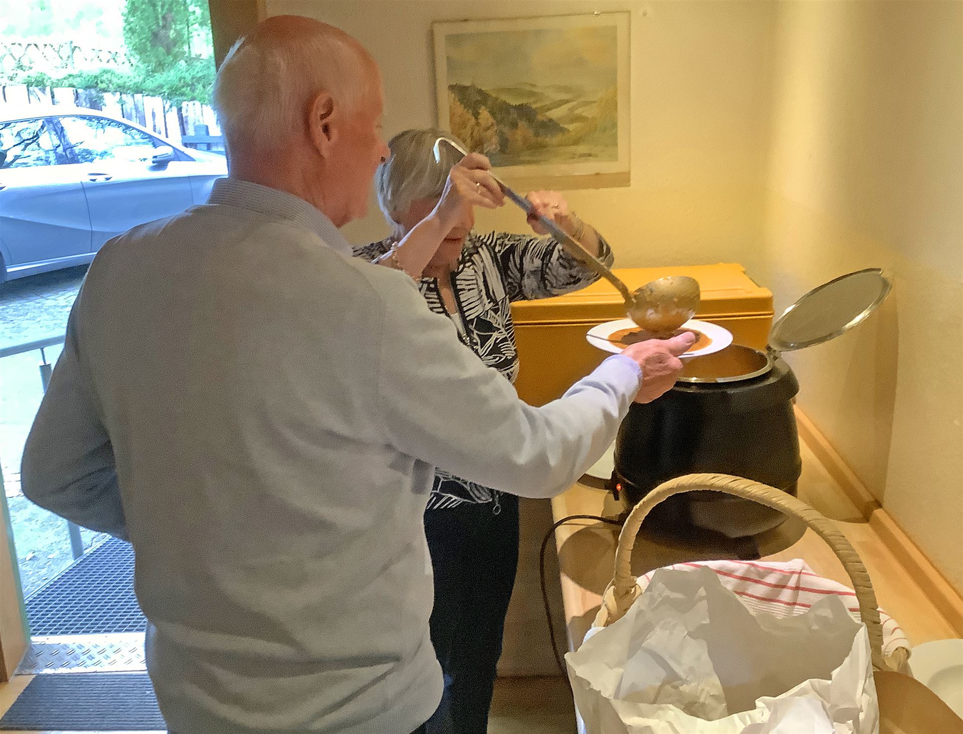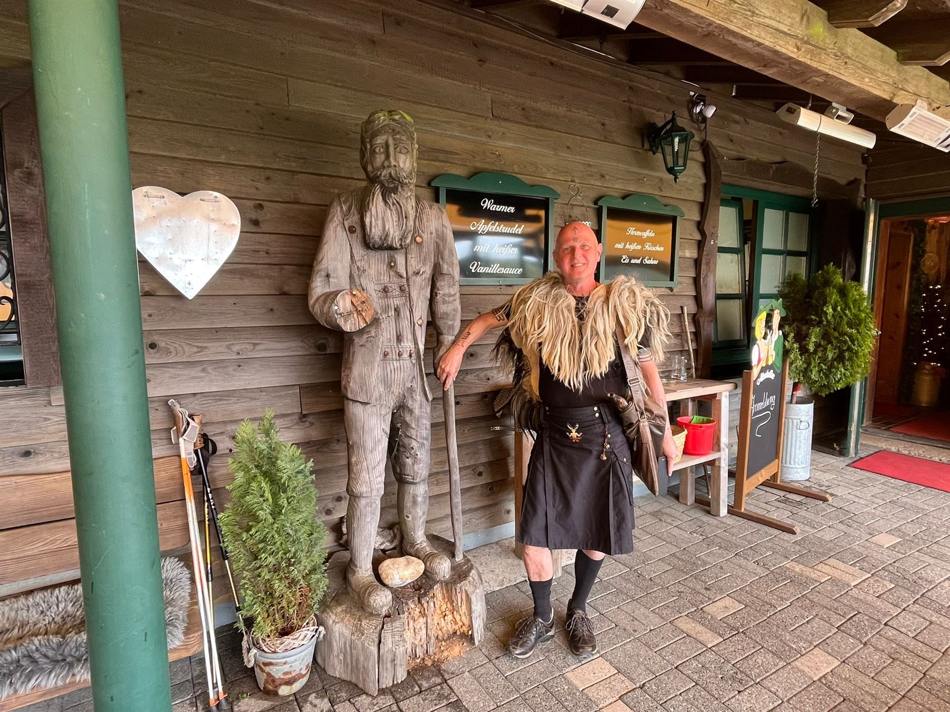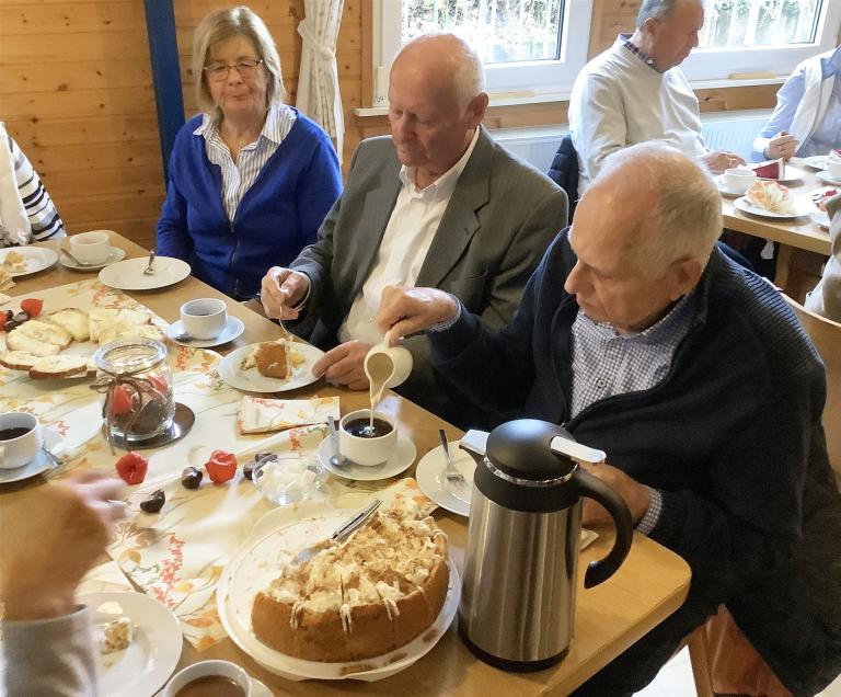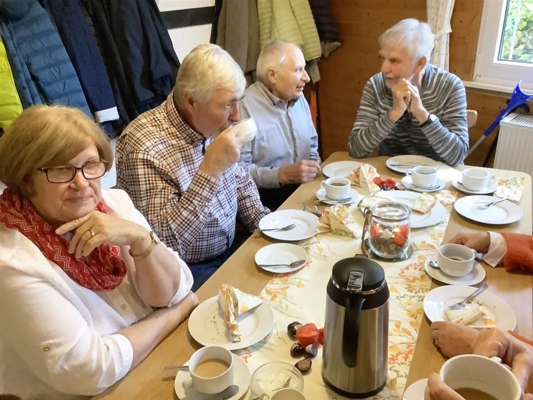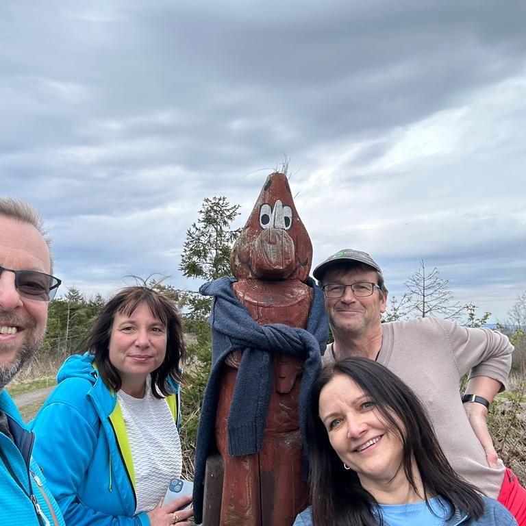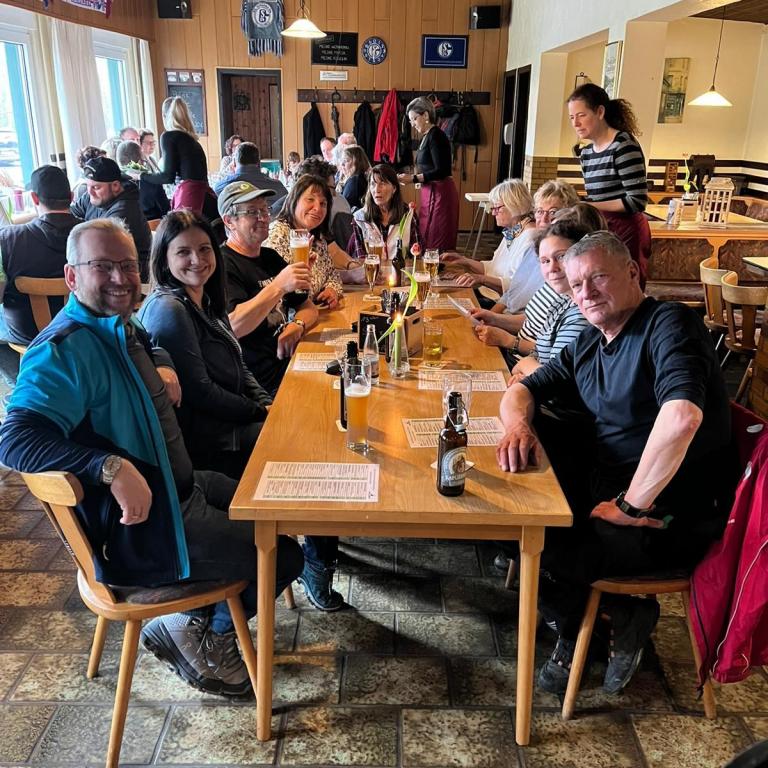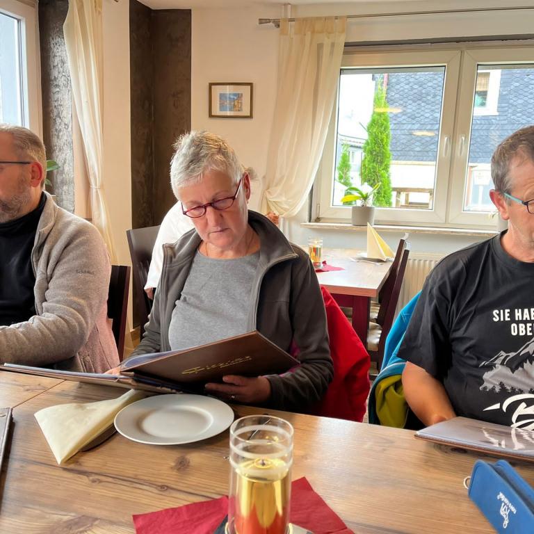 Am Sonntag fuhren 15 Personen von Flammersbach zum Wanderparkplatz Kühhude bei Berleburg. Von dort führte ein schöner Wanderweg, ca. 3km und wenig Steigung, vorbei an einigen Skulpturen, zur Almhütte Schanze. Hier wurden wir sehr freundlich begrüßt und konnten uns aus der rustikalen Speisekarte, leckere Gerichte bestellen und genießen. Nach ca. zwei Stunden ging es mit einem kleines Schlenker über den Kyrillpfad zurück zum Wanderparkplatz.