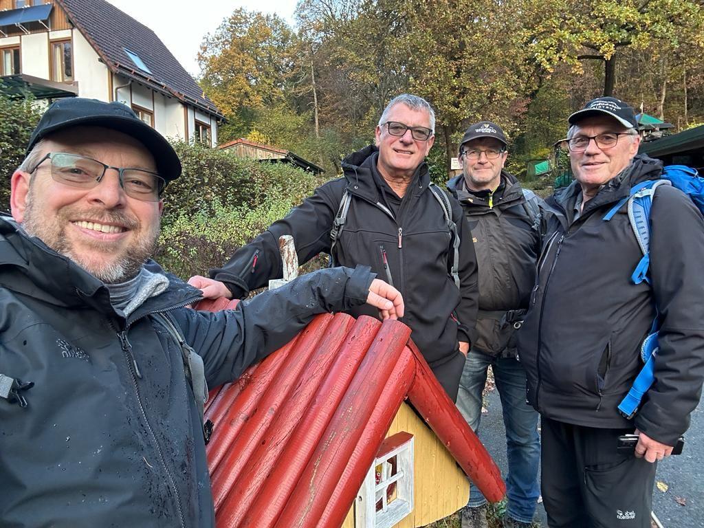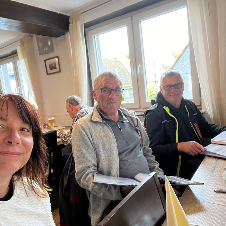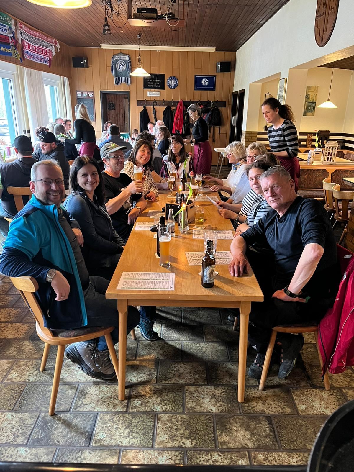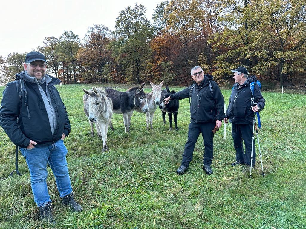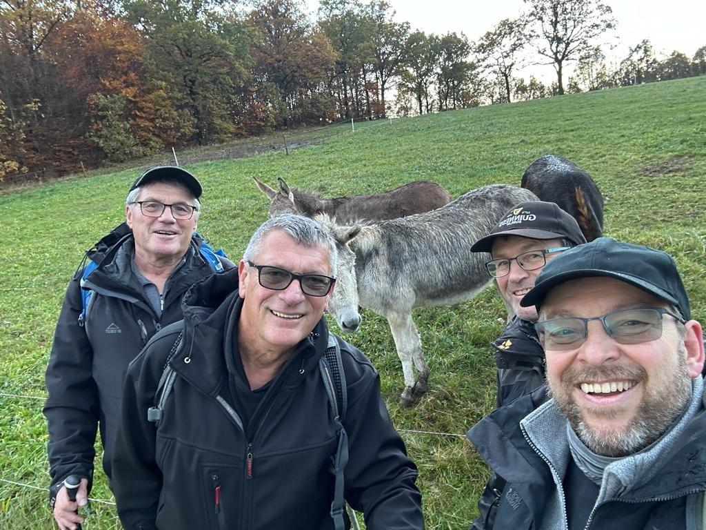 Am Samstag den 11.11.23 trafen sich um 10.00 Uhr am Wanderheim 10 SGVer zur Ganztagswanderung in die Dautenbach und zurück über Kaan und Dielfen. Nach 3 Stunden wurde das erste Ziel, die Taverne Dautenbach, bei gutem Wanderwetter erreicht. Nach einer Stärkung mit griechischen Spezialisten und einigen Kaltgetränken ging es weiter auf einem Schönen Wanderweg an Bürbach vorbei nach Kaan. Oberhalb des Käner Friedhofs konnten auch noch Esel auf der Weide beobachtet werden. Unser 2. Ziel war der Bahnhof Siegen-Ost. Nach einer kleinen Stärkung und 1. Kegelrunde führte uns der weitere Weg nach Dielfen in die Linde. Nach einem kleinen Absacker ging es zum Ende der Wanderung nach Flammersbach. Mit ungefähr 36000 Schritten und ca 28 km Wanderstrecke wurde der Wanderrekord für dieses Jahr aufgestellt.