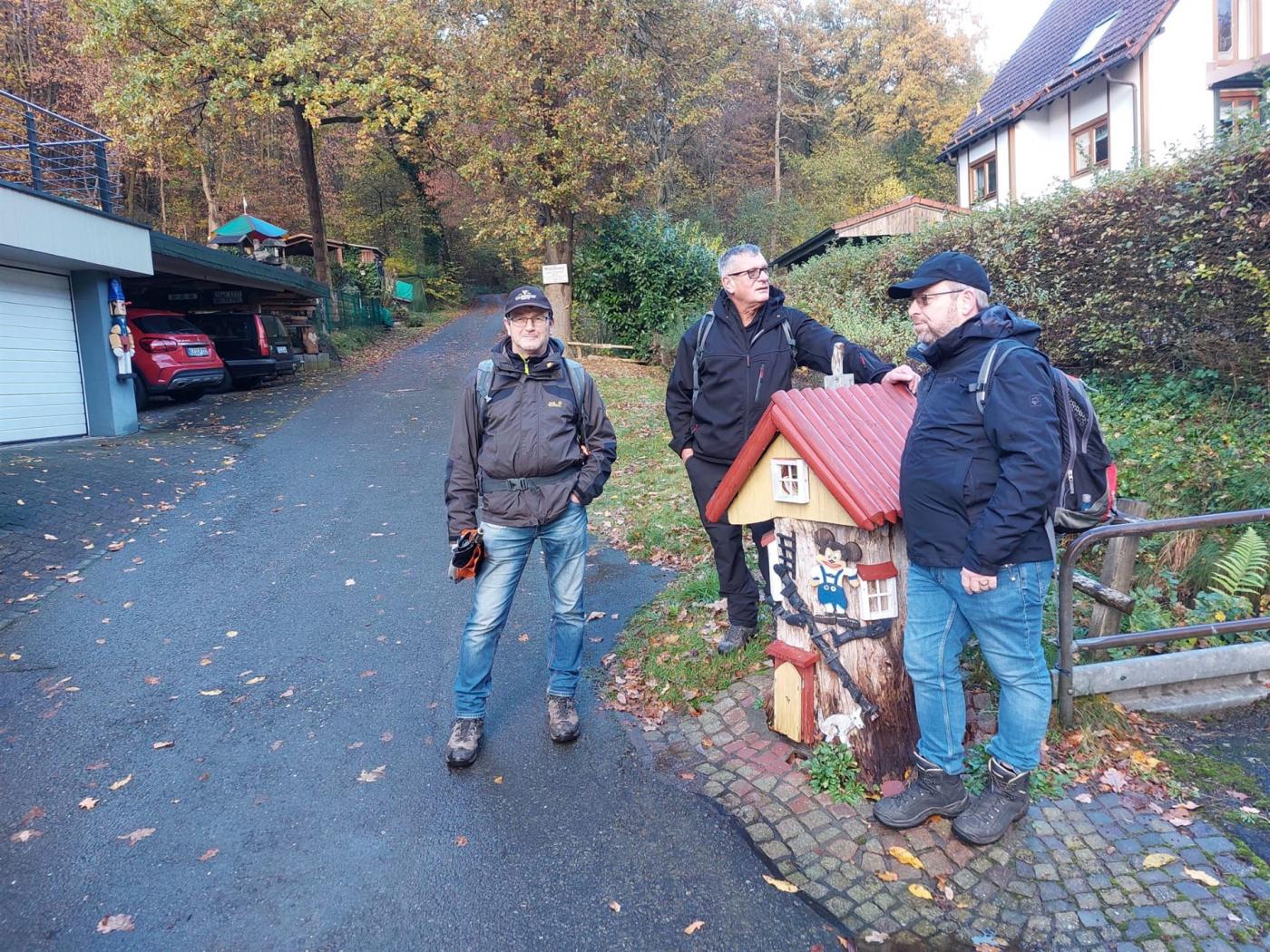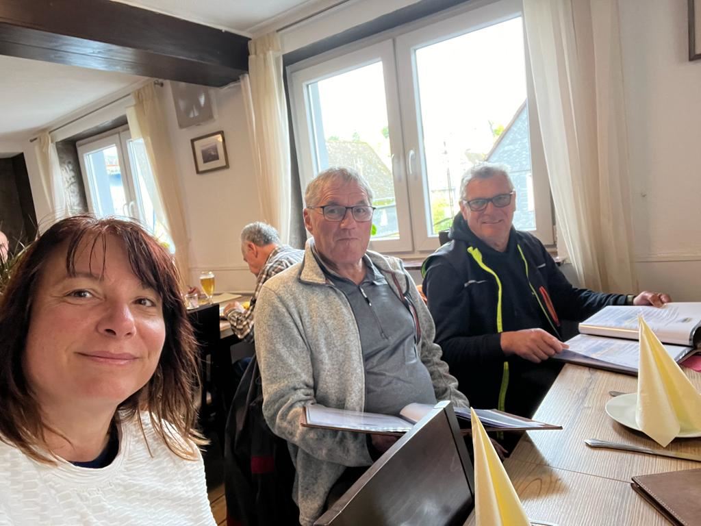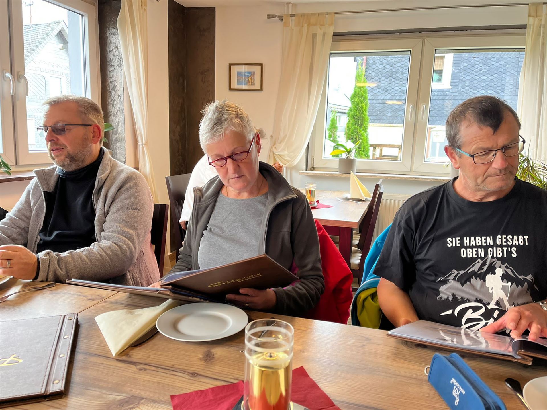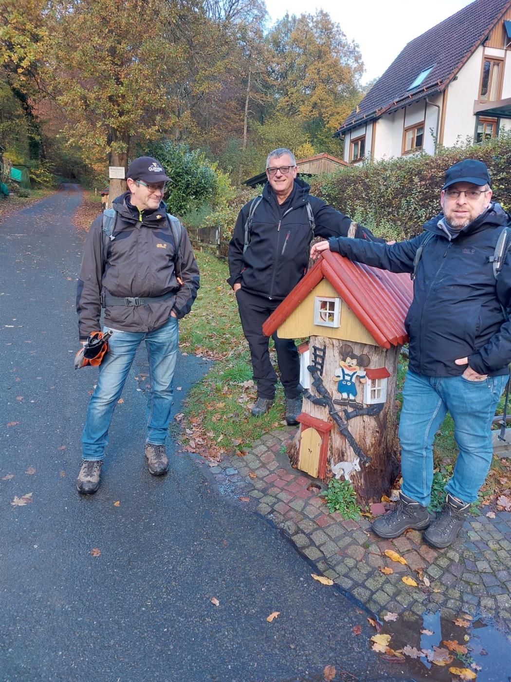 Am Samstag den 11.11.23 trafen sich um 10.00 Uhr am Wanderheim 10 SGVer zur Ganztagswanderung in die Dautenbach und zurück über Kaan und Dielfen. Nach 3 Stunden wurde das erste Ziel, die Taverne Dautenbach, bei gutem Wanderwetter erreicht. Nach einer Stärkung mit griechischen Spezialisten und einigen Kaltgetränken ging es weiter auf einem Schönen Wanderweg an Bürbach vorbei nach Kaan. Oberhalb des Käner Friedhofs konnten auch noch Esel auf der Weide beobachtet werden. Unser 2. Ziel war der Bahnhof Siegen-Ost. Nach einer kleinen Stärkung und 1. Kegelrunde führte uns der weitere Weg nach Dielfen in die Linde. Nach einem kleinen Absacker ging es zum Ende der Wanderung nach Flammersbach. Mit ungefähr 36000 Schritten und ca 28 km Wanderstrecke wurde der Wanderrekord für dieses Jahr aufgestellt.