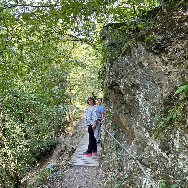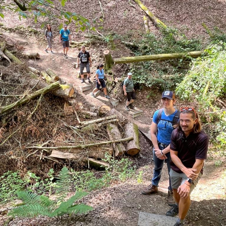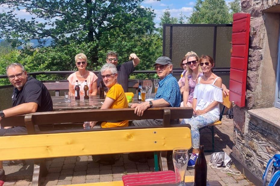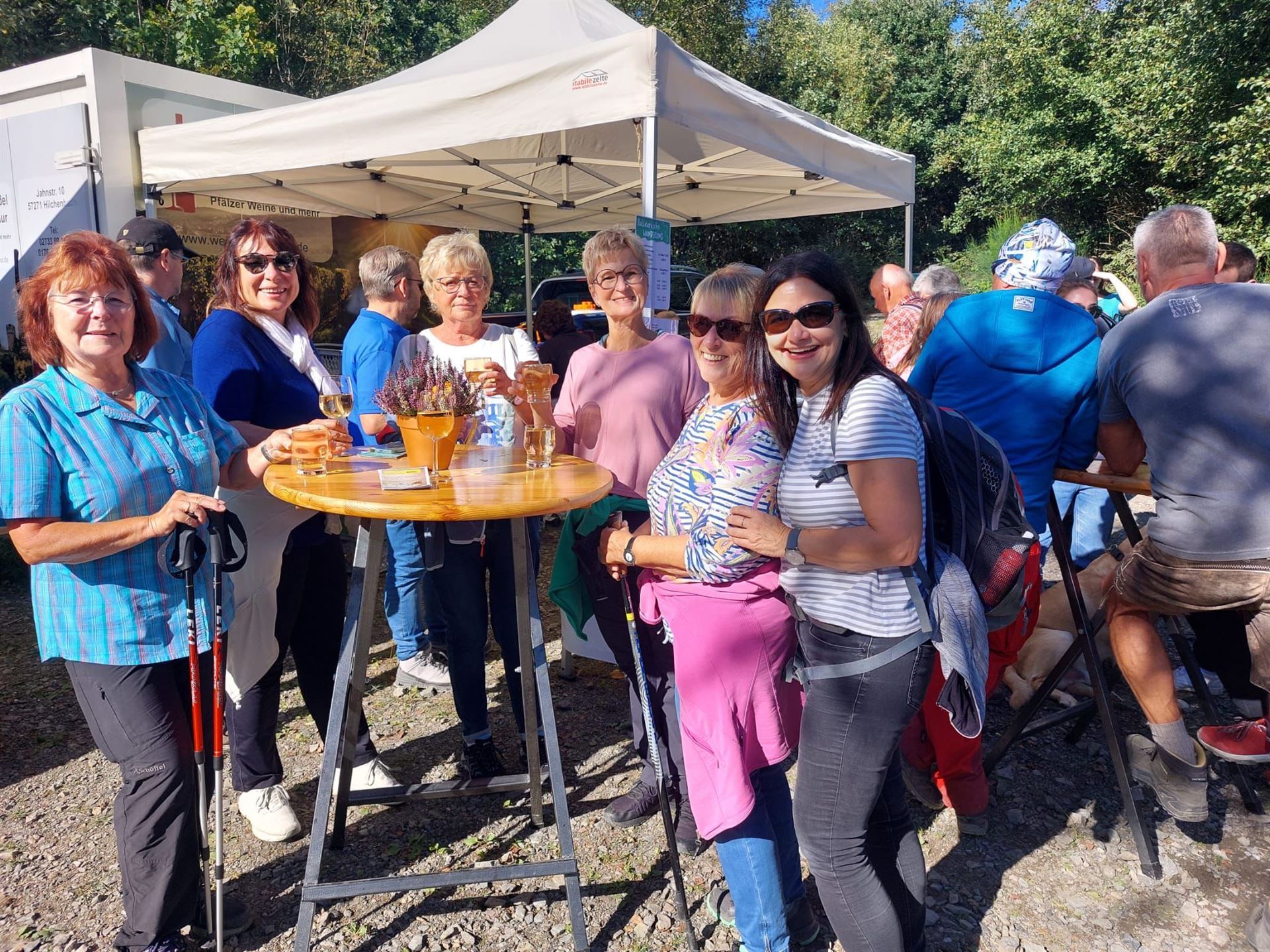 8 mutige Wanderer haben den Pfad WELTENDE bezwungen! Ca. 8,6 km ging es bergauf und bergab. Anschließend gab es zur Belohnung Flammkuchen oder etwas Süßes in der Alten Mühle von Stein-Wingert. Das Wetter war uns - wie so oft - wohl gesonnen.