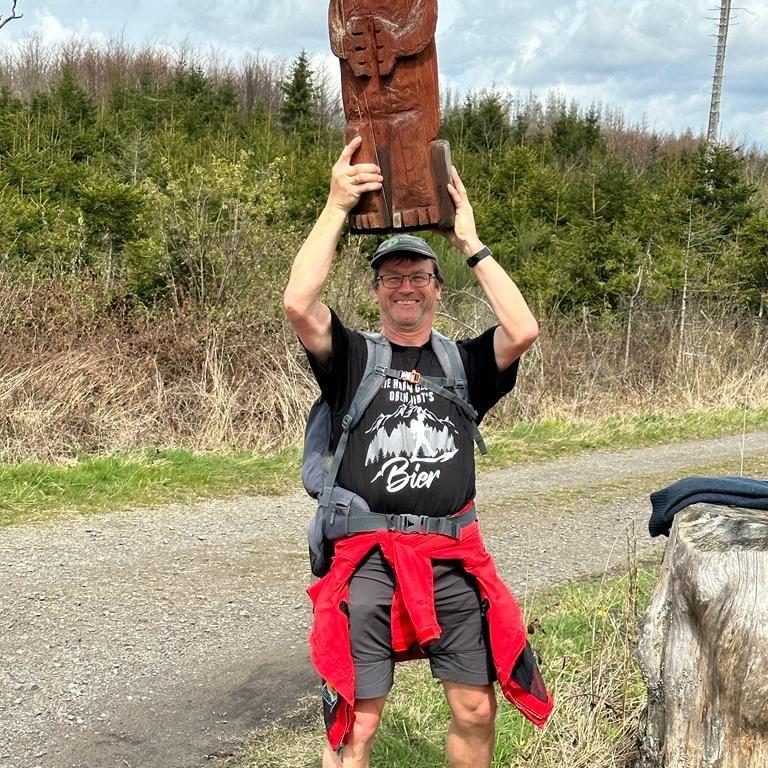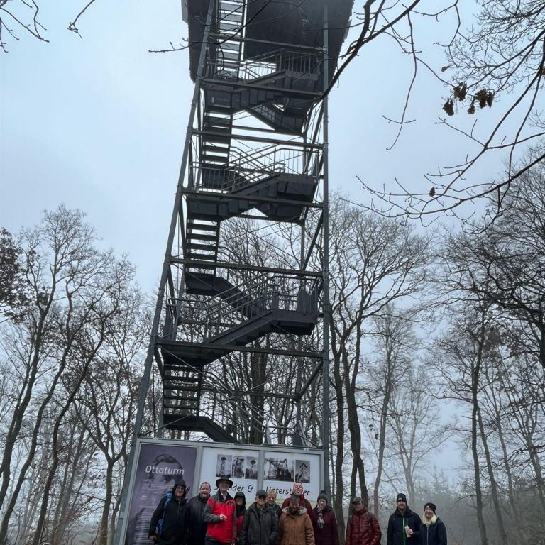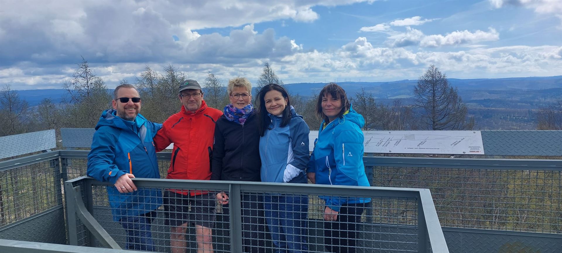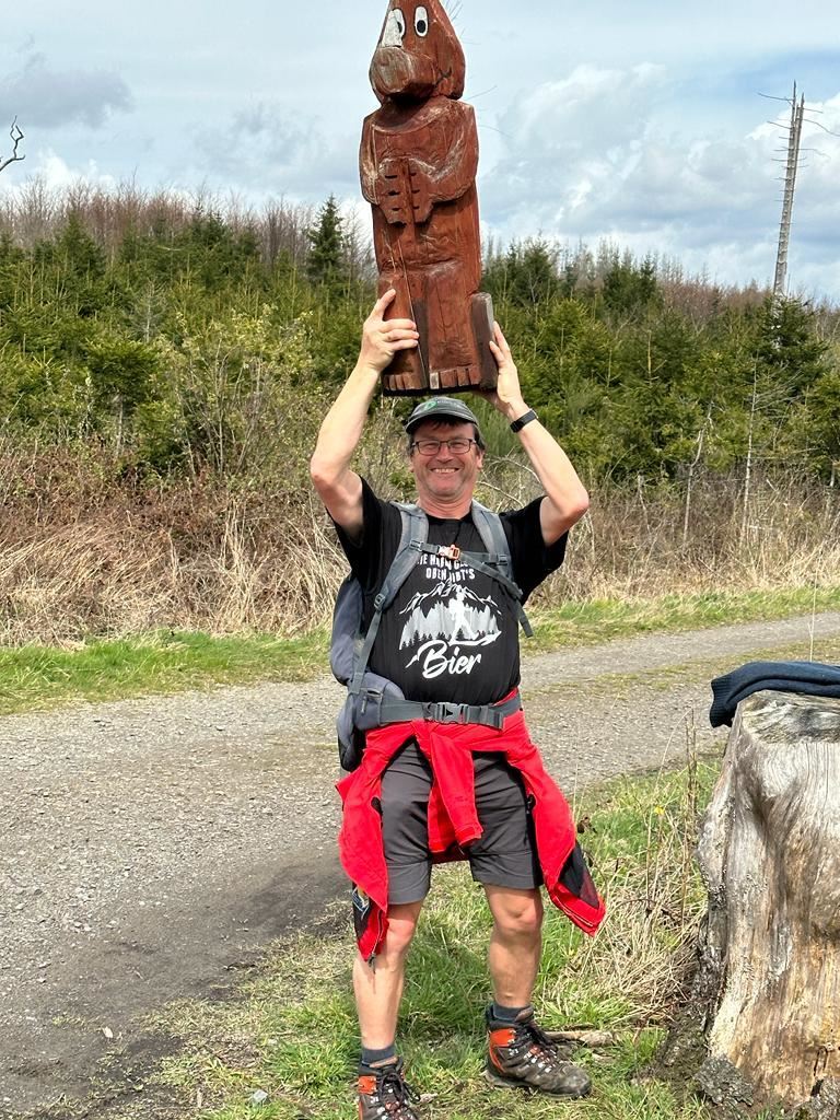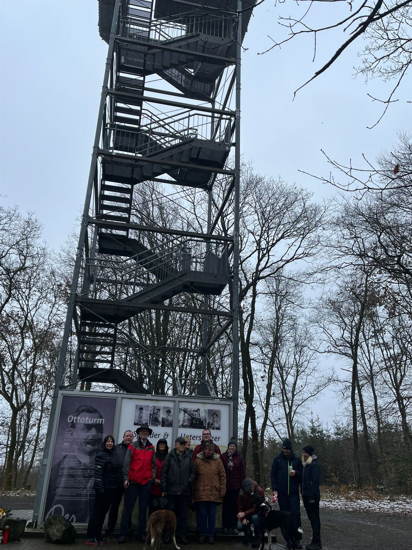 14 Wanderer und 1 Biker wurden sonntags Am Steimel kulinarisch verwöhnt und das noch zu passablen Preisen! Vorher wurde der Pfannenbergturm umwandert, teilweise auch bestiegen, anschließend ging es weiter über den Römel zur Kreuzung der ehemaligen 130 Jahre alten Kreuzeiche, die umgefahren wurde und anschließend dem Sturm in 2019 zum Opfer fiel.