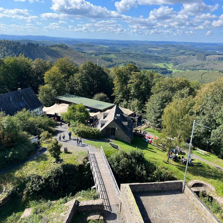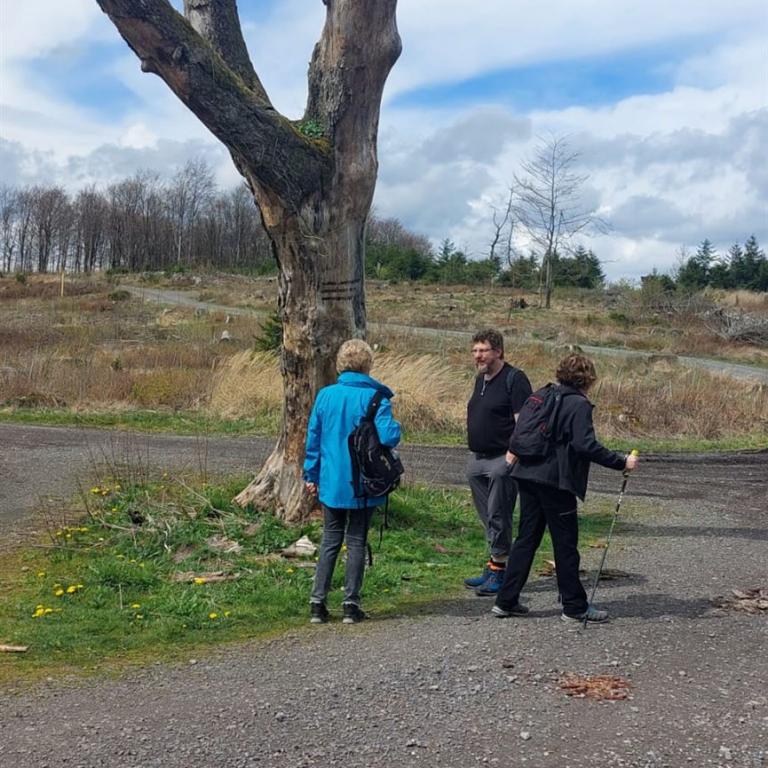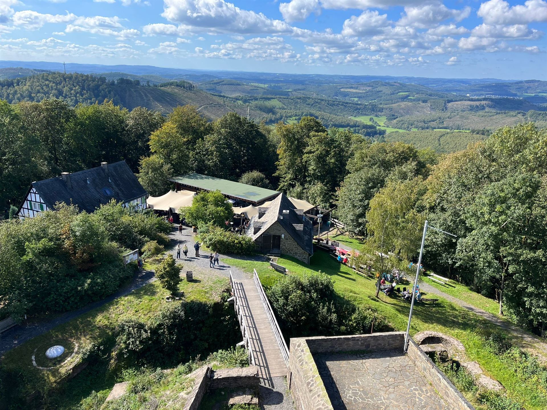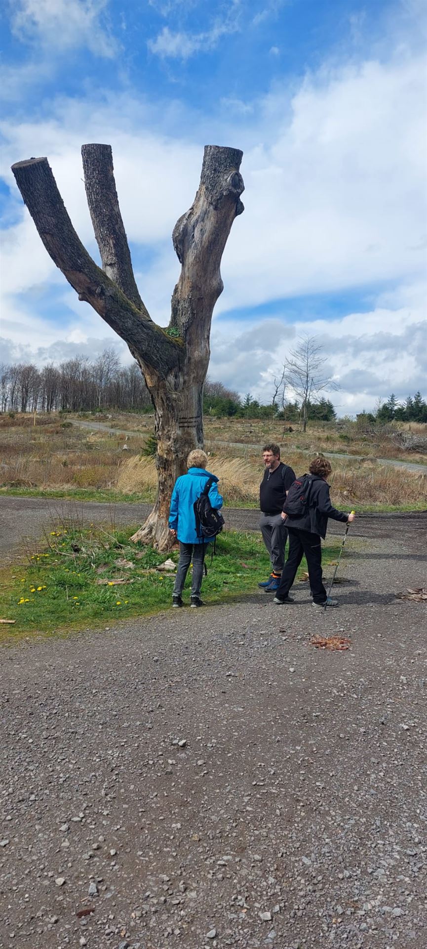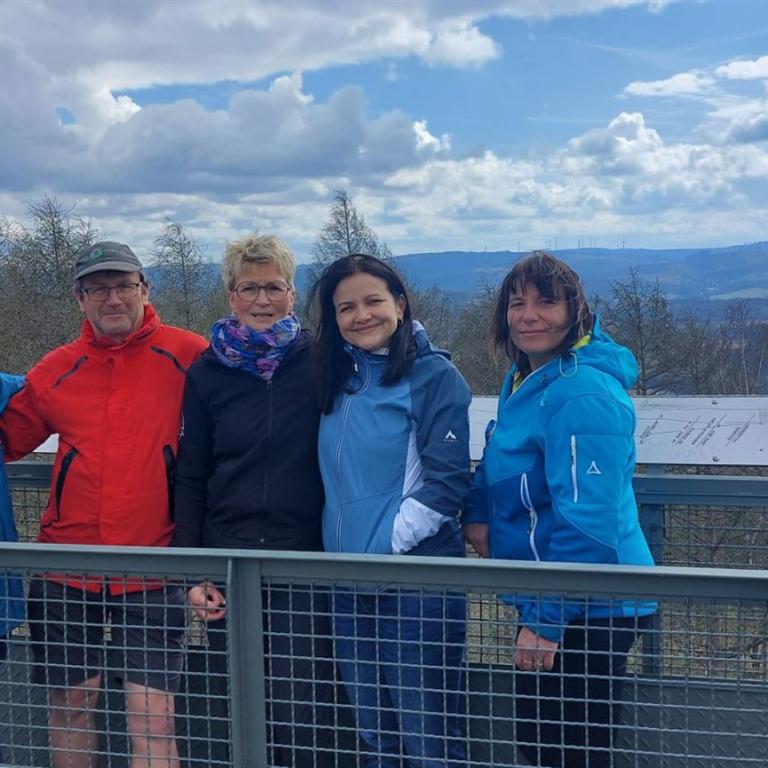 14 Wanderer und 1 Biker wurden sonntags Am Steimel kulinarisch verwöhnt und das noch zu passablen Preisen! Vorher wurde der Pfannenbergturm umwandert, teilweise auch bestiegen, anschließend ging es weiter über den Römel zur Kreuzung der ehemaligen 130 Jahre alten Kreuzeiche, die umgefahren wurde und anschließend dem Sturm in 2019 zum Opfer fiel.