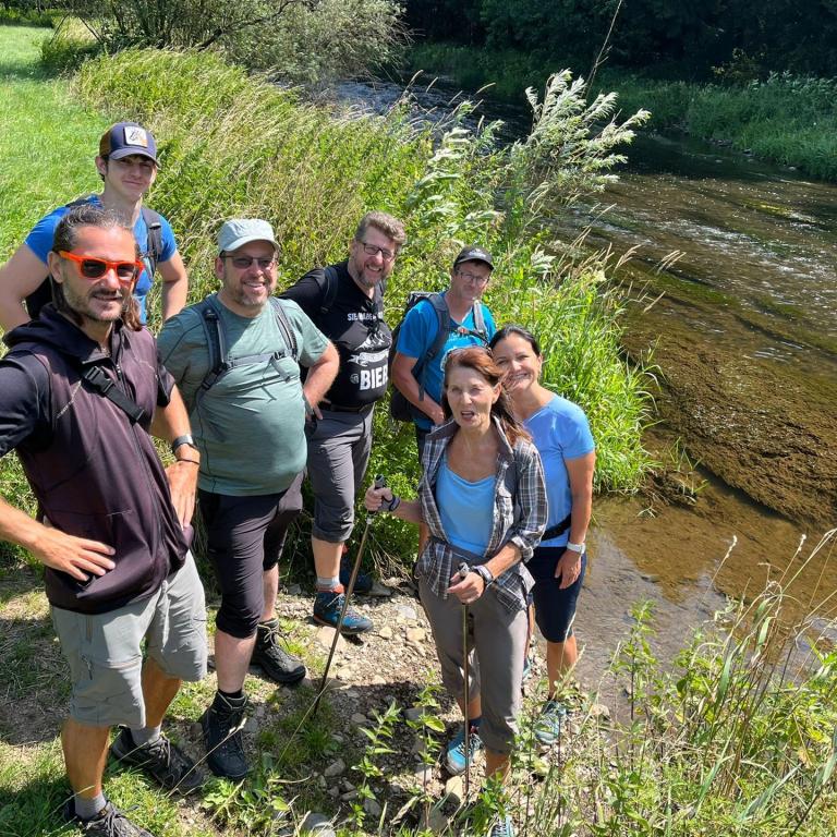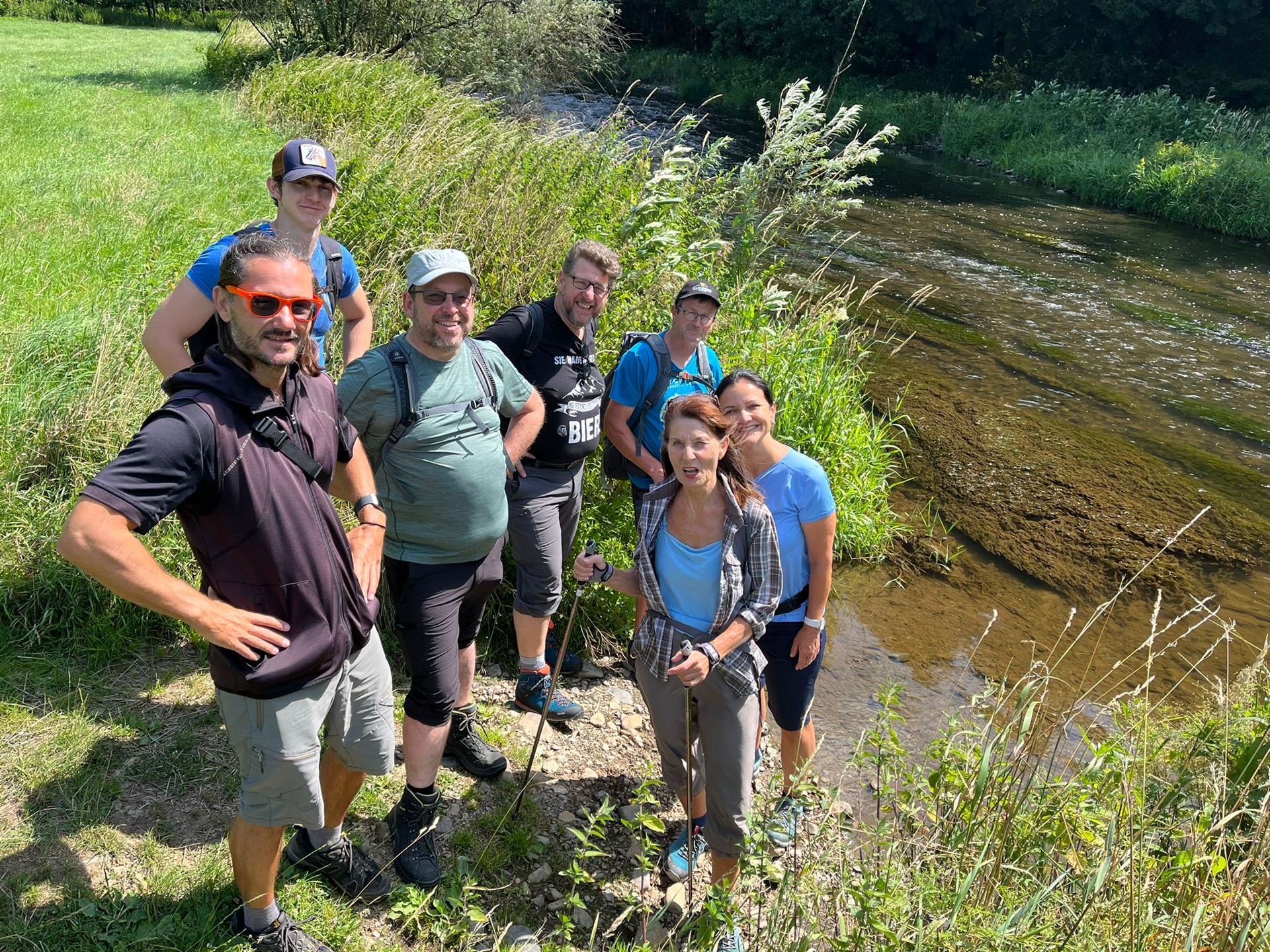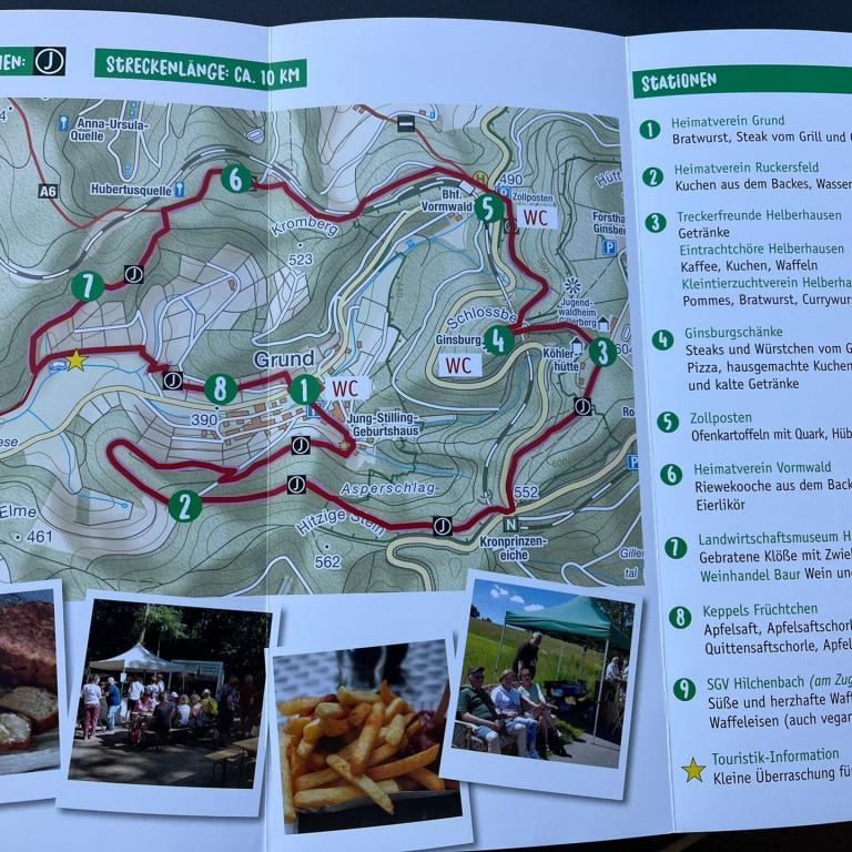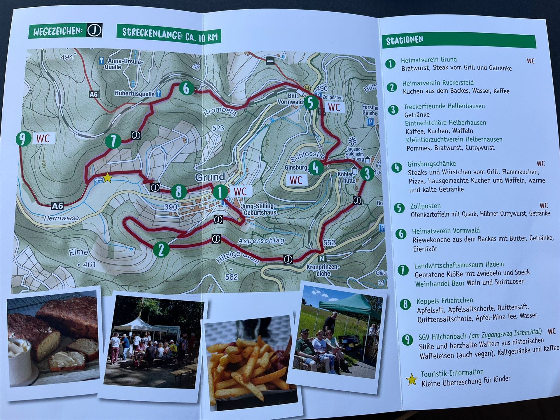 Bei bestem Wetter startete unsere heutige Wanderung in Grund. Auf dem Jung-Stilling-Rundweg gab es an 9 Stationen kulinarische Köstlichkeiten. 12 Wanderer haben die 10km Tour heute genossen. Es war herrlich!