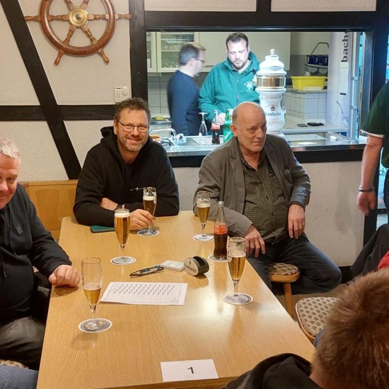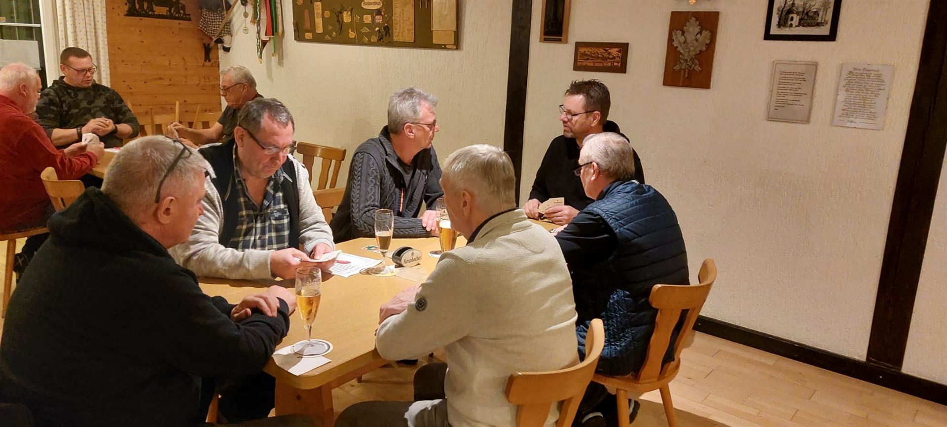 24 Skatbrüder konnte Erwin Adam am Freitag beim diesjährigen Preisskat im SGV Heim begrüßen. In den beiden ersten gespielten Runden wurden die jeweiligen Tischpartner per Loos bestimmt. In der dritten Runde spielten jeweils die Teilnehmer mit der bis dahin höchsten erreichten Punktzahl gegeneinander. Den dritten Platz belegte Frank Guder mit insgesamt 2089 Punkten. Den zweiten Platz errang Roger Siegemund mit 2406 Punkten und Sieger des Skatturniers wurde Andreas Rompf mit 2559 Punkten. Ein Dankeschön für die Unterstützung gilt dem Hüttenteam von Christian und Torben sowie Reinhard Klein, Frank Guder und Mayk Bohn.