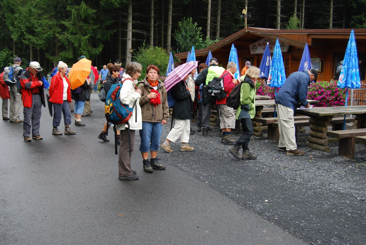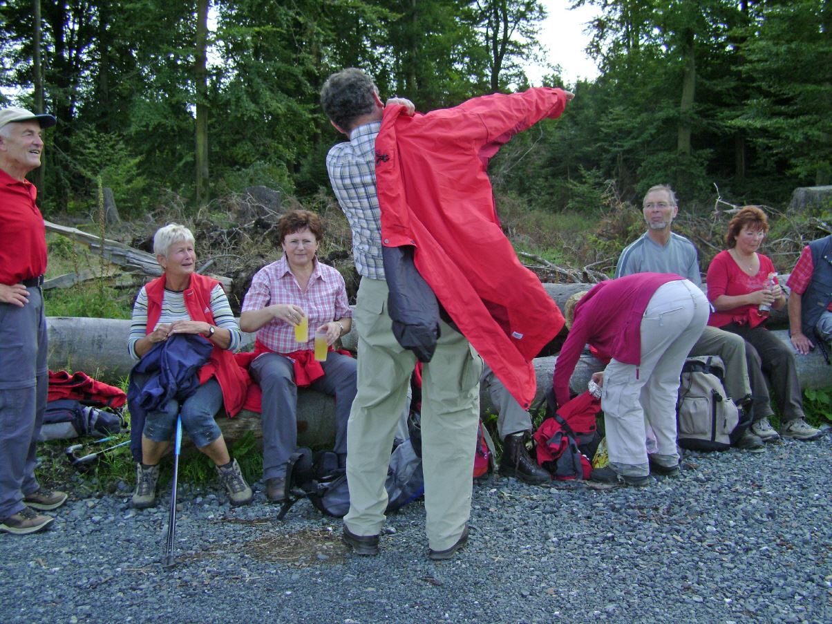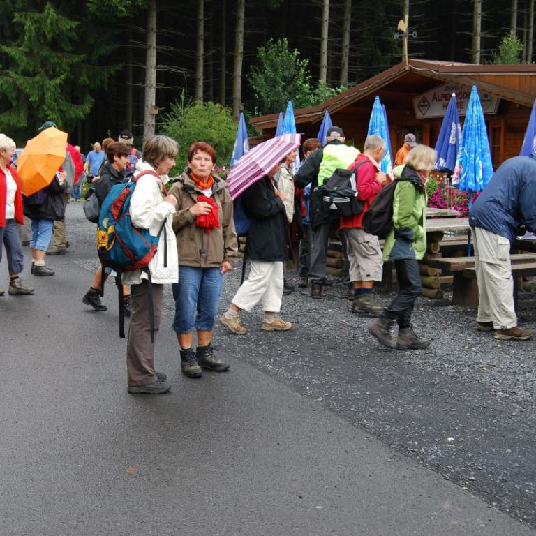 Bei strömendem Regen, aber in bester Laune wanderten am Sonntag 22 Wanderfreunde unter der Führung von Helmut Kölsch über einen Rundkurs vom Dreifelder Weiher zur Alpenroder Hütte. In der Jausenstation gab es Erbsensuppe, Kuchen, Bier und sonstige Köstlichkeiten. Am frühen Nachmittag ging es bei trockener Witterung zurück zum Dreifelder Weiher - eine rundum gelungene Wanderung, alle waren zufrieden (und müde).