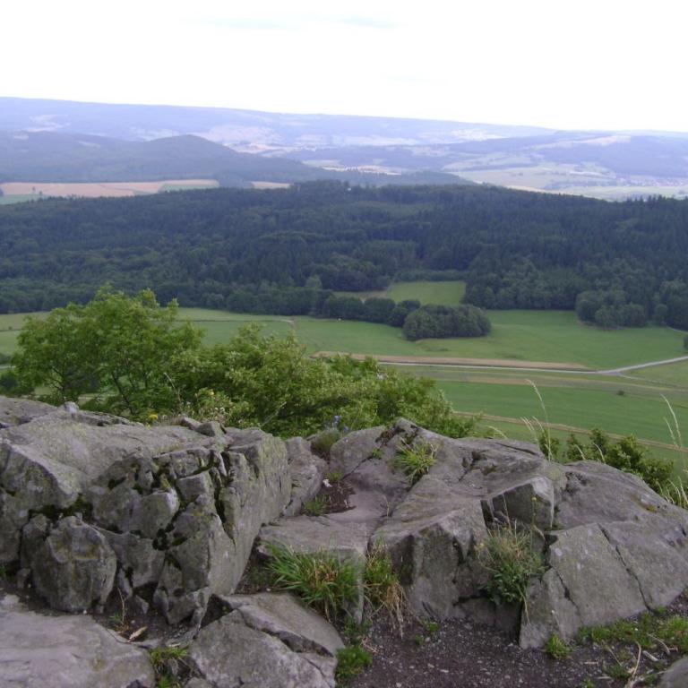 Auf den Weg durch die Hessiche Rhön wurde der Berg Milsenburg bestiegen mit seiner alten keltischen Wallbefestigung, von wo man einen weiten unverstellten Blick in alle Himmelsrichtungen genießen kann.