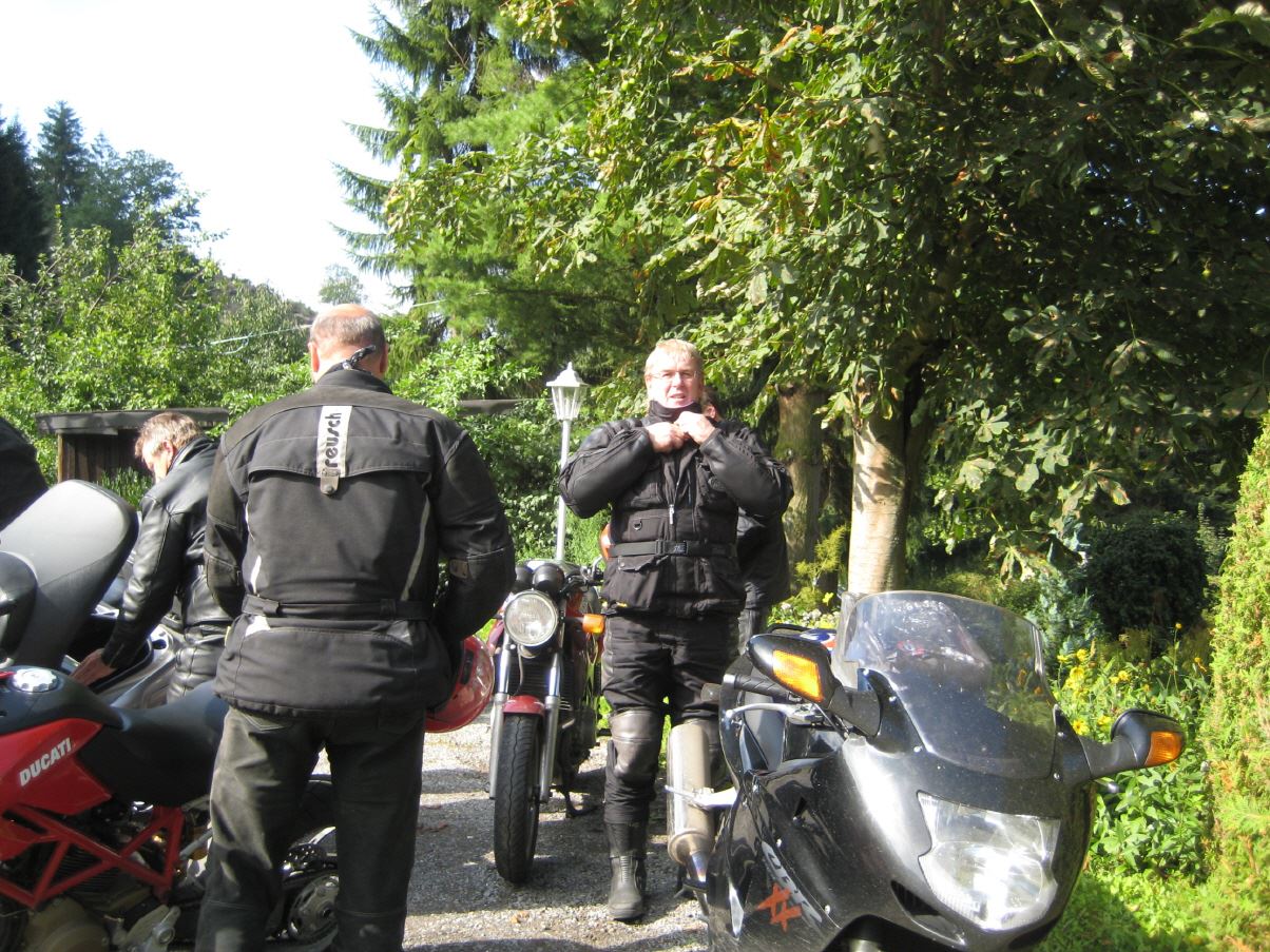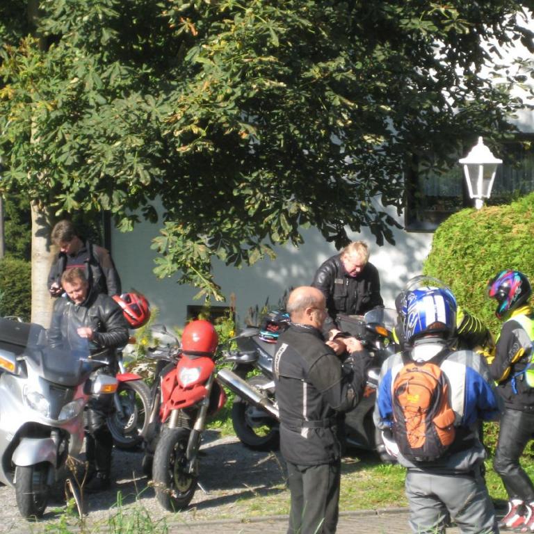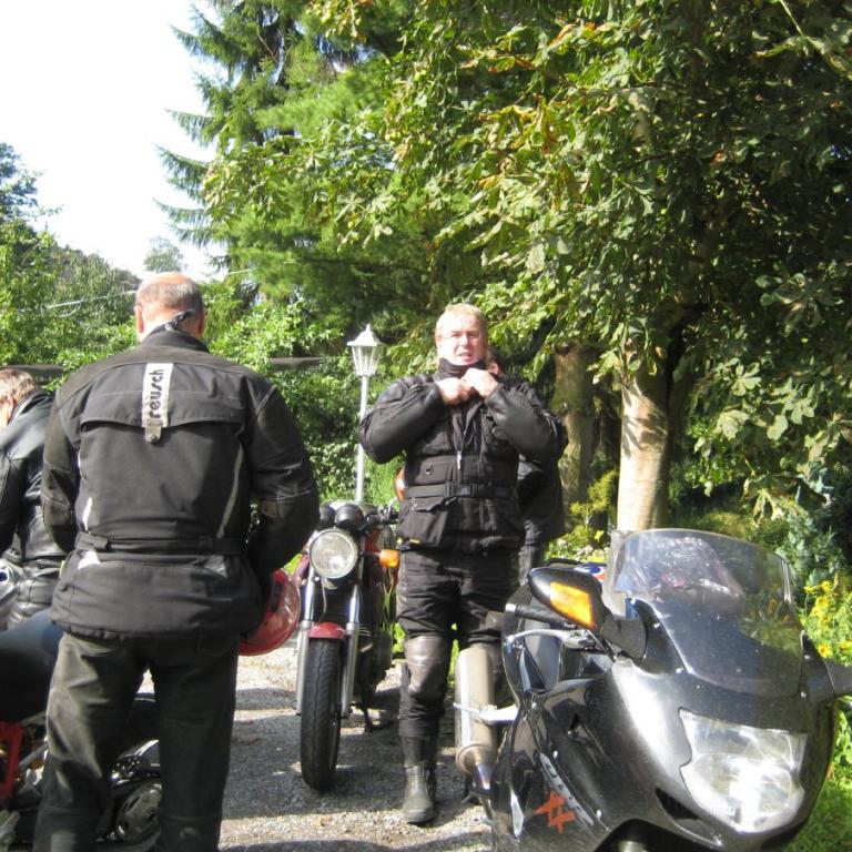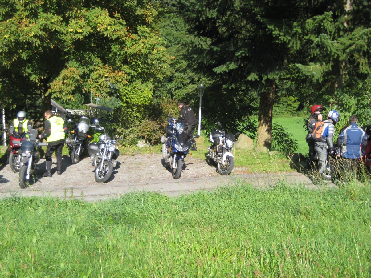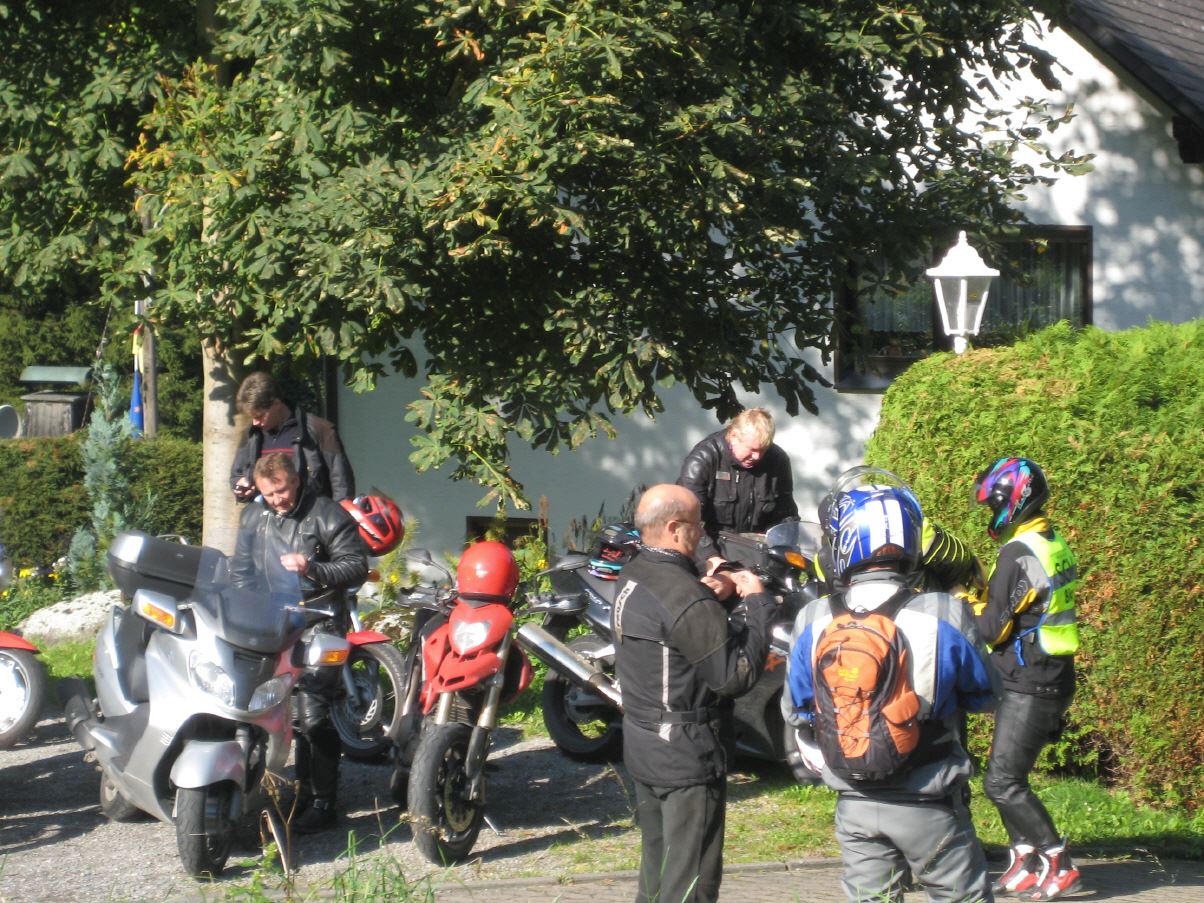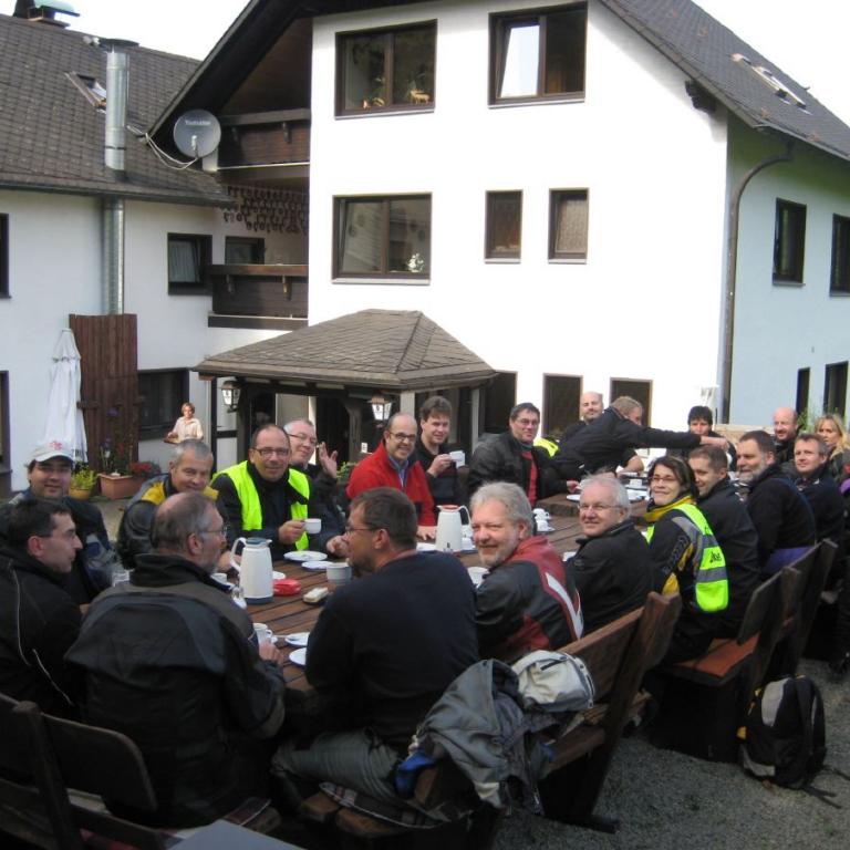 Glücklicherweise verzogen sich dann die Regenwolken und bei blauem Himmel und Sonnenschein startete die 2. Etappe über Rönkhausen/Allendorf... . Nachmittags dann ein weiterer Halt bei dem idyllisch gelegenen Jagdhof Nöcker. in Linneperhütte. Dort wartete auf die Biker schon eine große Kaffeetafel mit hausgemachtem Kuchen.