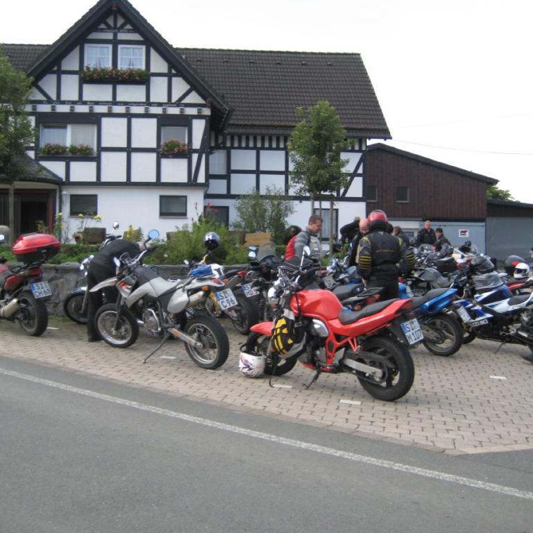 Zunächst ging es über Deuz, Afholderbach und Grund Richtung Hilchenbach. Weiter dann über Kirchhundem und viele kleinere Ortschaften und landschaftlich schöne Strecken bis zu einem kleinen "Örtchen" namens Faulebutter zum Landgasthof Rademacher. Dort wurde Mittagsrast gemacht mit leckeren Speisen von der eigens erstellten Speisekarte.