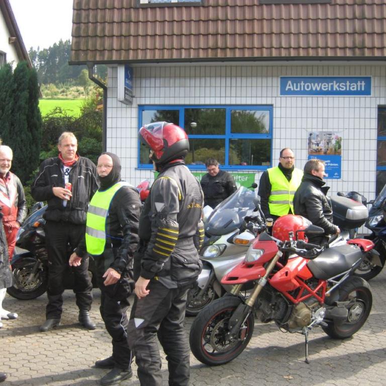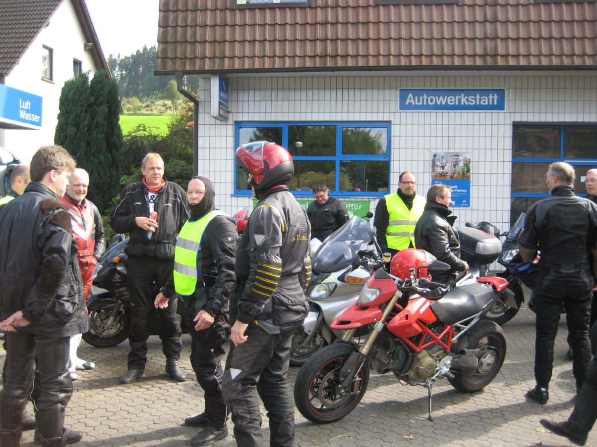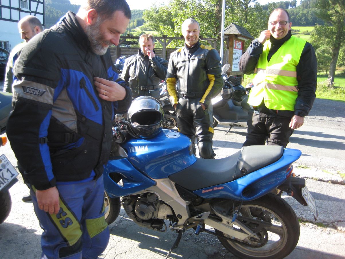 Die mit sehr viel persönlichem Einsatz von Alfred Kneppe und Rüdiger Hoffmann geplante ca. 270 km weite Tour startete bei leichtem Nieselregen und mäßigen Temperaturen mit 22 Motorrädern um 9.30 Uhr beim SGV-Wanderheim.