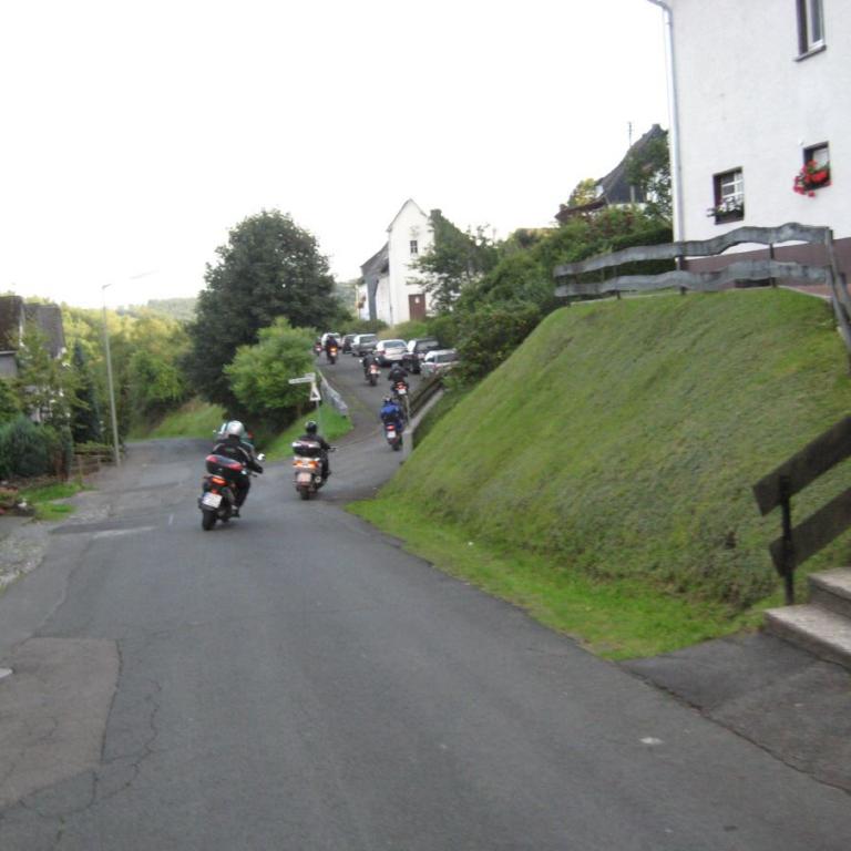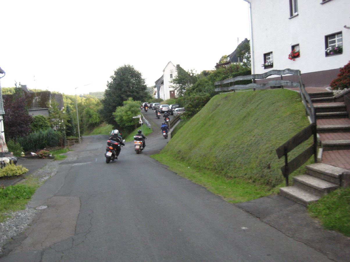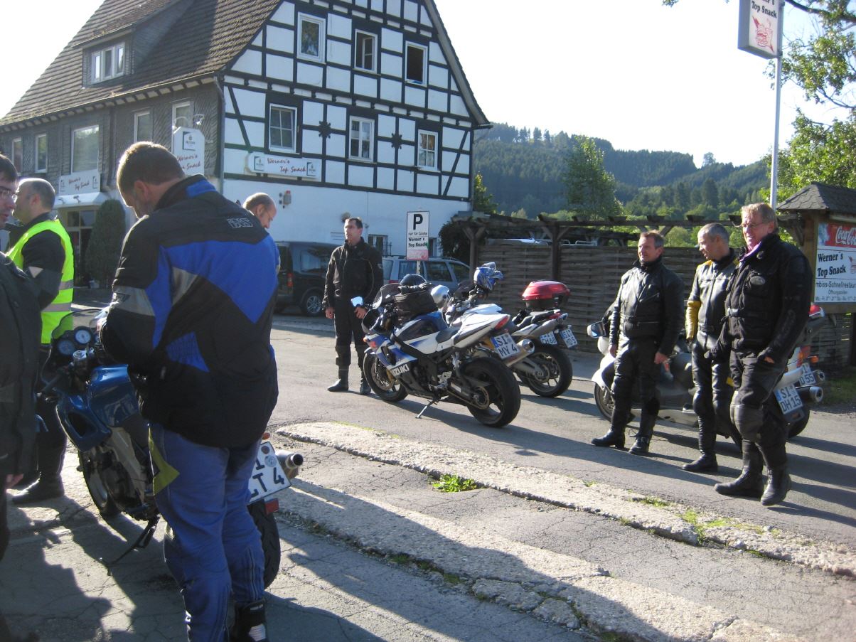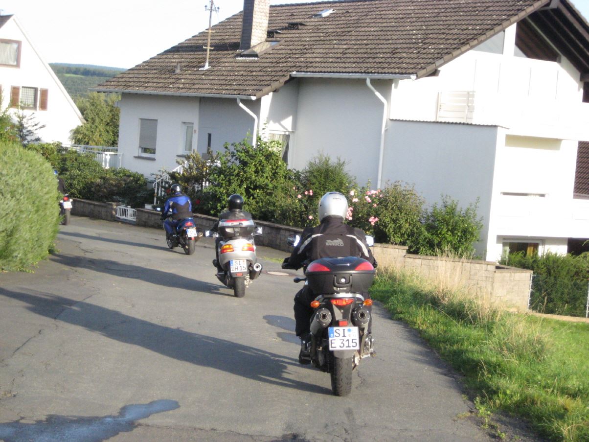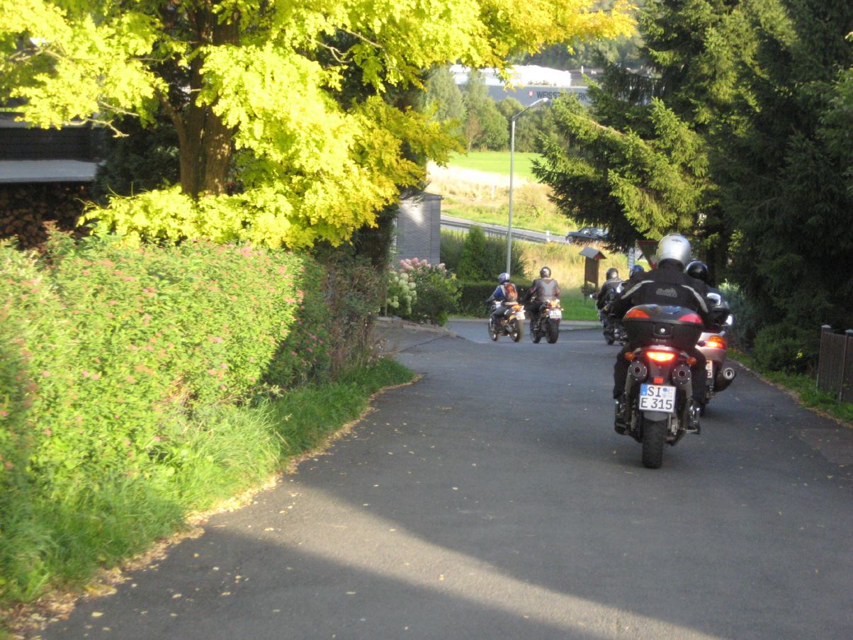 Die Heimfahrt über herrlich gelegene Höhenstraßen vorbei an der Veltins-Brauerei und Ortschaften wie Aue. Wingeshausen/ Erndtebrück zurück ins Siegerland verlief bis auf eine kleine Panne reibungslos, so dass die Biker nach einer Ehrenrunde durch Flammersbach gegen 18.00 Uhr zuhause waren.
