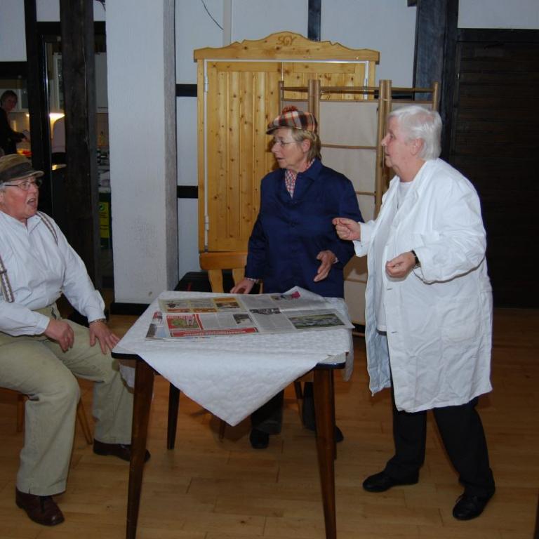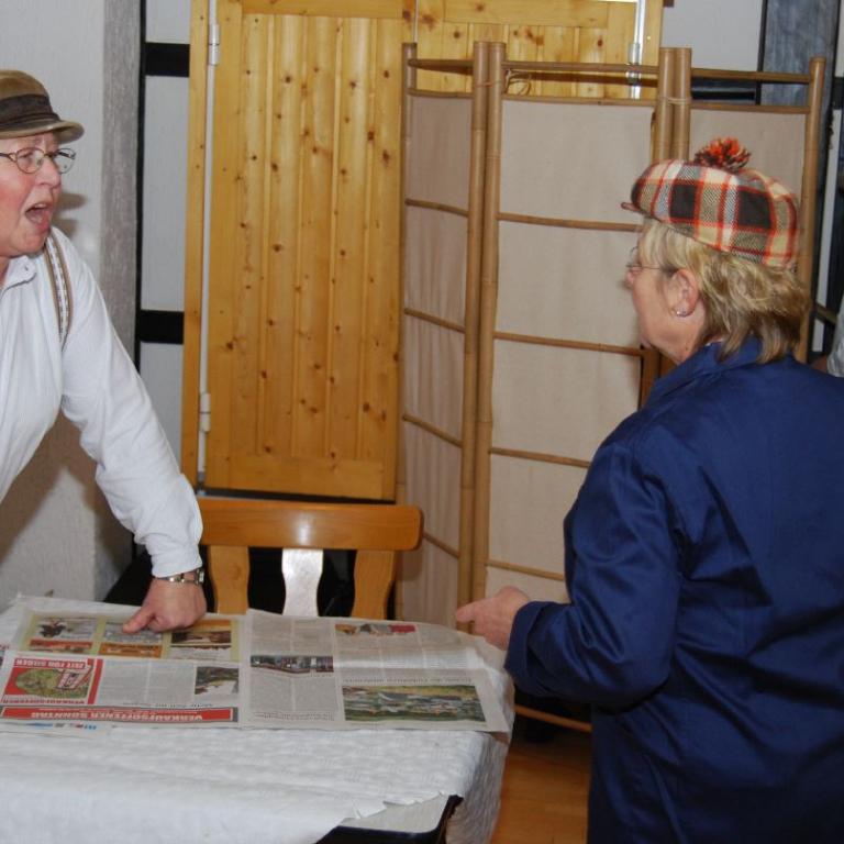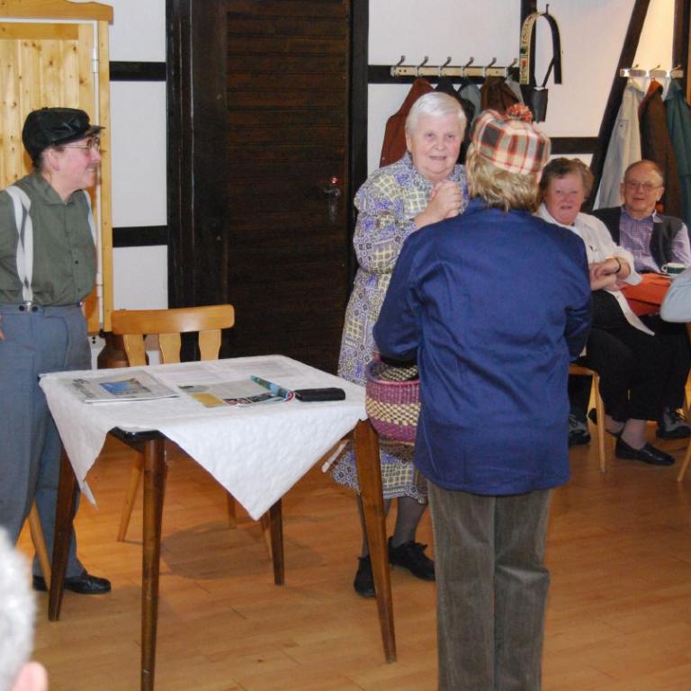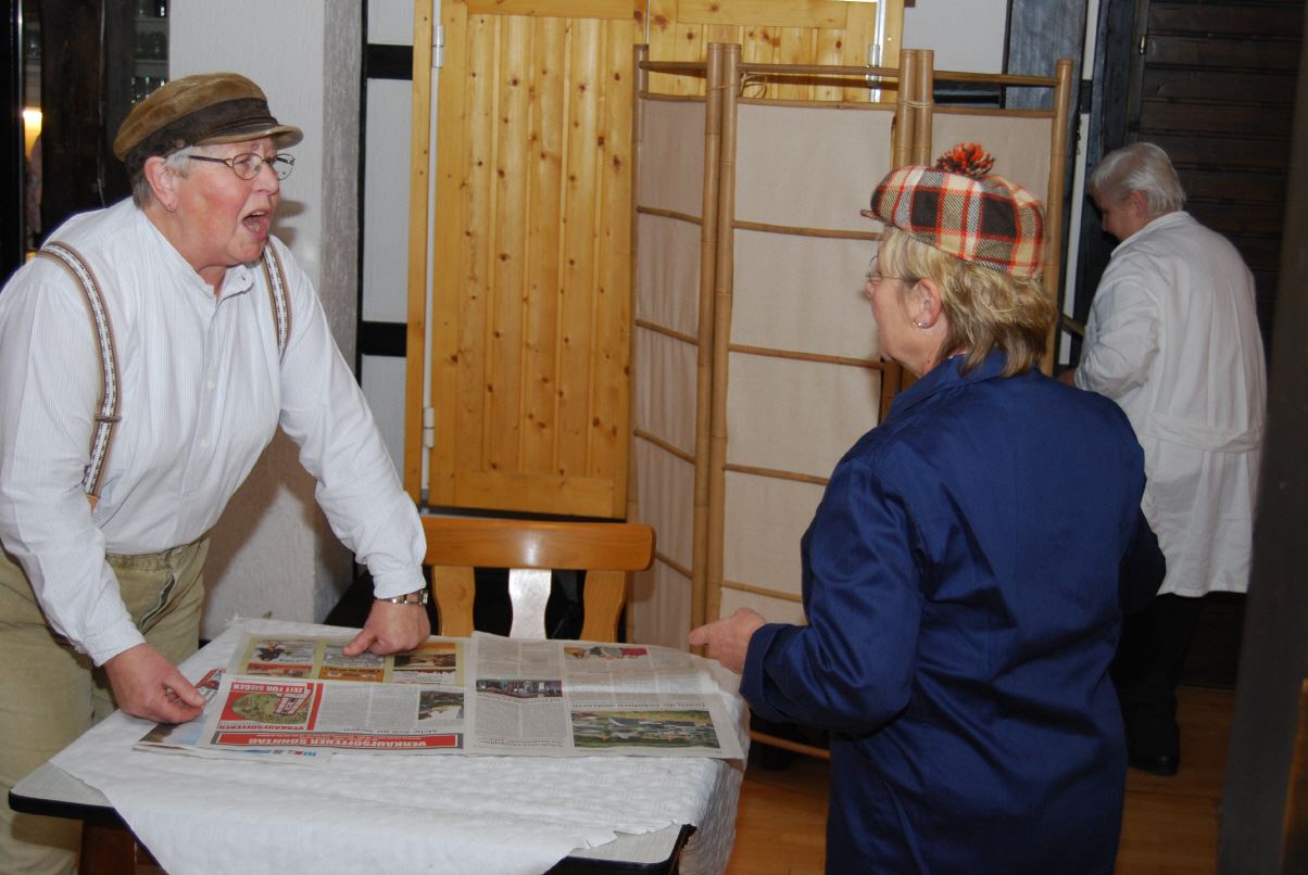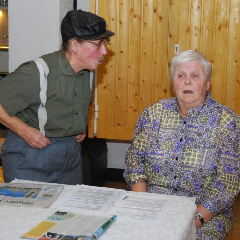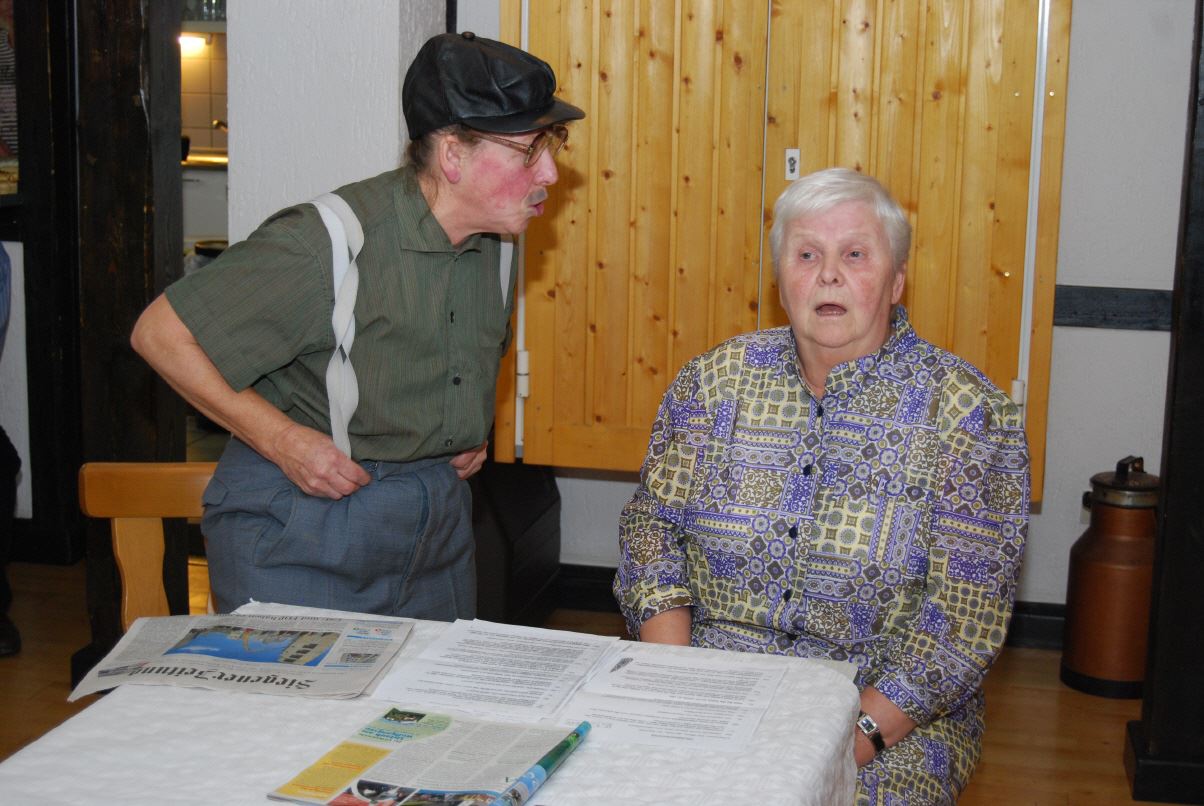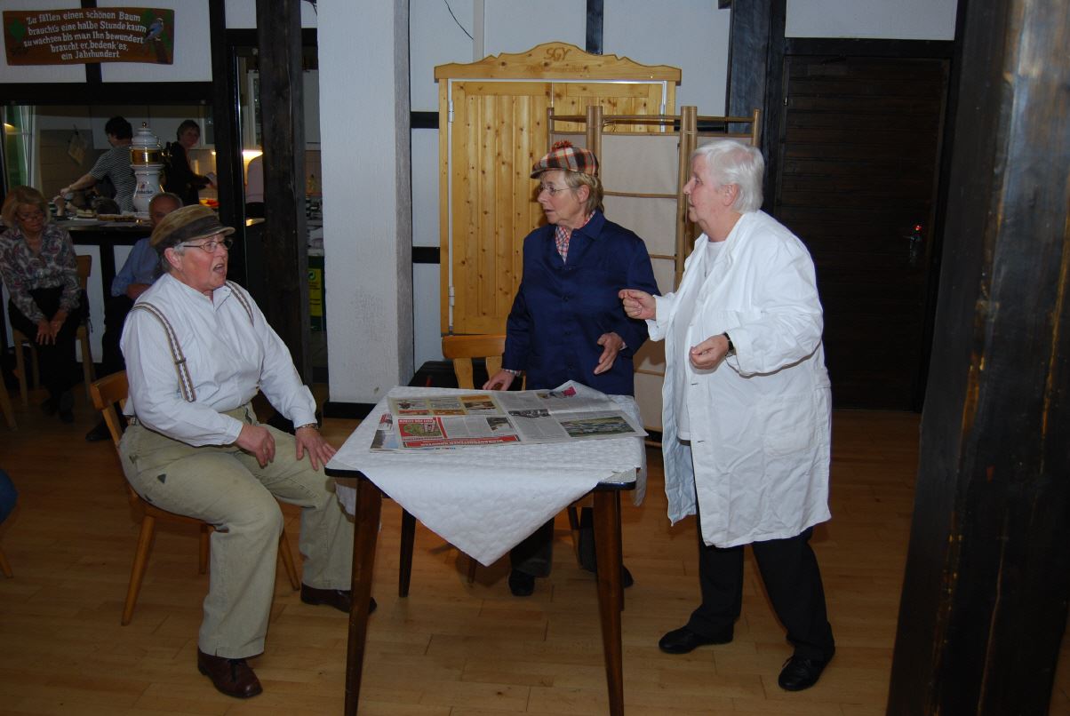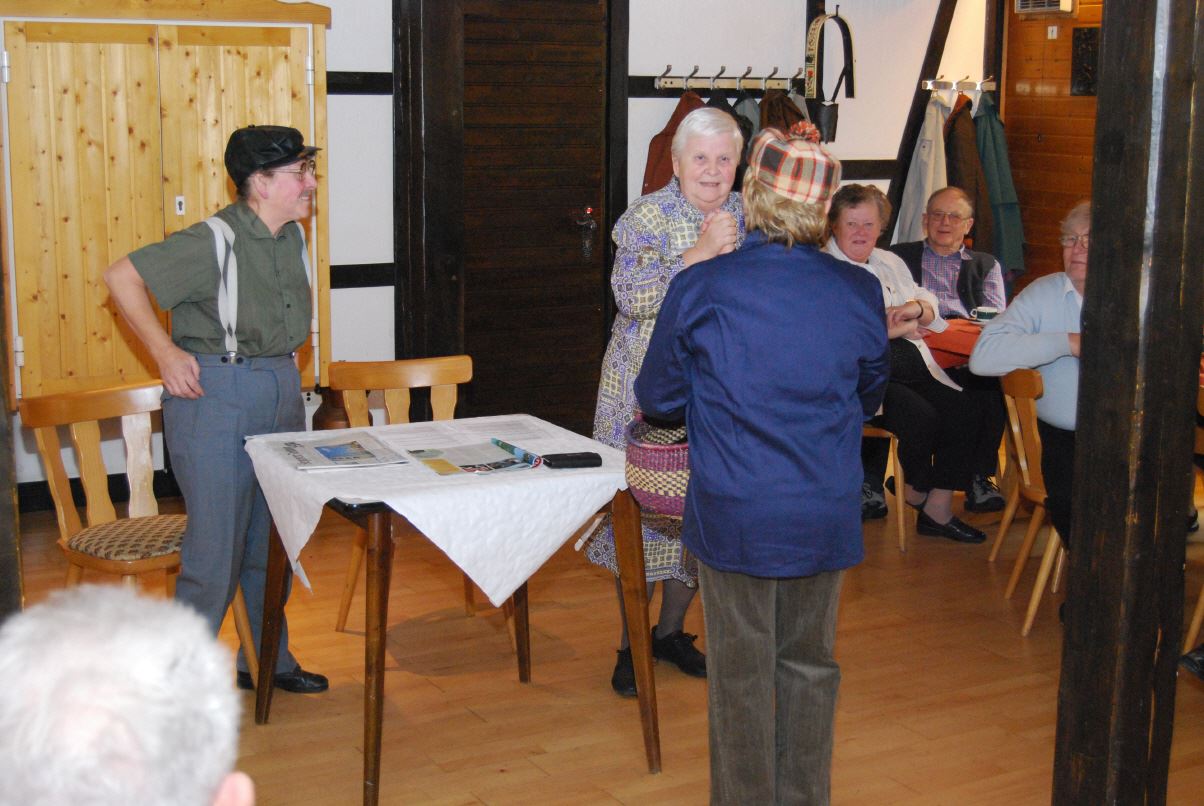 Die Theatergruppe der SGV Abteilung Wilgersdorf erfreute die Gäste mit lustigen Sketchen. Zwischendurch stimmten alle Gäste volkstümliche Weisen an. Hannah Honig und Karl-Heinz Kölsch begleiteten die Sänger auf ihren Schifferklavieren.