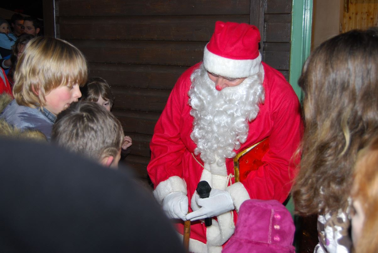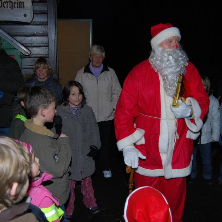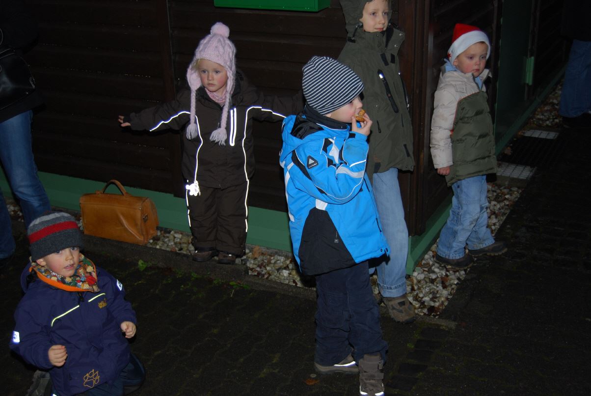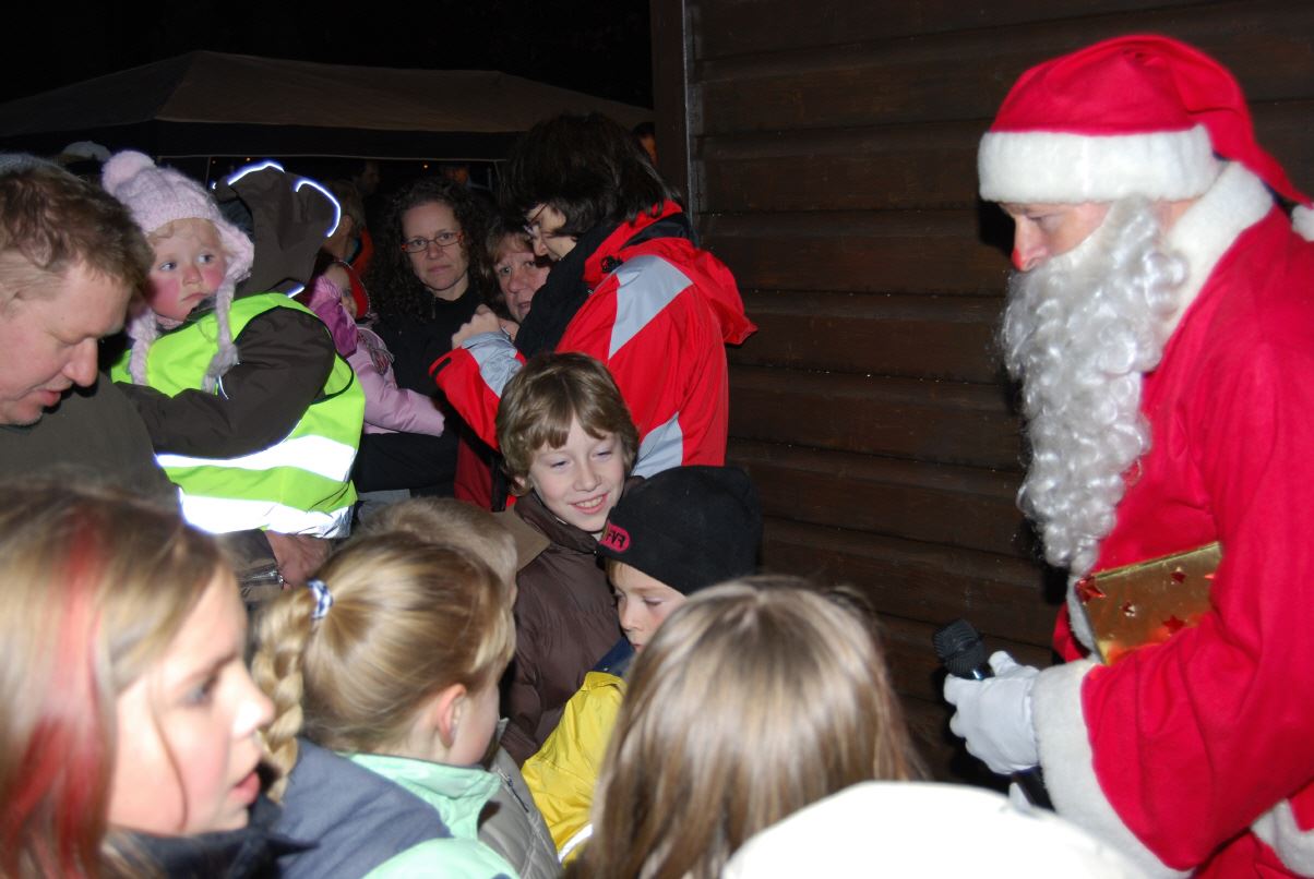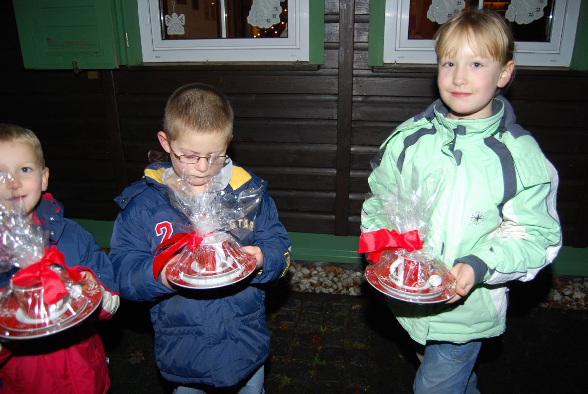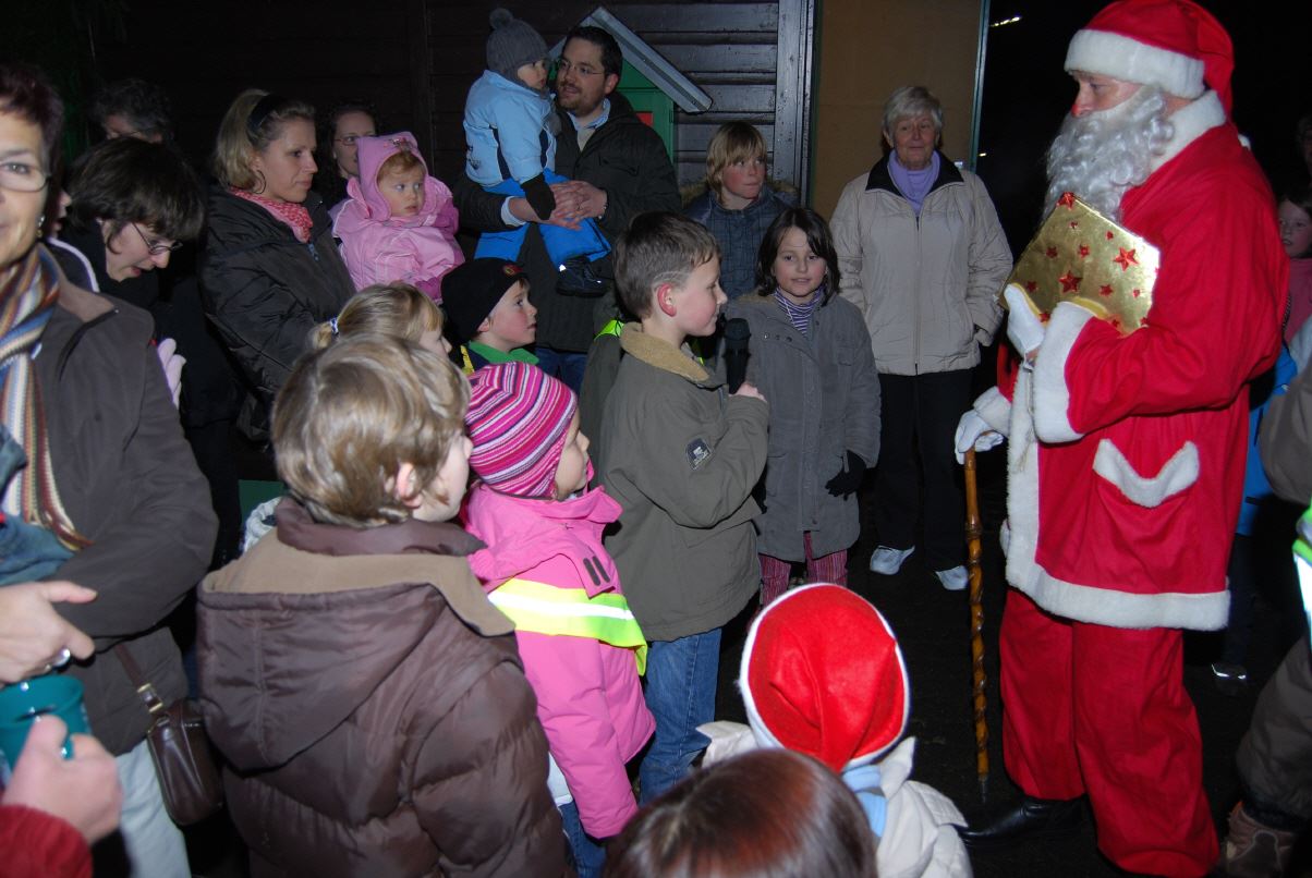 weihnachtlicher Blasmusik erfreute der Posaunenchor groß und klein. Der Nikolaus bescherte viele, viele Kinder und verbreitete gute Laune. Glückliche Kinderaugen waren der Dank für den guten Mann.