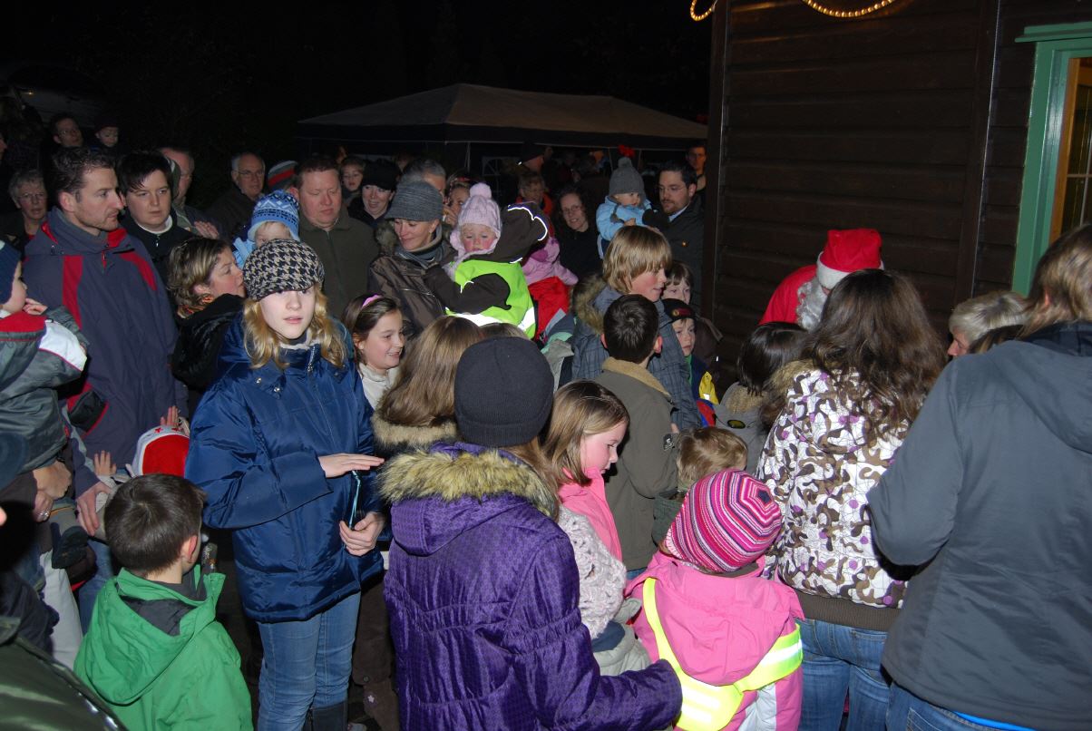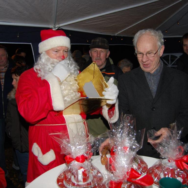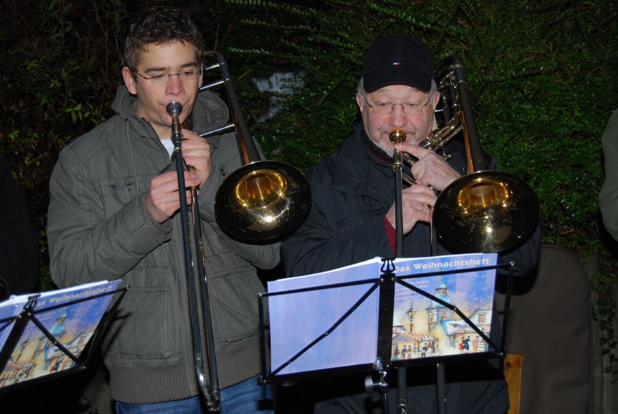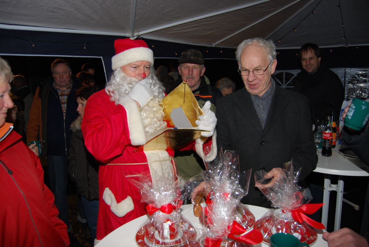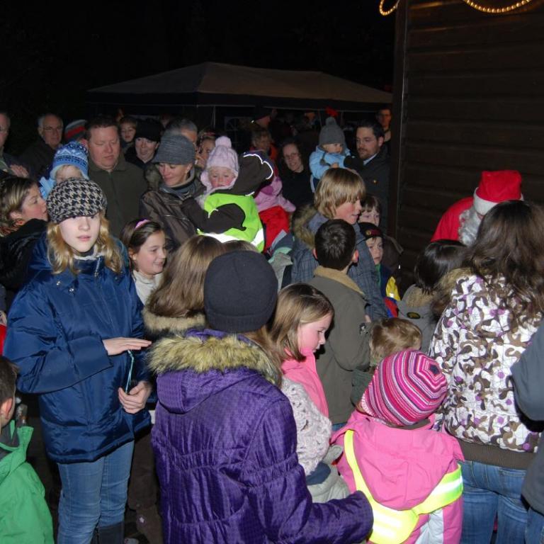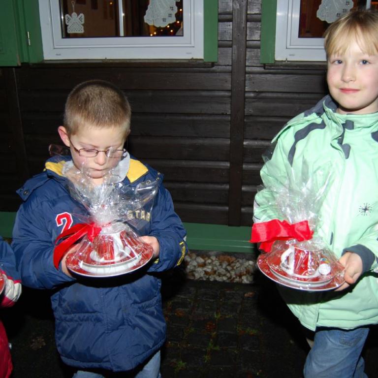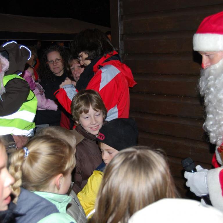 weihnachtlicher Blasmusik erfreute der Posaunenchor groß und klein. Der Nikolaus bescherte viele, viele Kinder und verbreitete gute Laune. Glückliche Kinderaugen waren der Dank für den guten Mann.