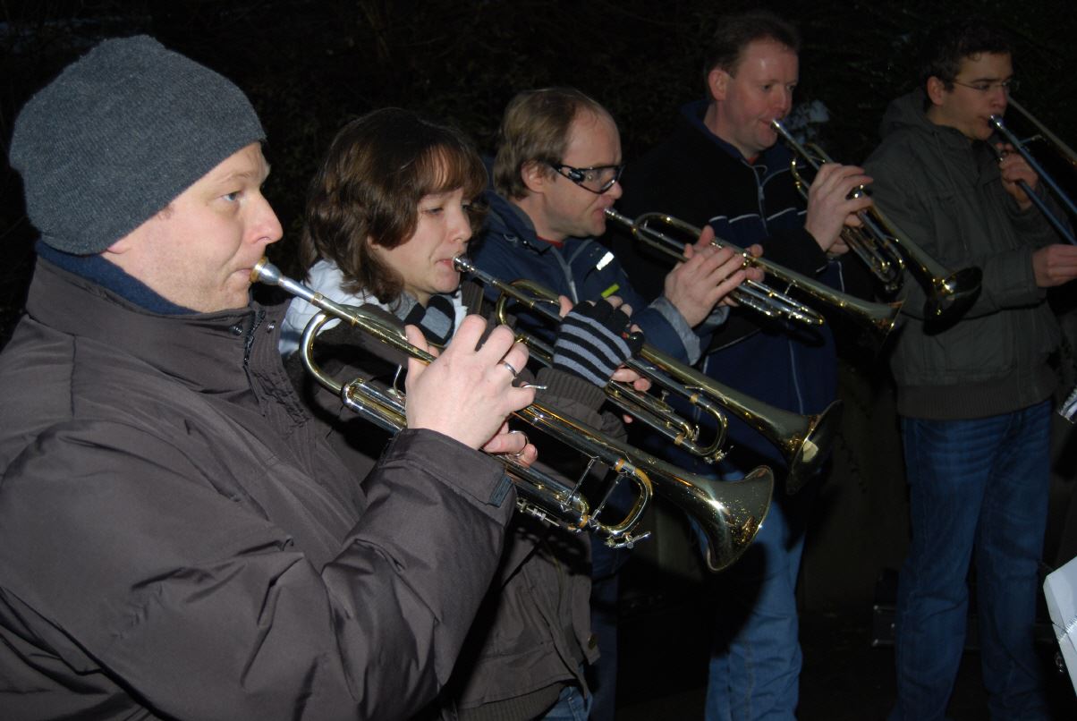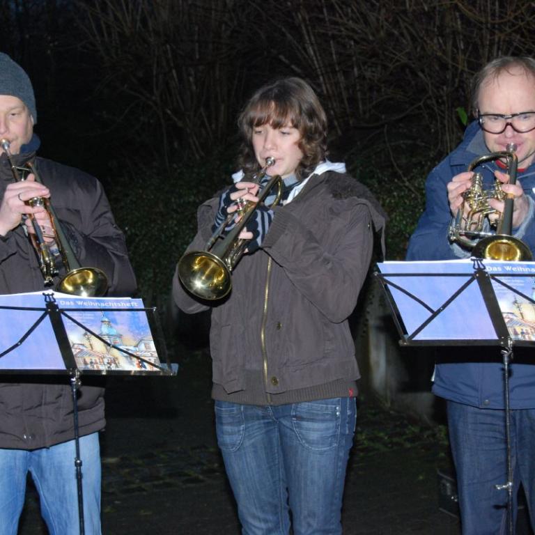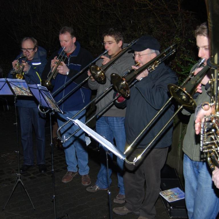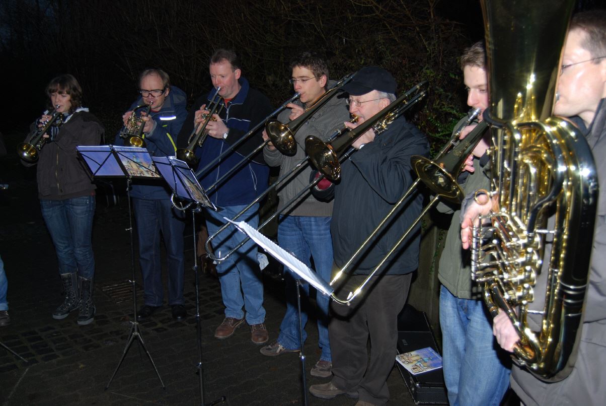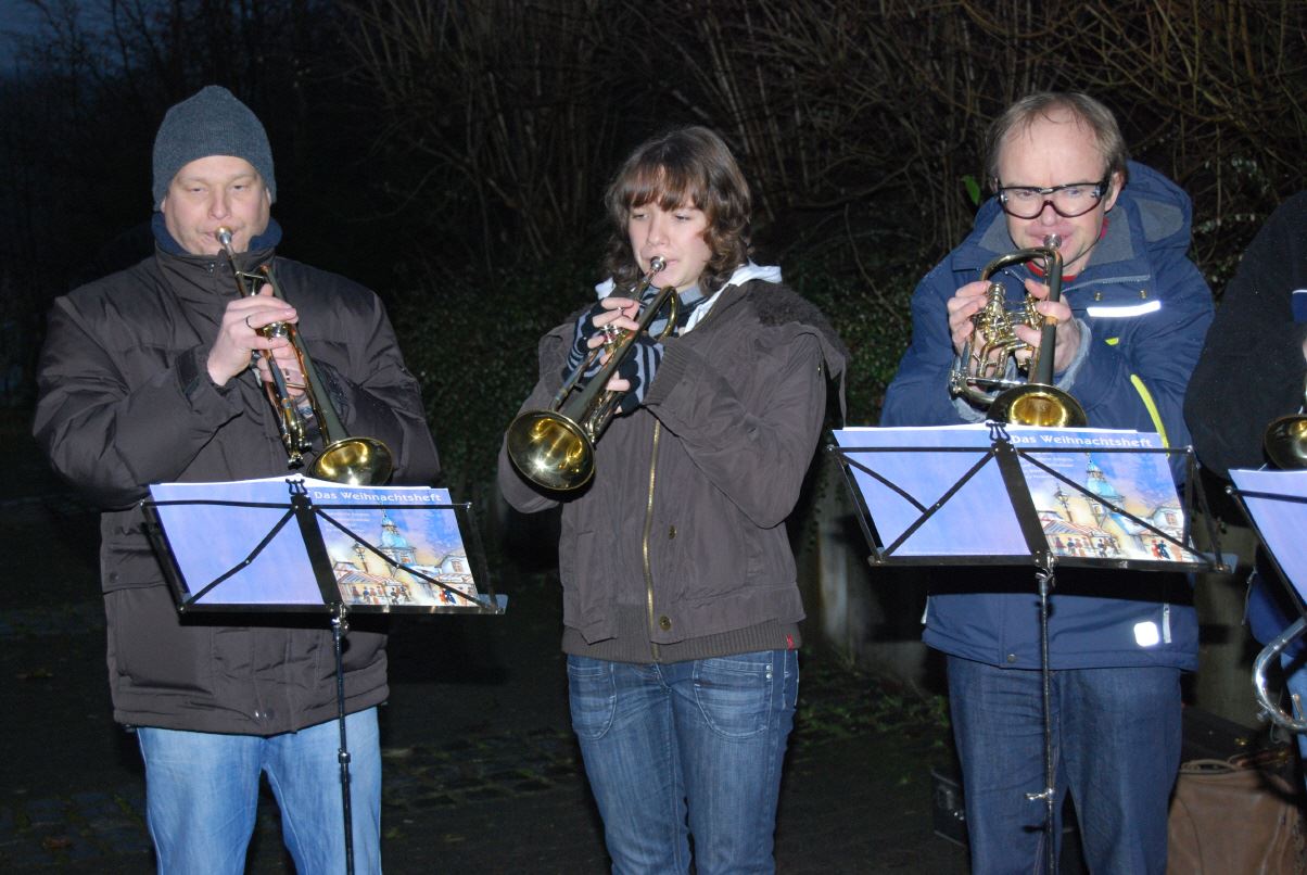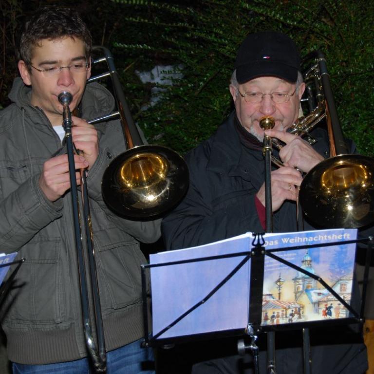 weihnachtlicher Blasmusik erfreute der Posaunenchor groß und klein. Der Nikolaus bescherte viele, viele Kinder und verbreitete gute Laune. Glückliche Kinderaugen waren der Dank für den guten Mann.