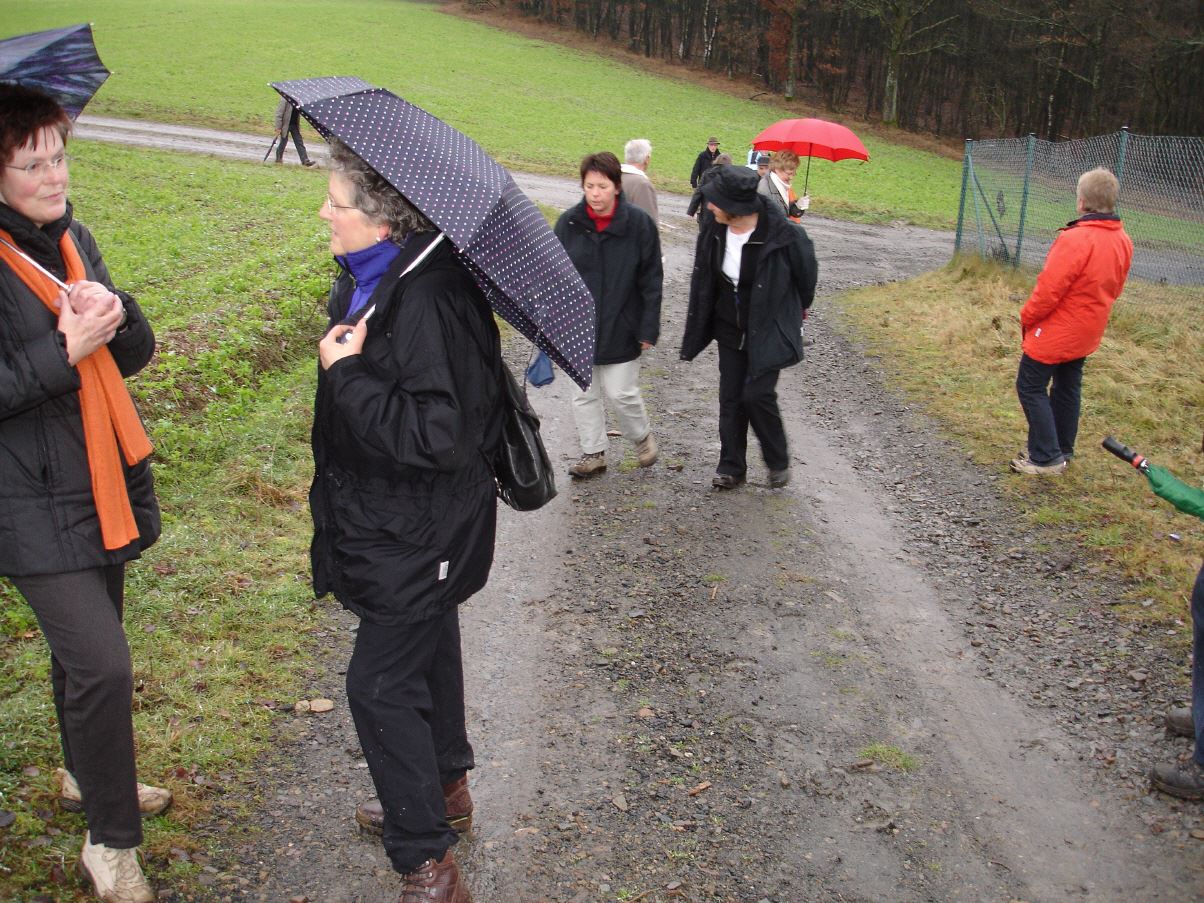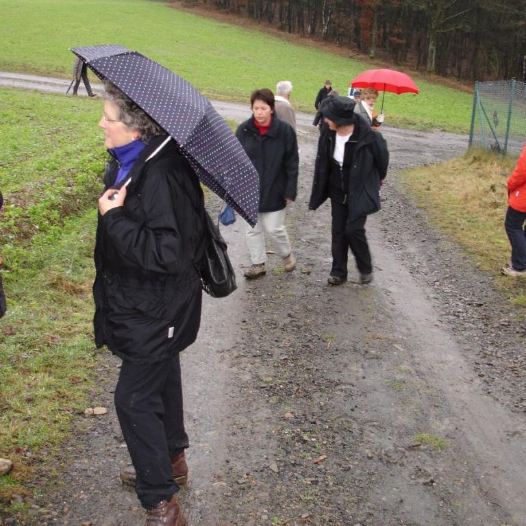 Am 05.10.08 hat bei strömendem Regen eine kleine Gruppe unentwegter Wanderer die14,6 km lange Strecke erwandert. Das Herbstlaub und die klare Luft entschädigten für die schlechte Witterung. Alle waren sich einig, dass man ohne einen festen Wandertermin im Hause gesessen und nicht frische Luft und Bewegung genossen hätte. Auf halbem Wege sind wir in die gemütliche Kindelsberggaststätte eingekehrt und haben zu Mittag gegessen. Nach einem warmen Aufenthalt ging es dann wieder durch den Regen bis zum Endpunkt der Wanderung.